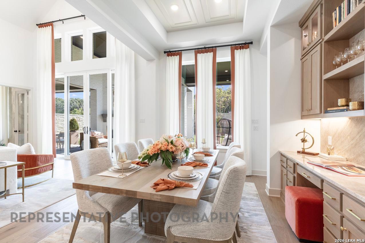 This elegant open floorplan features vaulted family room ceilings. This home is located on an oversized lot. The Verona plan offers expanded bedrooms, all with their own bathroom plus a powder bath, single dining space, an entertainment room and study all on 1 level. Bedroom 3 includes a sitting area. The kitchen includes an upgraded Kitchen package with a double oven and an extended hutch. The extended outdoor patio is great for entertaining.