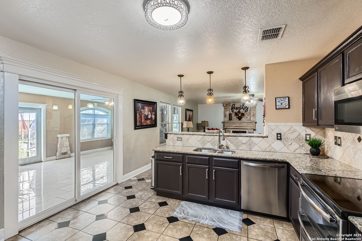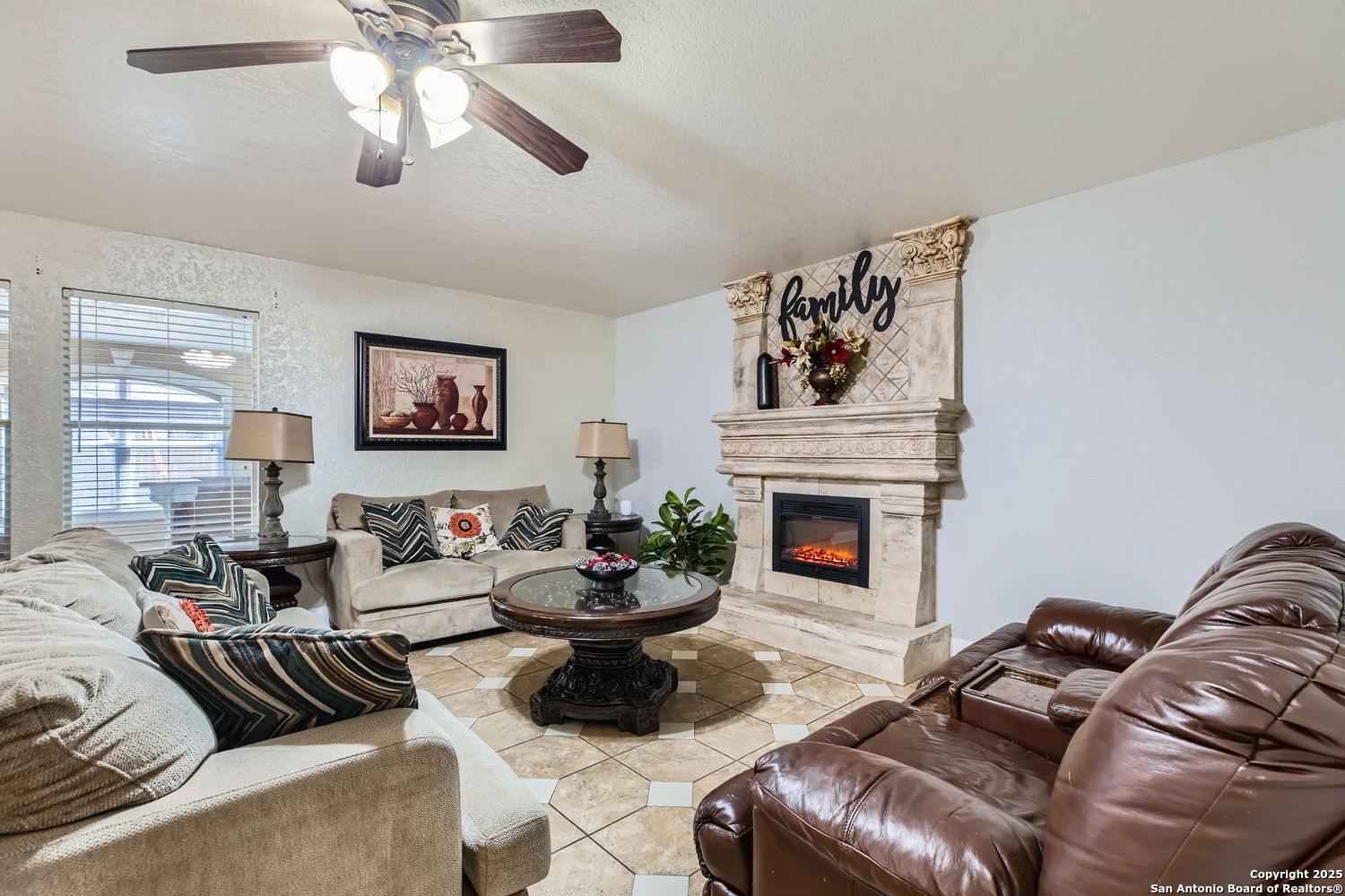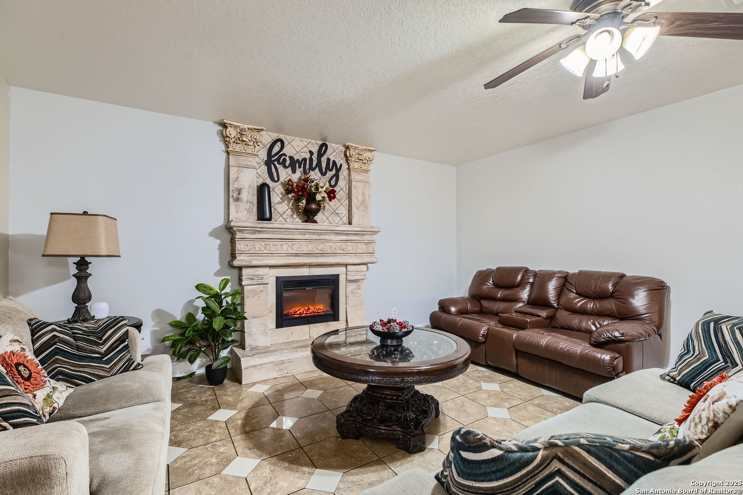 OPEN HOUSE MARCH 23TH BETWEEN 12 - 3.30 PM Welcome to this stunning two-story home in the desirable Chestnut Springs neighborhood! This home features 4 spacious bedrooms, 2.5 baths, and a 480 sq. ft. enclosed patio addition, providing extra living and entertaining space. The first floor boasts porcelain tile flooring, while solid wood floors run throughout the second level. The stylish kitchen offers granite countertops, dark cabinetry, and stainless steel appliances, seamlessly connecting to the dining and living areas. The cozy living room features a cool stone electric fireplace, and the primary suite showcases crown molding and an accent wall. The enclosed patio lounge has been transformed into a wine & tequila bar with granite countertops and custom cabinetry, perfect for entertaining. The beautifully landscaped front yard and large backyard offer additional outdoor enjoyment. Additional highlights include a home office with custom cabinetry, a granite tub/shower combo in the primary bath, and a porcelain-tiled secondary bath. Prime location! Minutes from SeaWorld, Lackland AFB, Wheeler Park, shopping, and dining, with easy access to I-410 and TX-151. Schedule your private showing today!