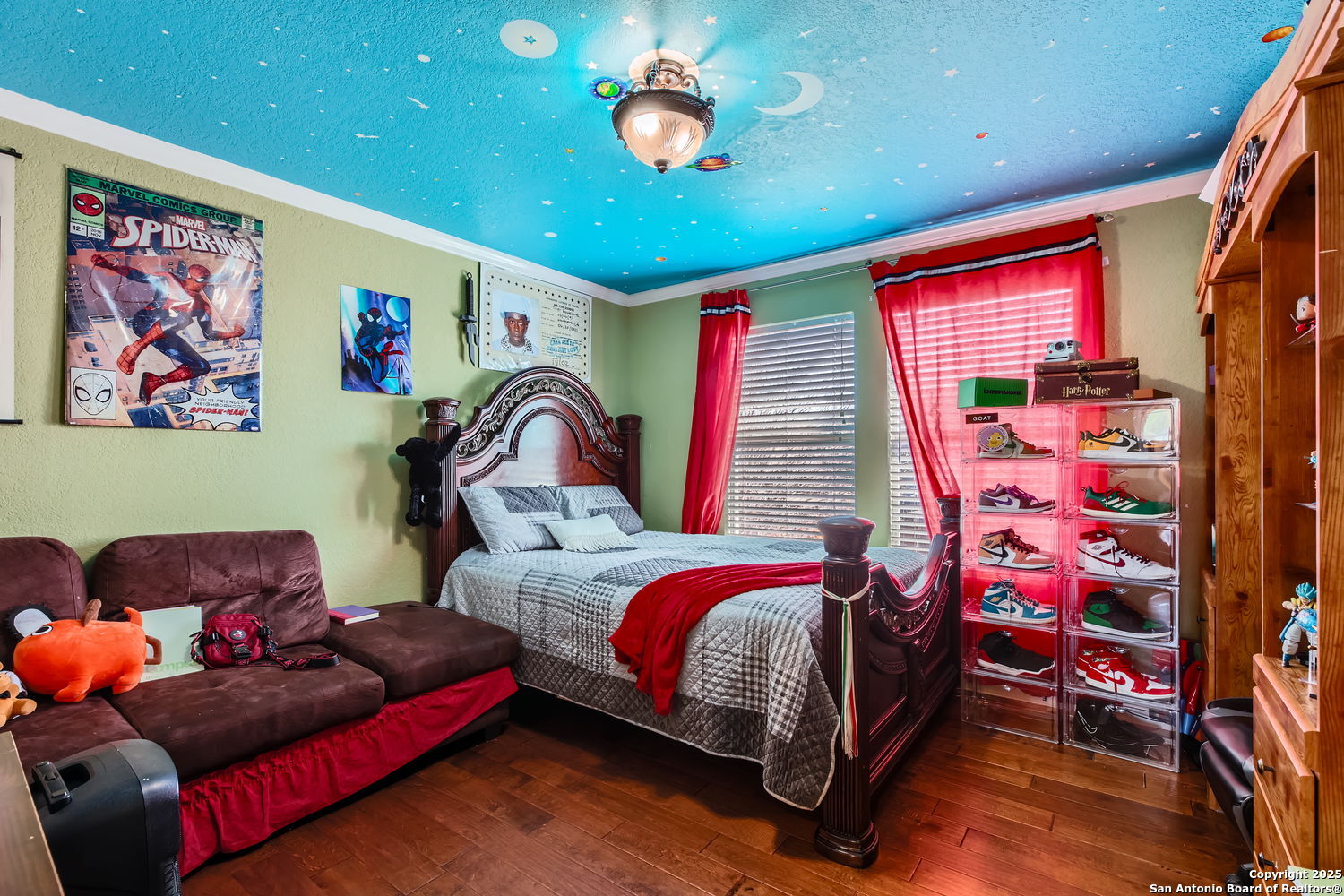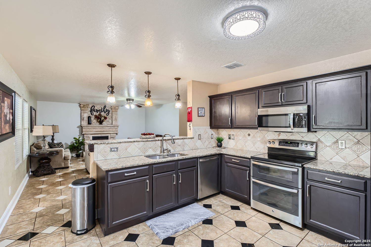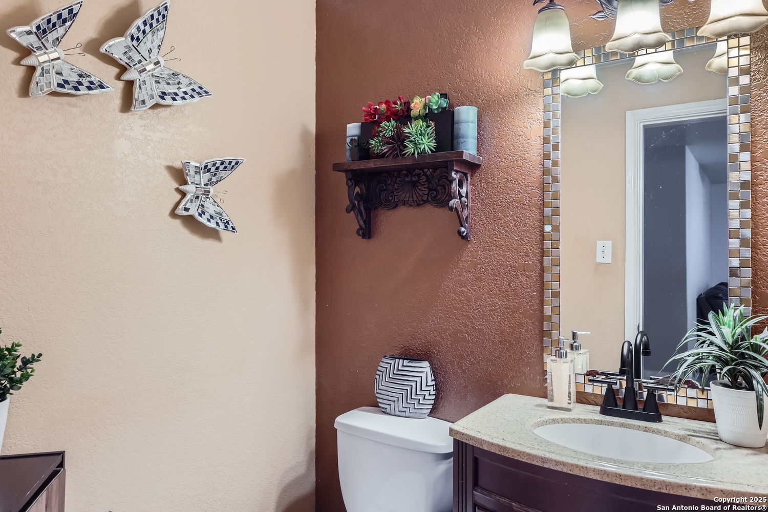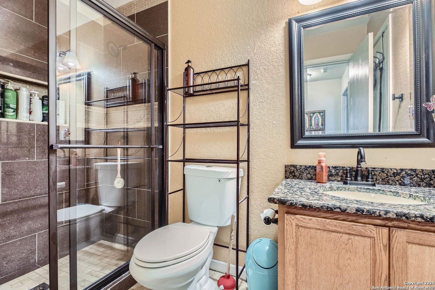 OPEN HOUSE MARCH 23TH BETWEEN 12 - 3.30 PM Welcome to this stunning two-story home in the desirable Chestnut Springs neighborhood! This home features 4 spacious bedrooms, 2.5 baths, and a 480 sq. ft. enclosed patio addition, providing extra living and entertaining space. The first floor boasts porcelain tile flooring, while solid wood floors run throughout the second level. The stylish kitchen offers granite countertops, dark cabinetry, and stainless steel appliances, seamlessly connecting to the dining and living areas. The cozy living room features a cool stone electric fireplace, and the primary suite showcases crown molding and an accent wall. The enclosed patio lounge has been transformed into a wine & tequila bar with granite countertops and custom cabinetry, perfect for entertaining. The beautifully landscaped front yard and large backyard offer additional outdoor enjoyment. Additional highlights include a home office with custom cabinetry, a granite tub/shower combo in the primary bath, and a porcelain-tiled secondary bath. Prime location! Minutes from SeaWorld, Lackland AFB, Wheeler Park, shopping, and dining, with easy access to I-410 and TX-151. Schedule your private showing today!