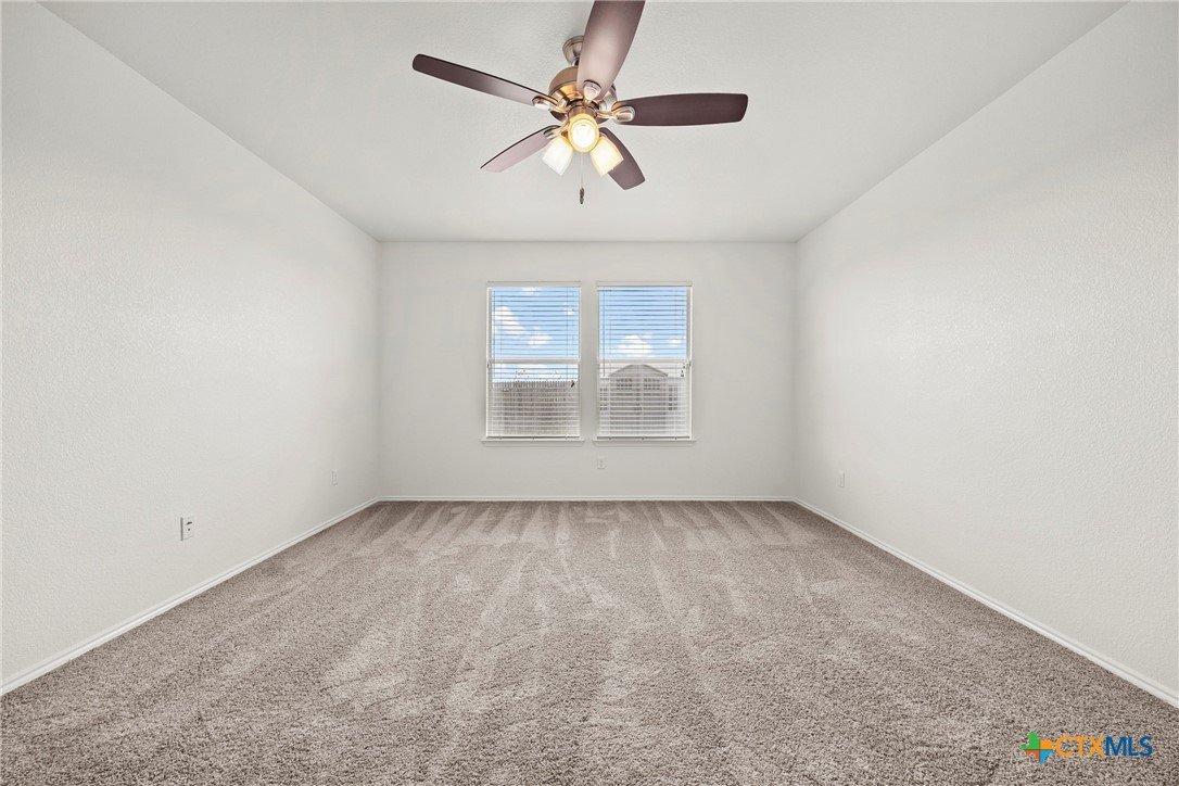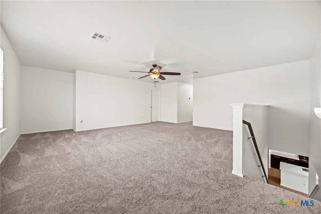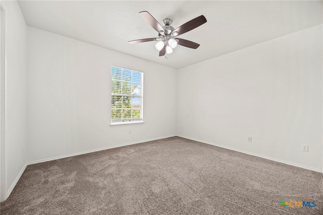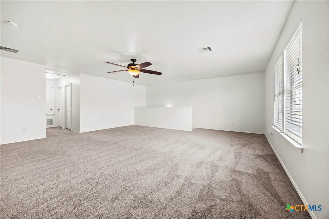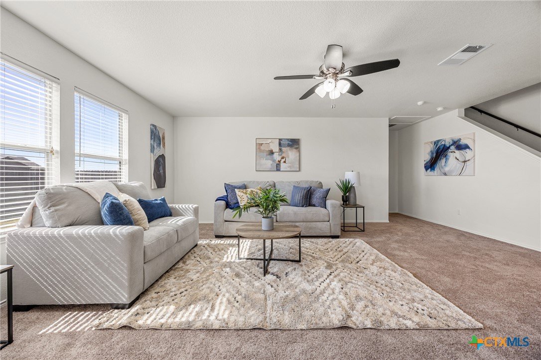 This spacious 4-bedroom, 2.5-bath home is equipped with a generator plug, offering added security and convenience during power outages. With 2,862 square feet of comfortable living space and a NEW ROOF, this home welcomes you with an open-concept design and a versatile flex room—perfect for a home office, playroom, or additional living area. The large living space flows seamlessly into the eat-in kitchen, featuring Quartz countertops, a generous island, a walk-in pantry, and plenty of cabinet storage—ideal for everyday living and entertaining. The spacious laundry room, complete with upper cabinets, is conveniently located downstairs along with a guest-friendly half bath. All four bedrooms offer walk-in closets, and there’s also a spacious loft that can serve as a second living area, game room, or study space. The primary suite located on the first floor is a true retreat, featuring a massive walk-in closet and an ensuite bath with dual vanities, a separate shower, and a soaking tub—perfect for unwinding after a long day. This home has been FRESHLY PAINTED, features brand-NEW carpet throughout, and boasts a new roof. Additional highlights include ceiling fans in every room and a private backyard, perfect for entertaining or watching the kids play. Move-in ready and waiting for its next owner, this home is conveniently located in Killeen—just minutes from schools, shopping, restaurants, and Ft. Hood, with easy access to Temple, Waco, Austin, and the beautiful Hill Country. Schedule your showing today and make this incredible home yours!