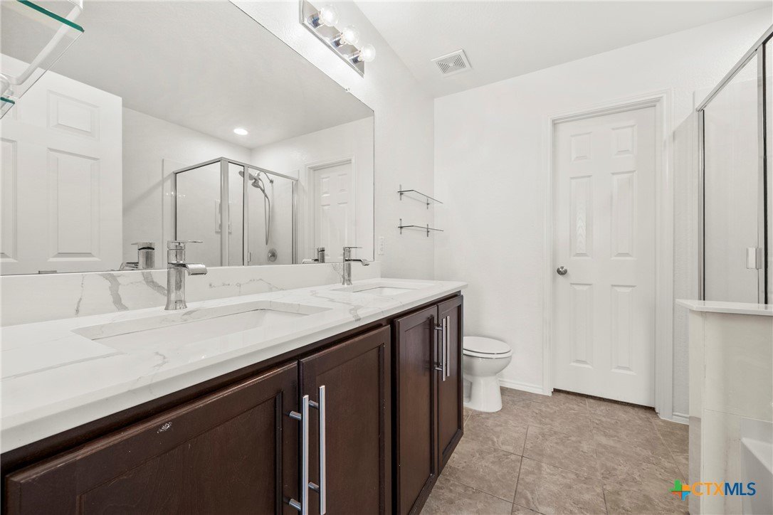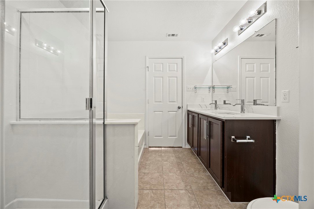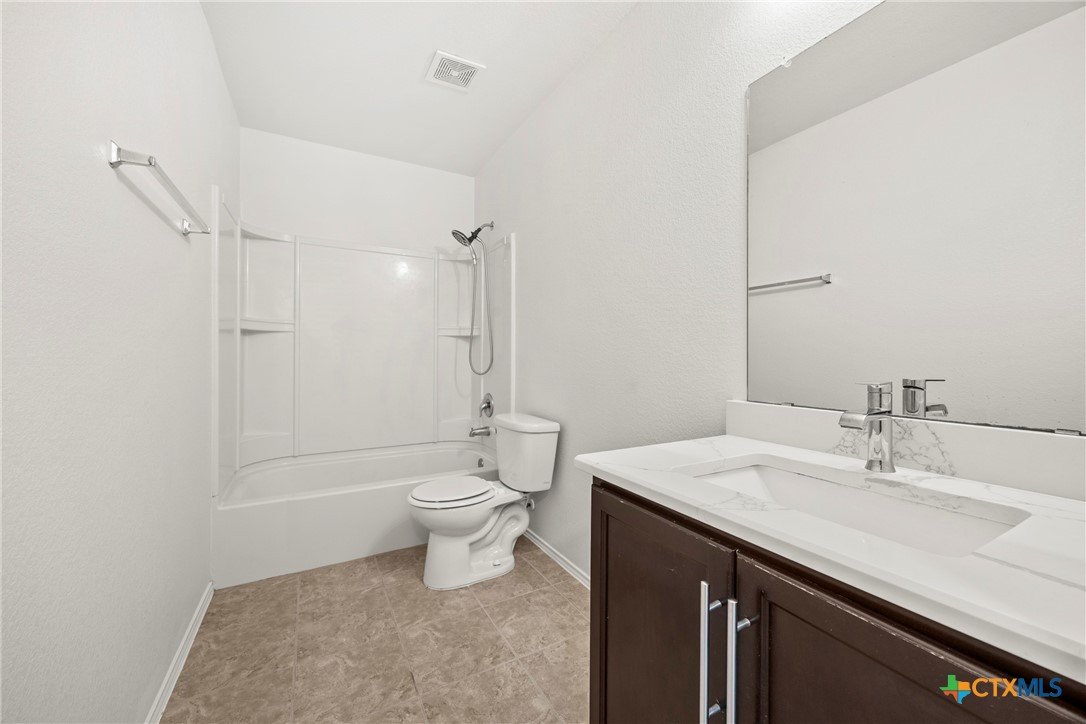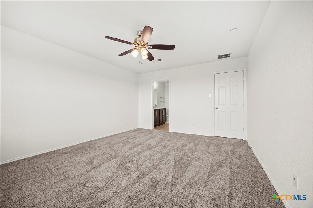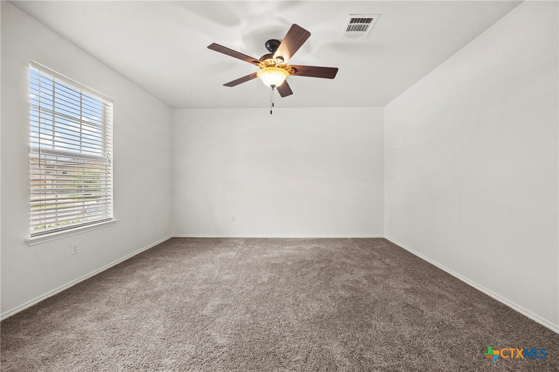 This spacious 4-bedroom, 2.5-bath home is equipped with a generator plug, offering added security and convenience during power outages. With 2,862 square feet of comfortable living space and a NEW ROOF, this home welcomes you with an open-concept design and a versatile flex room—perfect for a home office, playroom, or additional living area. The large living space flows seamlessly into the eat-in kitchen, featuring Quartz countertops, a generous island, a walk-in pantry, and plenty of cabinet storage—ideal for everyday living and entertaining. The spacious laundry room, complete with upper cabinets, is conveniently located downstairs along with a guest-friendly half bath. All four bedrooms offer walk-in closets, and there’s also a spacious loft that can serve as a second living area, game room, or study space. The primary suite located on the first floor is a true retreat, featuring a massive walk-in closet and an ensuite bath with dual vanities, a separate shower, and a soaking tub—perfect for unwinding after a long day. This home has been FRESHLY PAINTED, features brand-NEW carpet throughout, and boasts a new roof. Additional highlights include ceiling fans in every room and a private backyard, perfect for entertaining or watching the kids play. Move-in ready and waiting for its next owner, this home is conveniently located in Killeen—just minutes from schools, shopping, restaurants, and Ft. Hood, with easy access to Temple, Waco, Austin, and the beautiful Hill Country. Schedule your showing today and make this incredible home yours!
