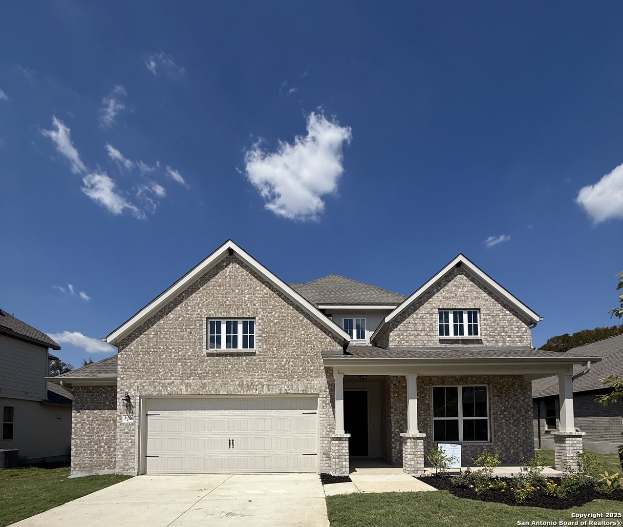 This popular floor plan has something for everyone! With soaring ceilings in the foyer and family room and an open concept design in main living area, this home is as stunning as it is functional. There's a first-floor guest bedroom as well as a spacious study that's perfect for working from home. The gourmet kitchen is complete with quartz countertops, built-in appliances, a 5-burner cooktop, an over-sized island, a working-kitchen and a spacious pantry with plenty of storage. The primary bedroom suite includes an extended space with a window seat and a luxurious bathroom with a separate tub and shower and a large walk-in closet. Entertain guests when you open the sliding glass doors on the Texas-sized covered patio or upstairs in the spacious game room.