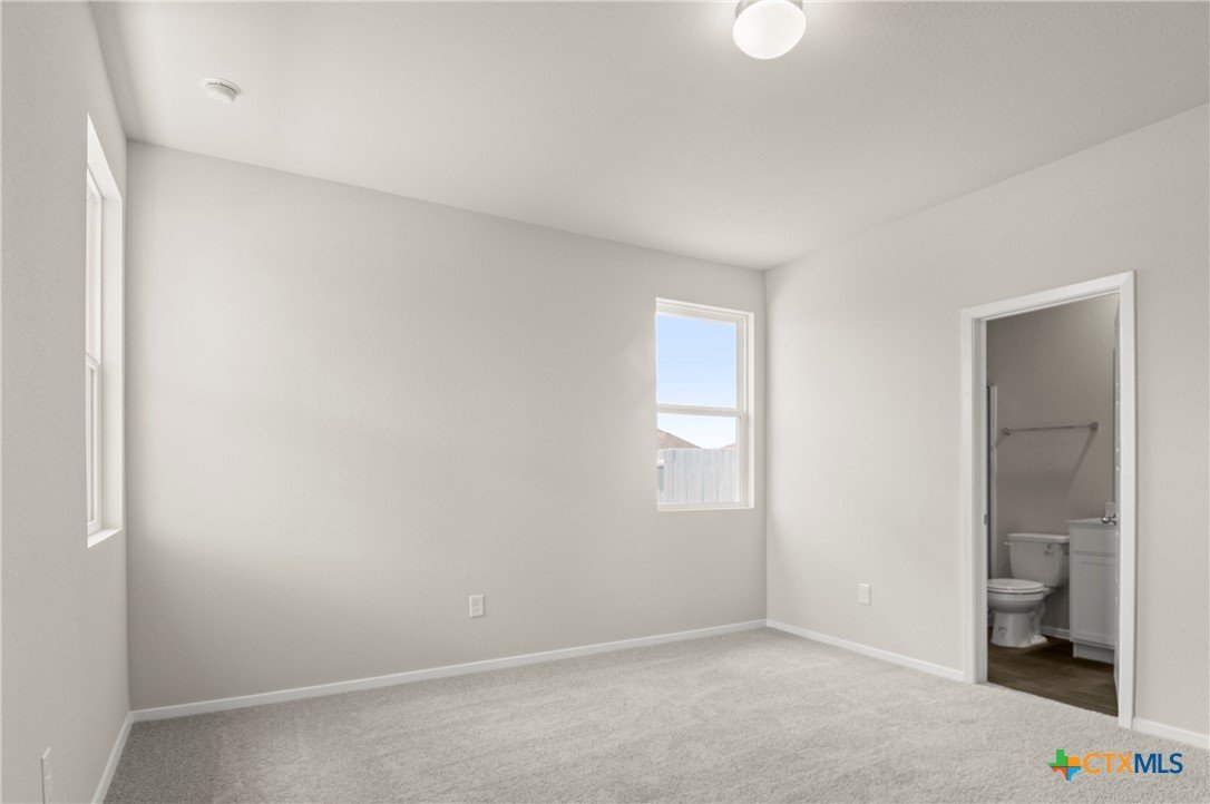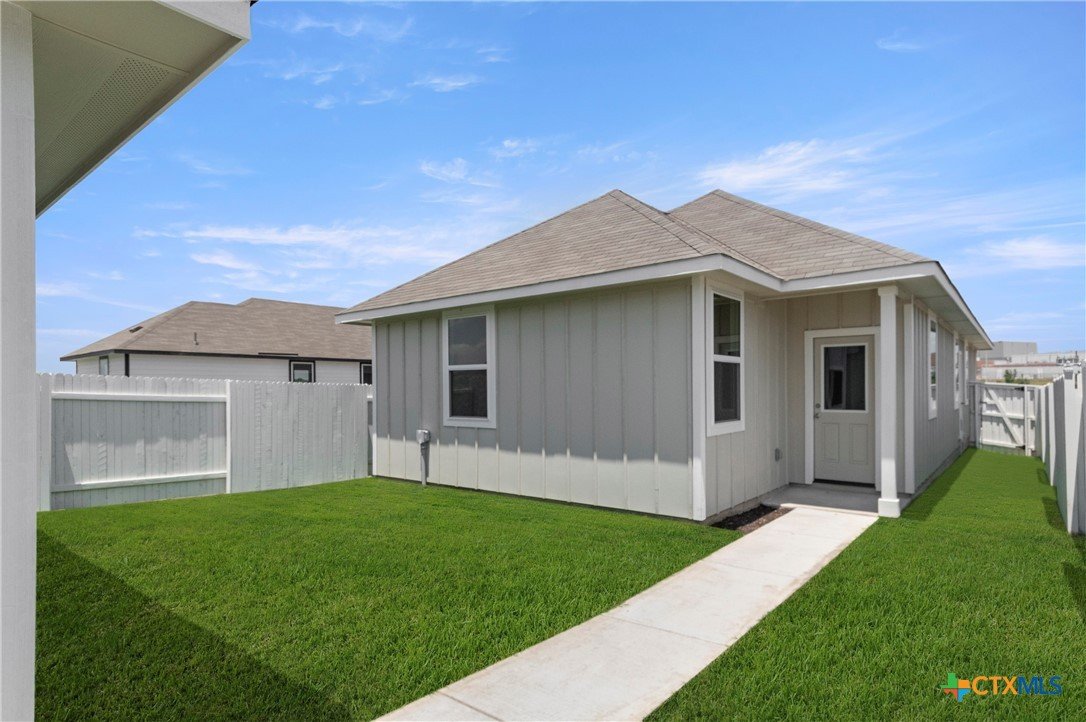 MLS 584785 - Built by Brohn Homes - Ready Now! - Located at 3067 Winding Creek Road in Kyle's premium community, Casetta Ranch, this one-story new construction home features a rear covered patio where you can wind down, an alley access lot, and a two-car detached garage. The home's interior showcases wood-look vinyl flooring throughout the main living areas, white cabinets throughout, and a tankless water heater. Inside the kitchen, you'll find 42-inch upper cabinets, 3 cm granite countertops, and a pantry, and the bathrooms all have raised bathroom vanities with Silestone countertops. Retreat to the primary suite where the walk-in shower and walk-in closet will make the everyday routine easy. And with walk-in closets at the secondary bedrooms and a walk-in storage closet you can maximize your space. Casetta Ranch, the award-winning community based in Kyle, is an oasis to relax. Explore the community amenity center, swimming pool, playground, park, or nearby restaurants. There's even a high school within walking distance. And because it’s an energIQ home built by Brohn, you’re getting more home, more quality, and more value—all without compromise.
