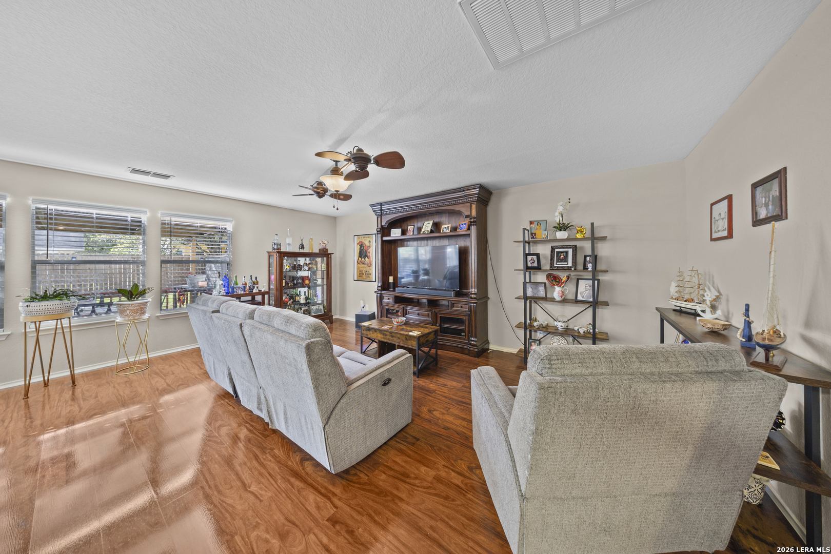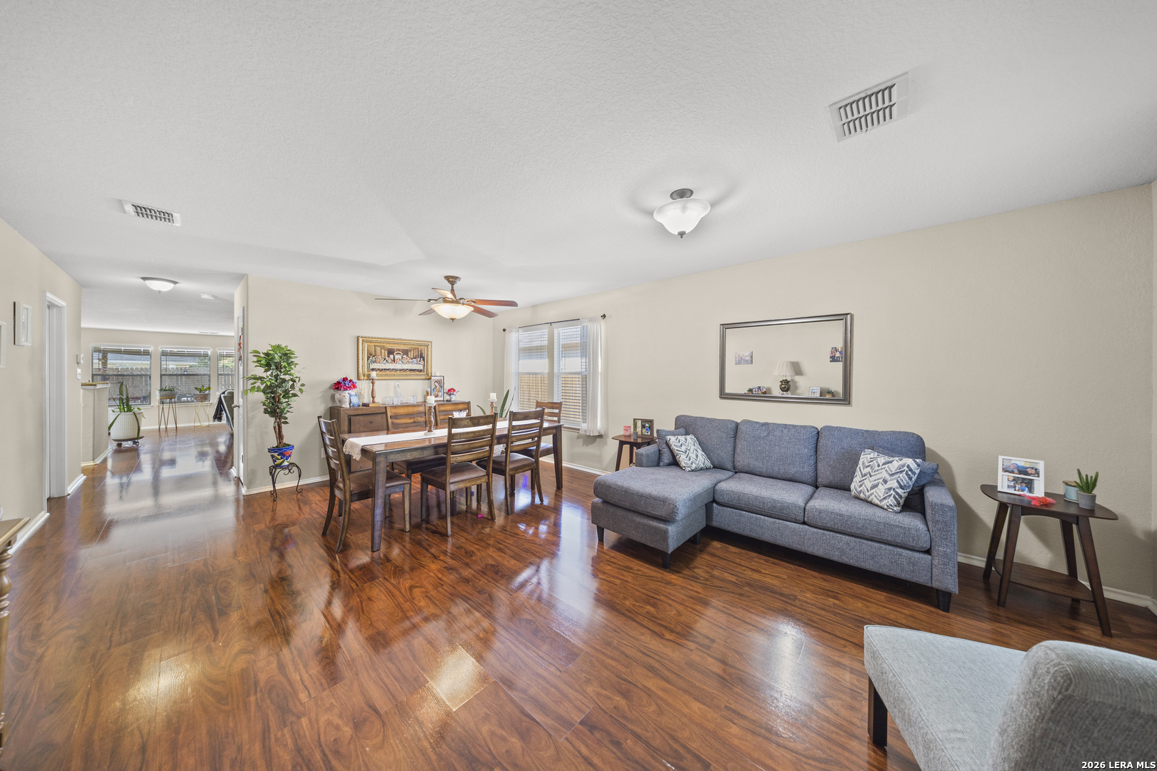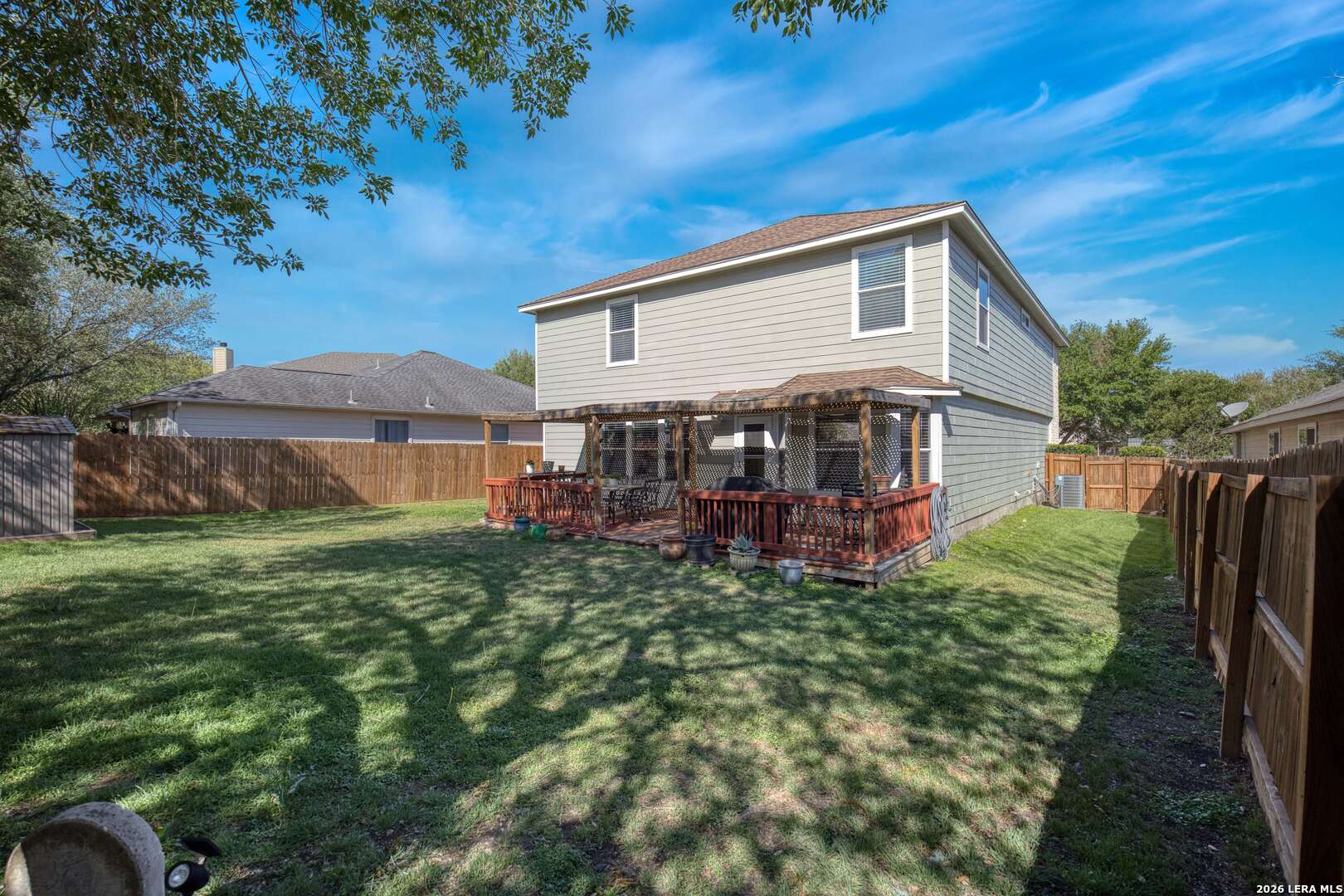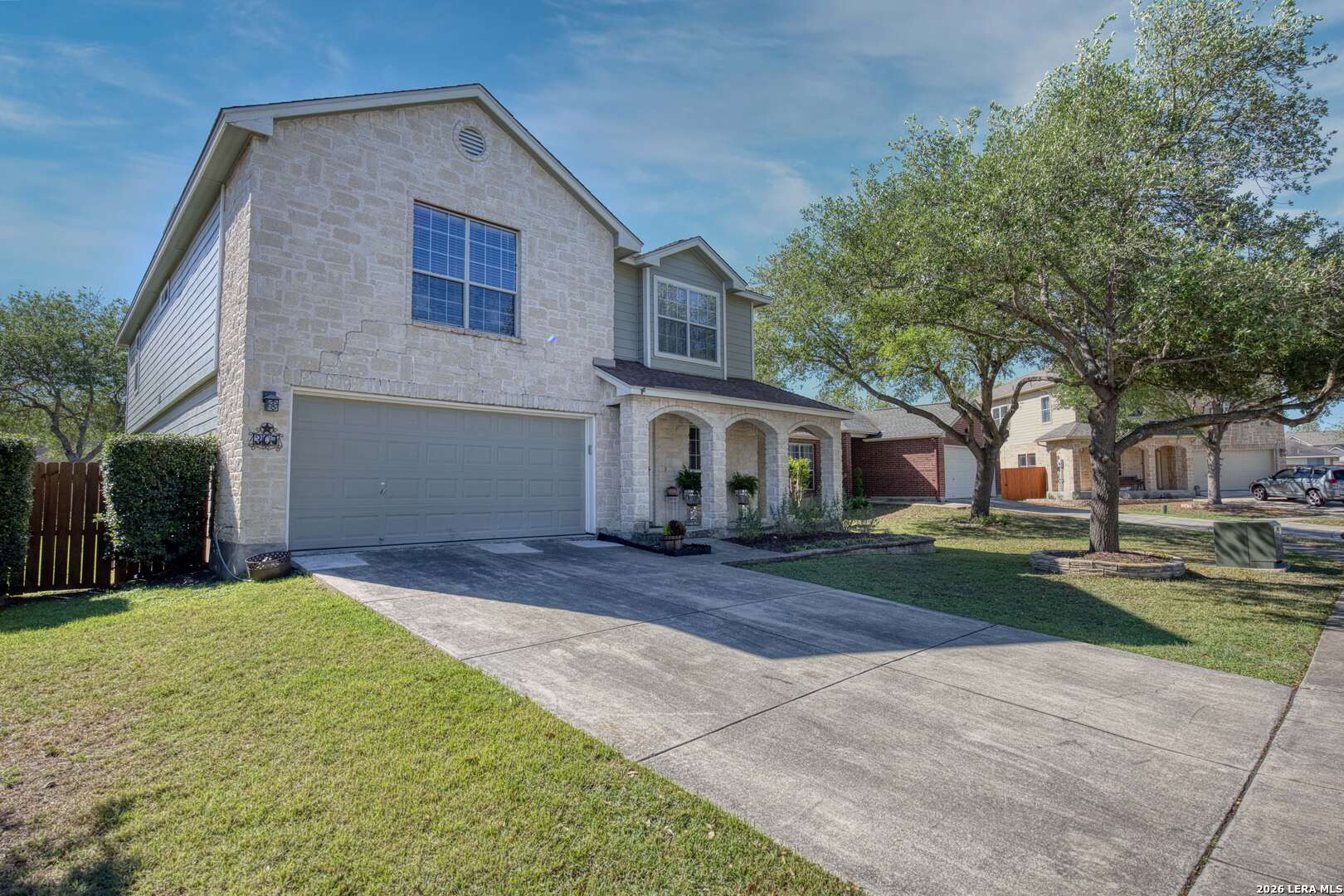 Exceptional two story home offering over 3,200 square feet of well designed living space in the heart of New Braunfels. This meticulously maintained property features 2 spacious living areas, a dedicated dining space, and an open-concept kitchen ideal for both everyday living and entertaining. Filled with natural light, the home showcases a bright and expansive layout complemented by wood flooring and thoughtful upgrades throughout. The kitchen has been enhanced with newly installed granite countertops, ample cabinetry, and a large walk-in pantry. Upstairs, a generous loft is perfect for a game room, media area, or home office. The spacious primary suite offers a well appointed bath with luxury vinyl plank flooring, a custom tiled shower, custom vanity, and a large walk-in closet. All secondary bedrooms are spacious and include walk-in closets. Step outside to a substantial covered back porch overlooking a private, fenced backyard surrounded by greenery, ideal for relaxing or entertaining. Additional features include a welcoming front porch and a two-car garage. A rare combination of size, layout, and condition; this home is truly move-in ready and stands out in today's market.