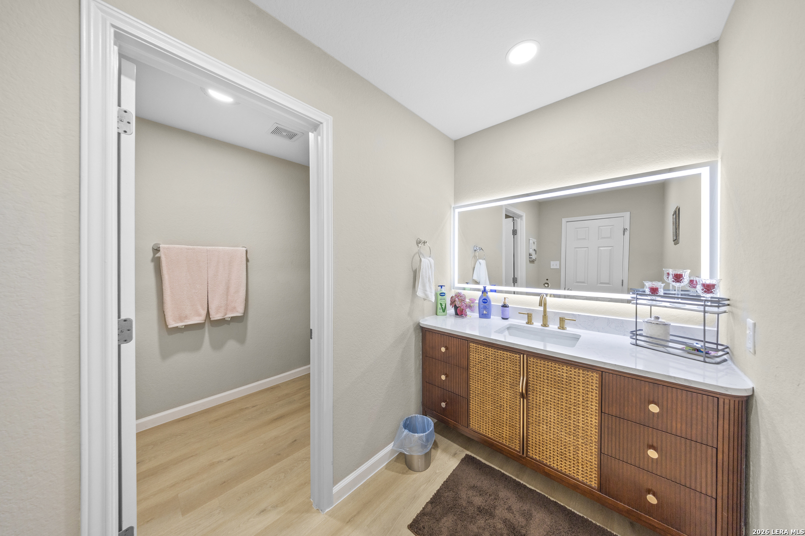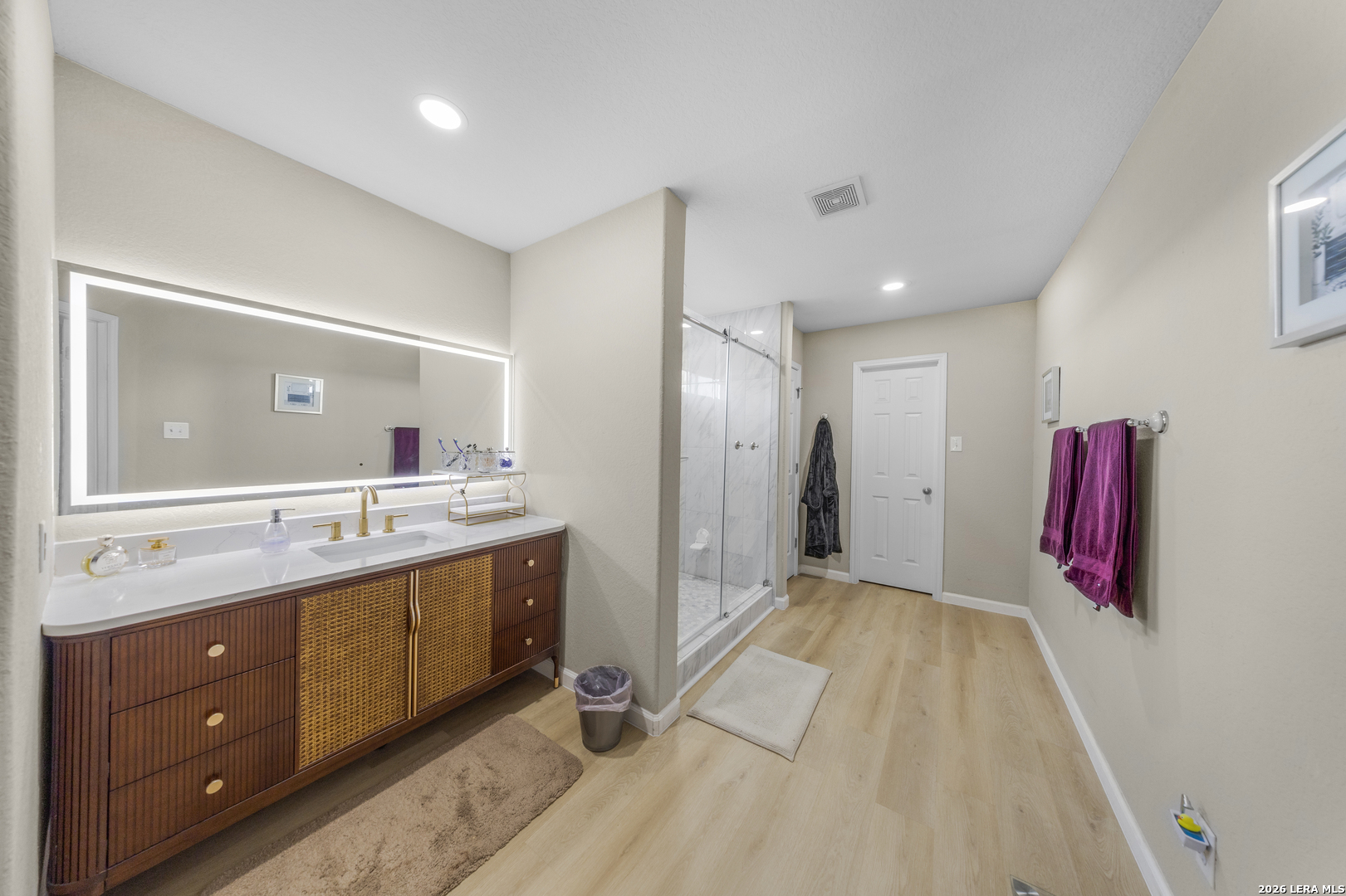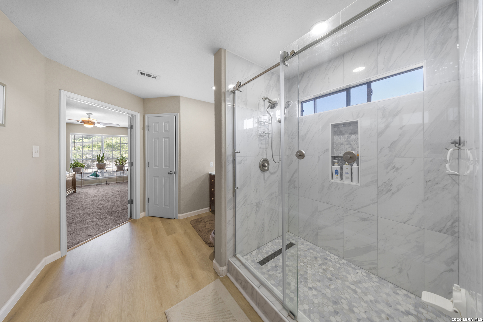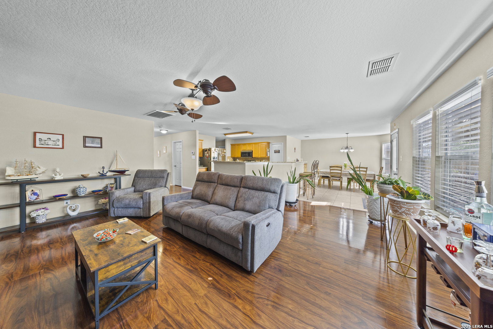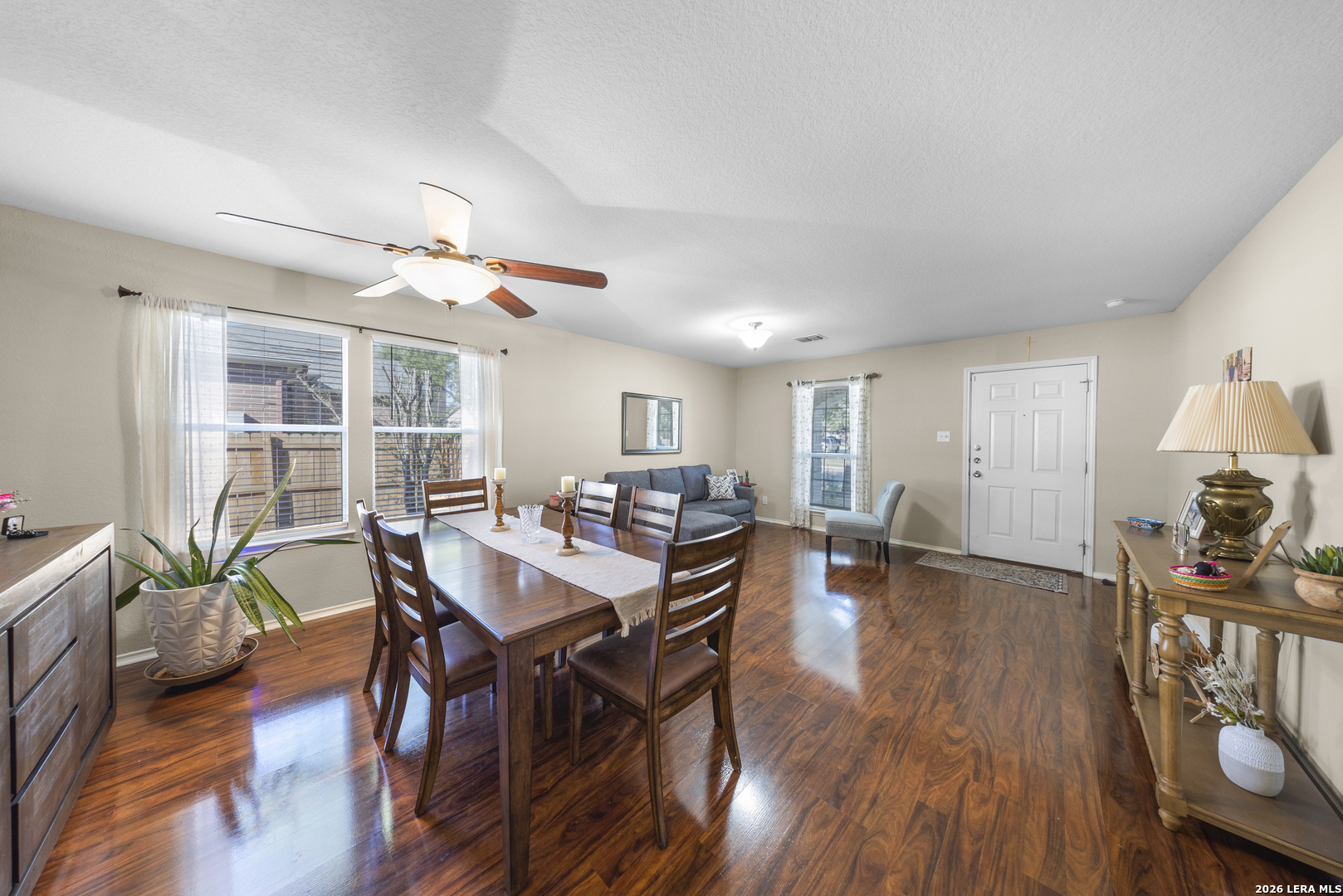 Exceptional two story home offering over 3,200 square feet of well designed living space in the heart of New Braunfels. This meticulously maintained property features 2 spacious living areas, a dedicated dining space, and an open-concept kitchen ideal for both everyday living and entertaining. Filled with natural light, the home showcases a bright and expansive layout complemented by wood flooring and thoughtful upgrades throughout. The kitchen has been enhanced with newly installed granite countertops, ample cabinetry, and a large walk-in pantry. Upstairs, a generous loft is perfect for a game room, media area, or home office. The spacious primary suite offers a well appointed bath with luxury vinyl plank flooring, a custom tiled shower, custom vanity, and a large walk-in closet. All secondary bedrooms are spacious and include walk-in closets. Step outside to a substantial covered back porch overlooking a private, fenced backyard surrounded by greenery, ideal for relaxing or entertaining. Additional features include a welcoming front porch and a two-car garage. A rare combination of size, layout, and condition; this home is truly move-in ready and stands out in today's market.
