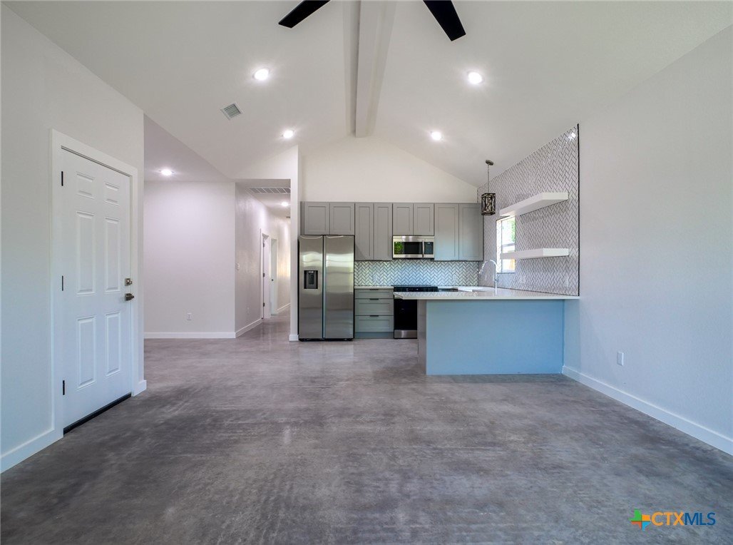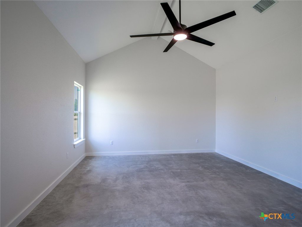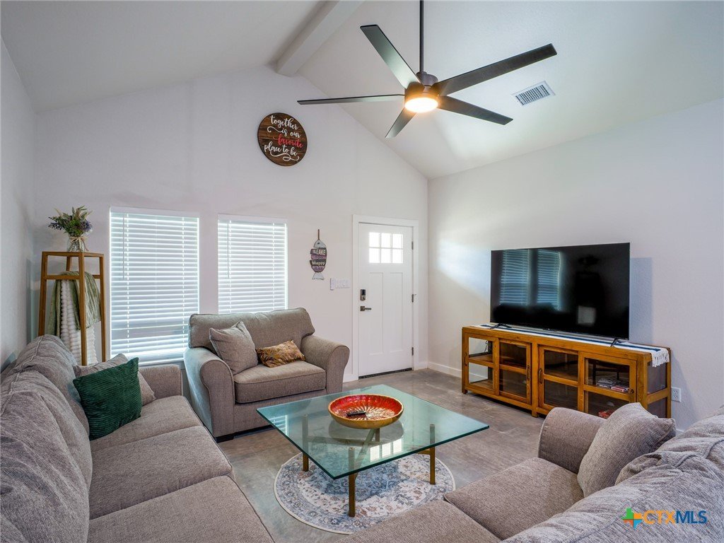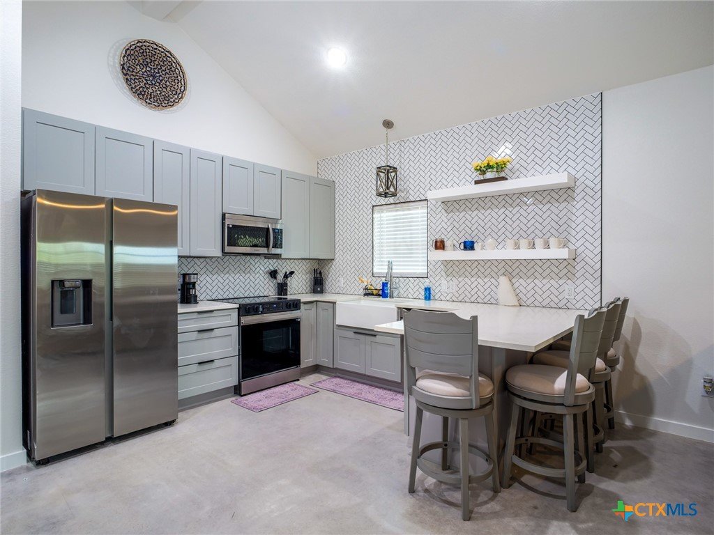 Stunning 3/2/1 New Construction Home in Granite Shoals with easy access to Lake LBJ waterfront parks! A sunny, light and bright living area w/ vaulted ceilings & cedar beam welcomes you as you enter the home, then seamlessly flows into your kitchen/dining area. You are going to love the pretty kitchen w/ custom cabinets featuring soft close doors/drawers, floating cedar shelves, full appliance package including refrigerator & quartz countertops. The owner's retreat has a spacious en-suite bath with a free-standing double vanity, walk in tile shower and a big walk-in closet. Polished concrete floors thru out are gorgeous and offer easy care! Casaperior Homes builds a very energy efficient home w/ 100% spray foam insulation and lots of attention to detail! SHORT TERM RENTALS ALLOWED!! ** Seller will buy down buyer's interest rate with strong offer!!