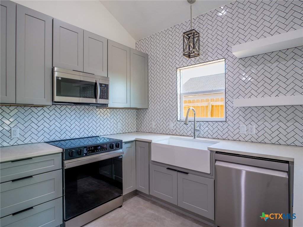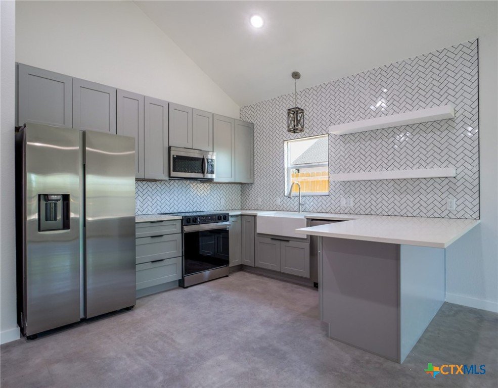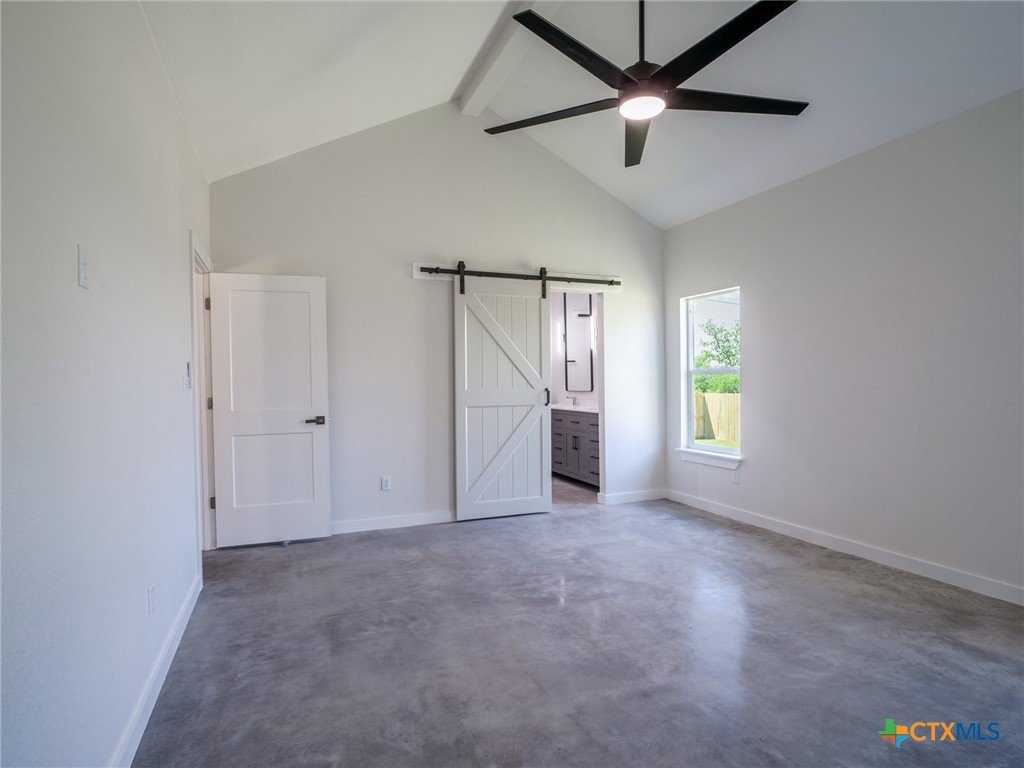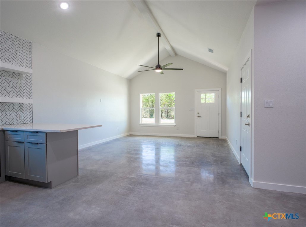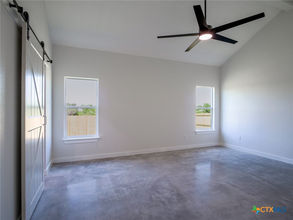 Stunning 3/2/1 New Construction Home in Granite Shoals with easy access to Lake LBJ waterfront parks! A sunny, light and bright living area w/ vaulted ceilings & cedar beam welcomes you as you enter the home, then seamlessly flows into your kitchen/dining area. You are going to love the pretty kitchen w/ custom cabinets featuring soft close doors/drawers, floating cedar shelves, full appliance package including refrigerator & quartz countertops. The owner's retreat has a spacious en-suite bath with a free-standing double vanity, walk in tile shower and a big walk-in closet. Polished concrete floors thru out are gorgeous and offer easy care! Casaperior Homes builds a very energy efficient home w/ 100% spray foam insulation and lots of attention to detail! SHORT TERM RENTALS ALLOWED!! ** Seller will buy down buyer's interest rate with strong offer!!