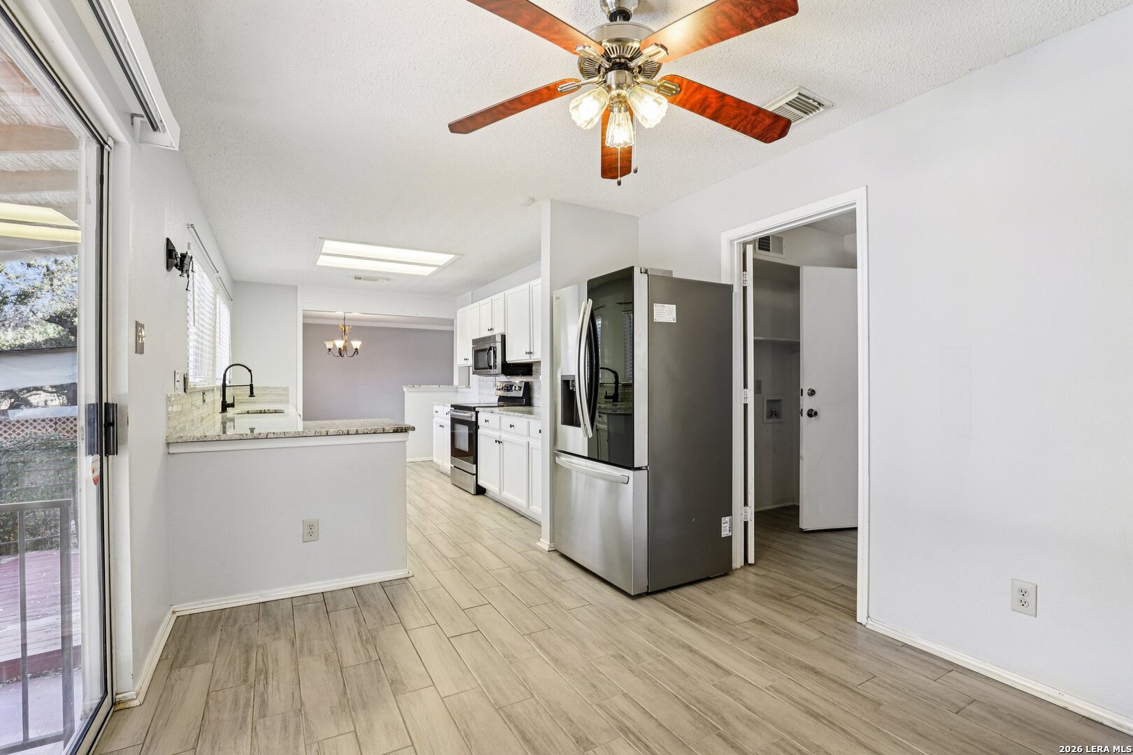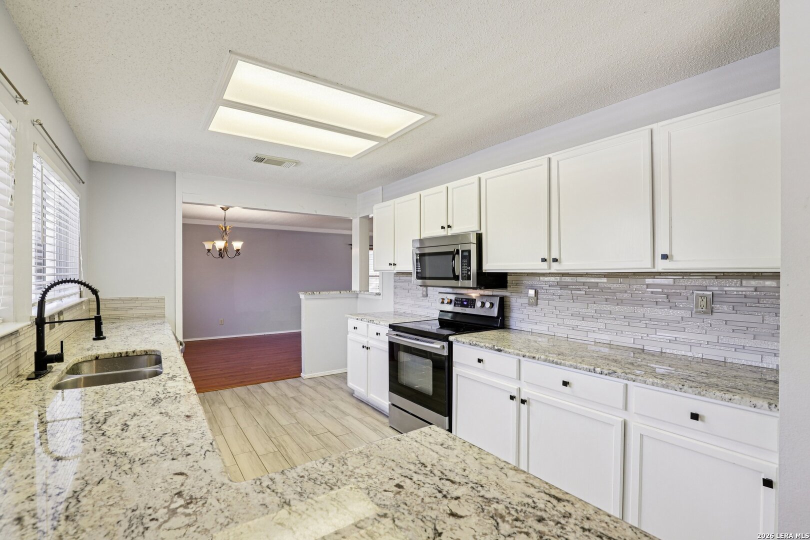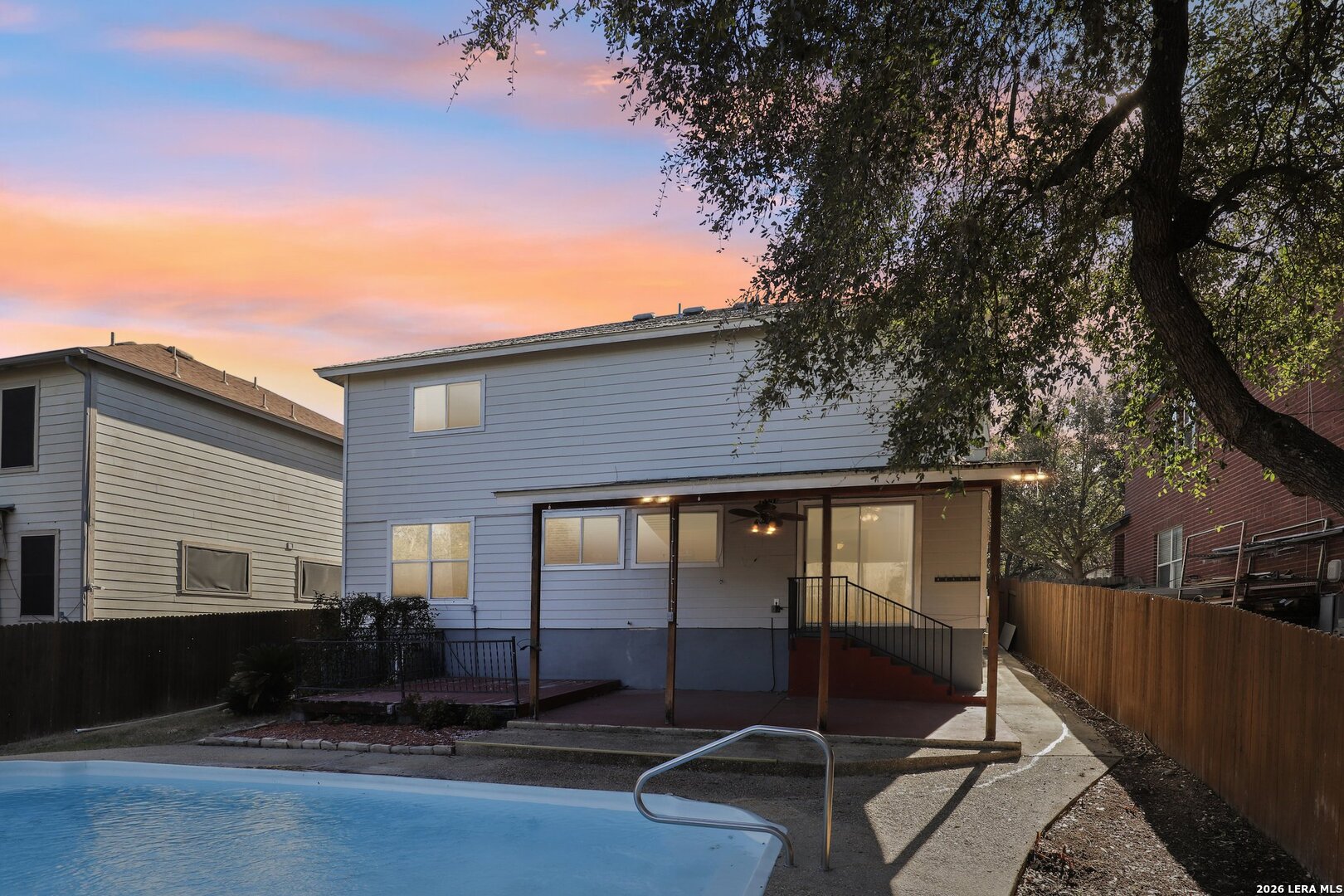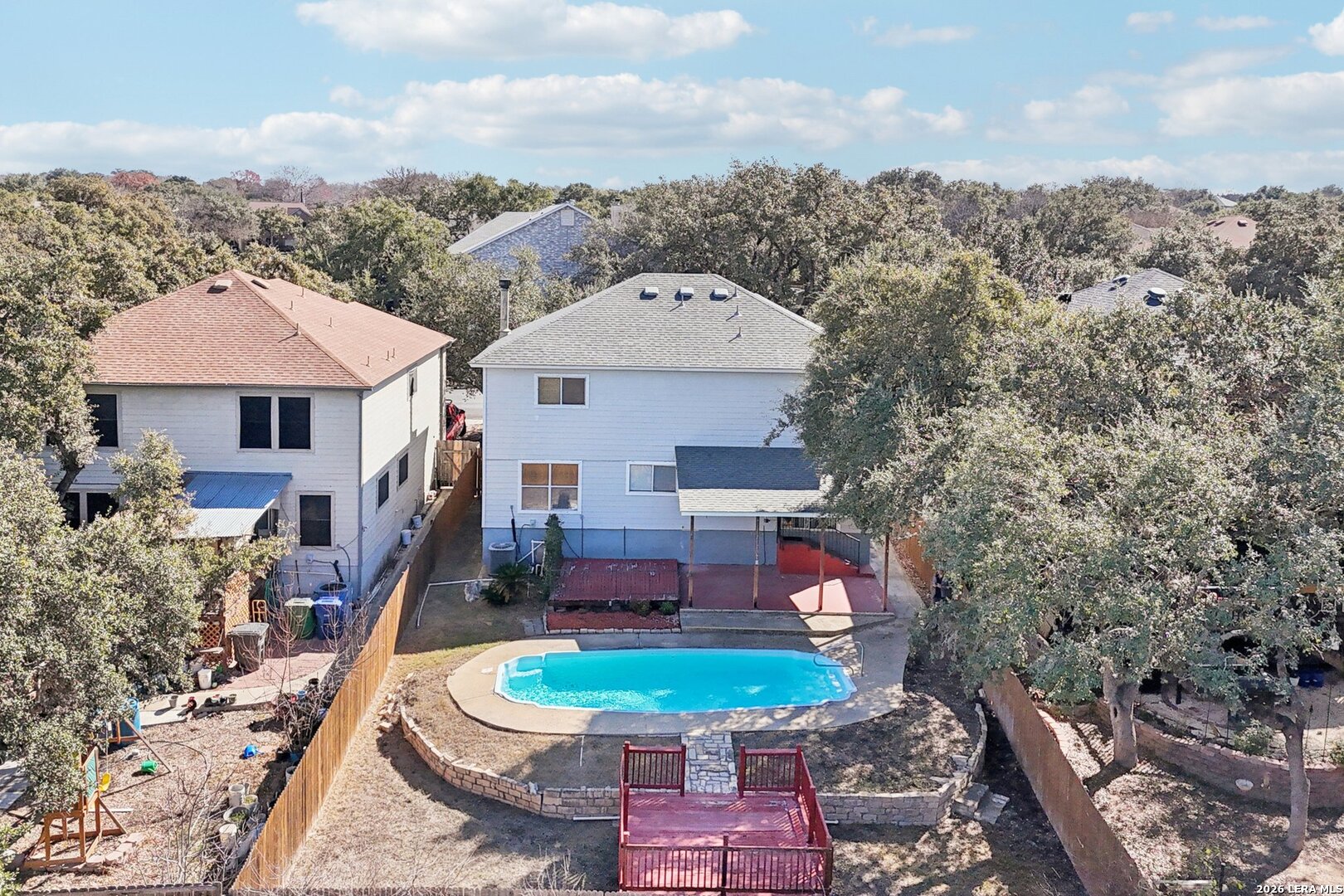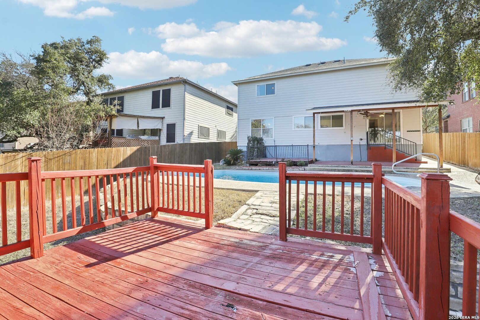 Ready for pool time? This move-in-ready home is calling your name and bringing all the fun with it. Step outside to your own refreshing in-ground pool, perfectly paired with a covered patio and additional deck space, ideal for lounging, entertaining, or soaking up that Texas summer sun. Inside, you'll find a spacious living area anchored by a cozy wood-burning fireplace and a generous dining space that's perfect for gatherings big or small. The kitchen delivers with plenty of granite counter space, crisp white cabinetry, and stylish wood-look tile flooring that ties it all together beautifully. Head upstairs to your private primary retreat, featuring a roomy ensuite bath with dual vanities, a large walk-in shower, and an impressively sized walk-in closet. Three additional secondary bedrooms and another full bath offer plenty of space for everyone. The garage has been thoughtfully converted into an additional room, perfect for a bedroom, home office, gym, or flex space-and can easily be converted back to a functional garage if that's your preference. Just say the word. This home is ready to be enjoyed-inside and out. Come see it today and make it yours and claim your poolside life!