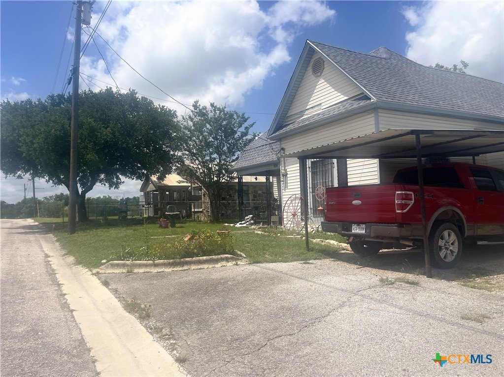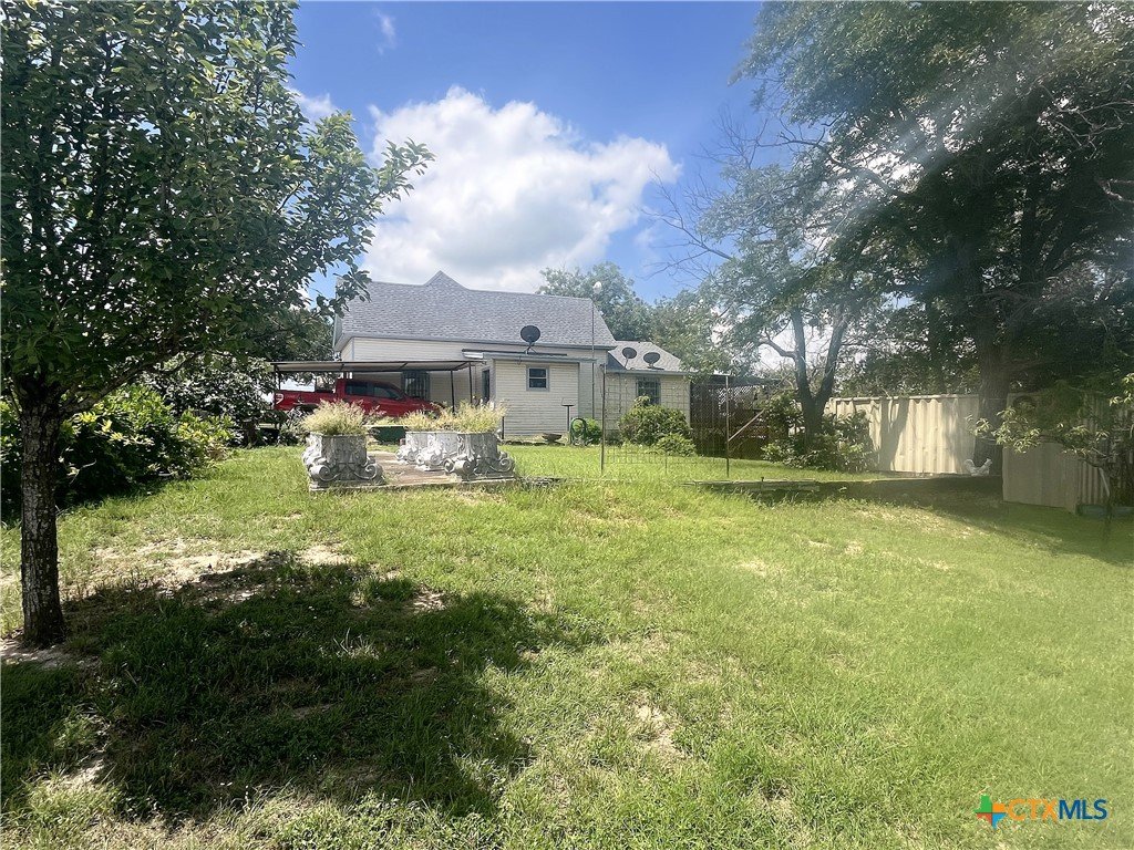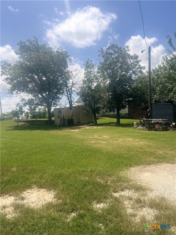 Large Corner lot with access on 8th Street and FM 581 E. Large lot for additional build if desired. Quaint older home, could be 3 bedrooms, one of the bedrooms is currently used for laundry room. Home has a large open eat in kitchen, front living area and a back den open with the kitchen area. Large covered back deck porch allowing for back yard living. This would make a great home to renovate. Only one block from school, raise your family or great for retirement!