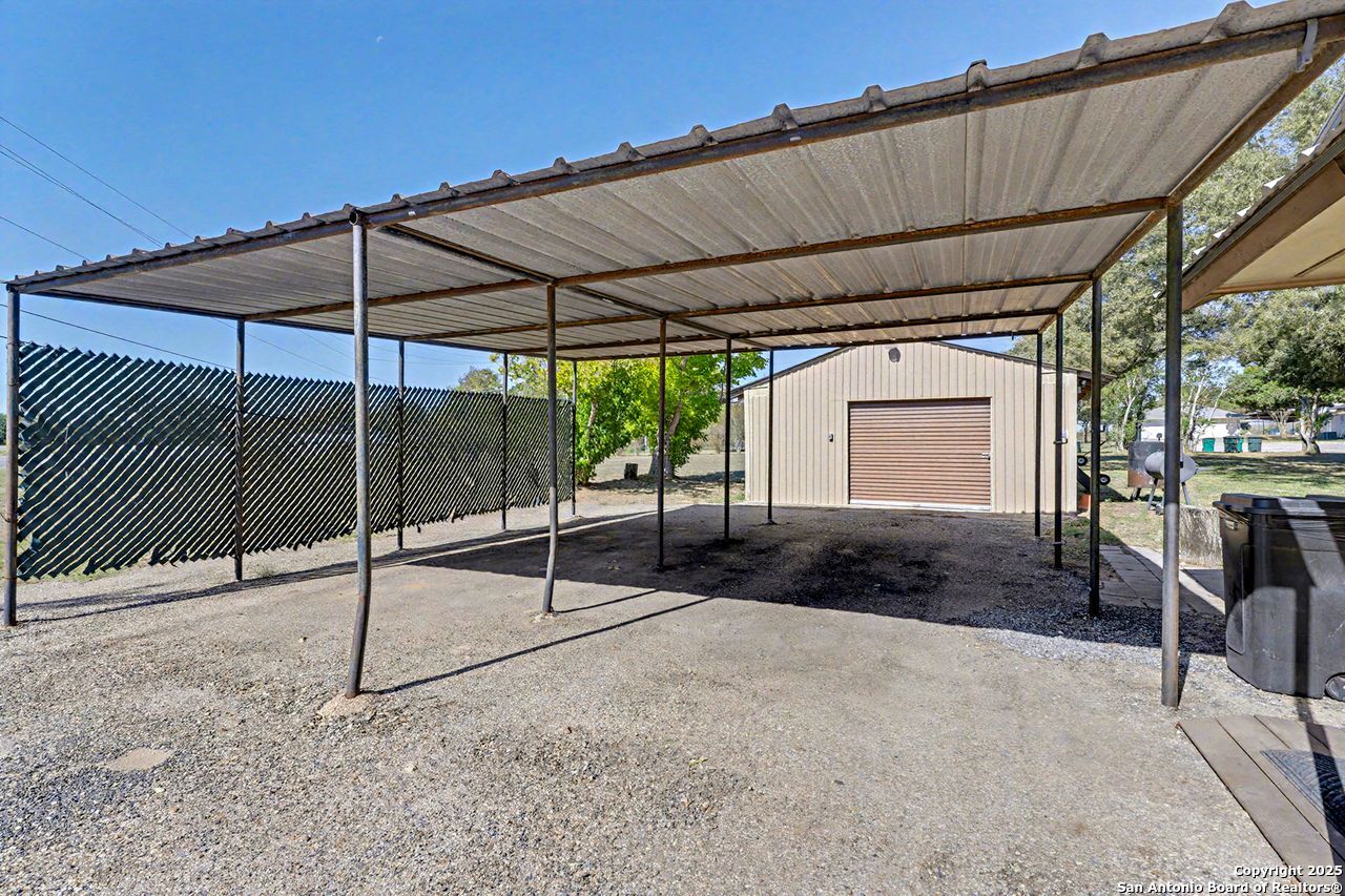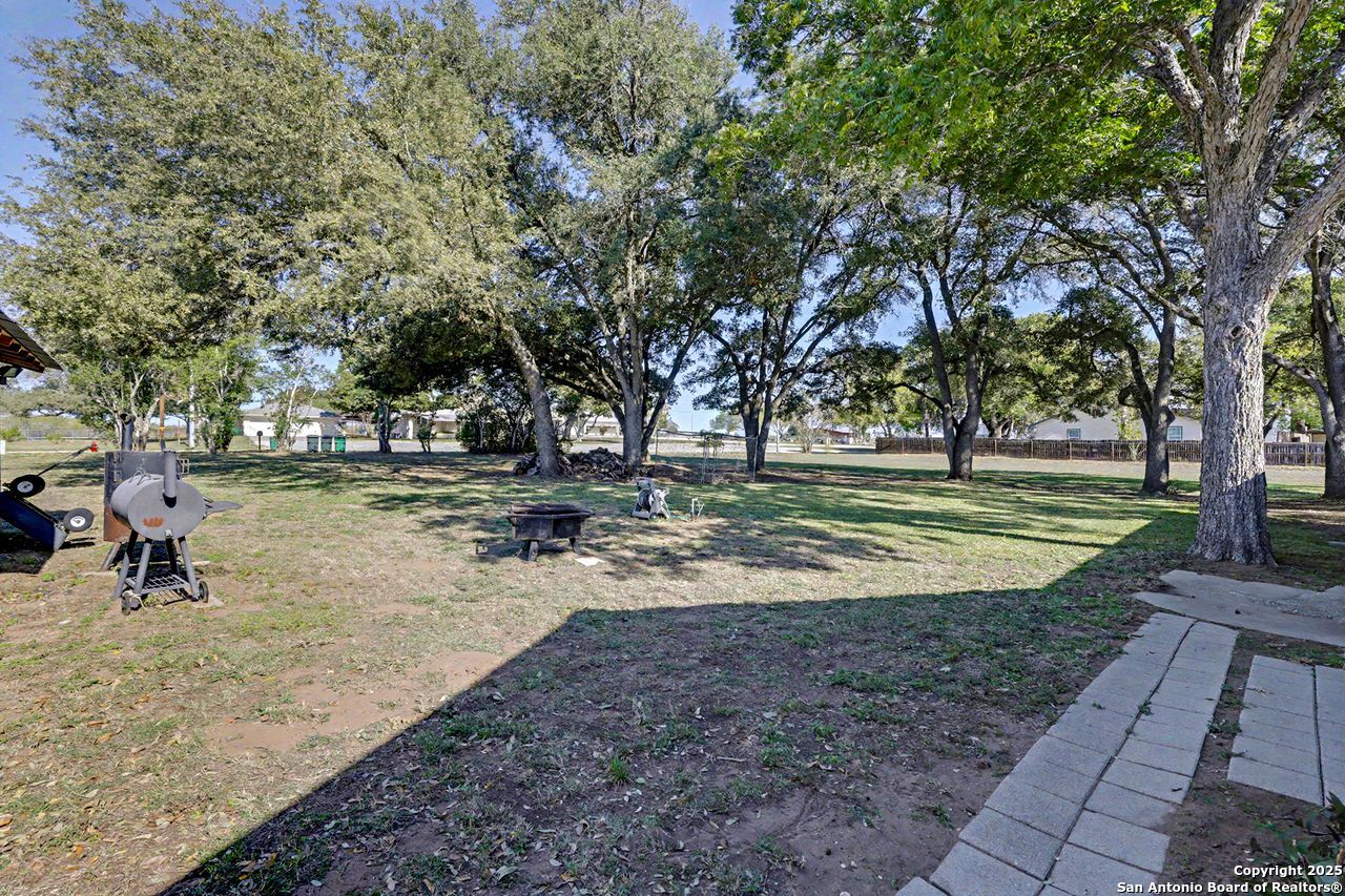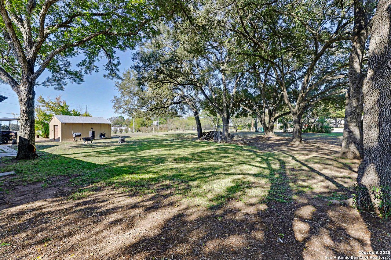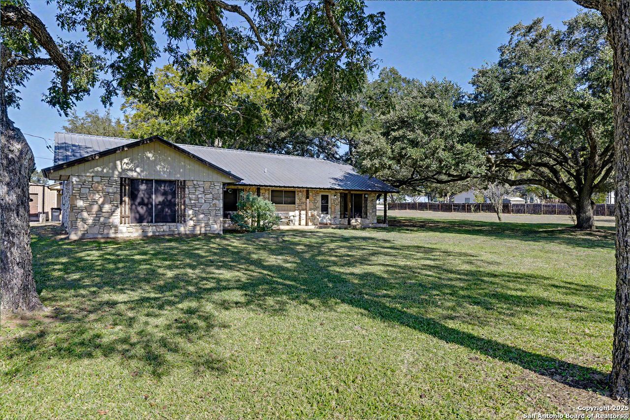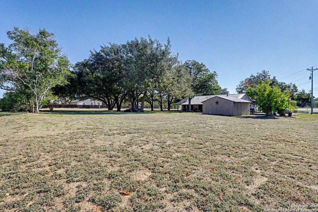 This 3 bedroom, 2 bath residence is perfectly situated on a combined corner lot, offering both highway frontage and a serene residential street. As you enter the 2291 square foot home, you're greeted with Saltillo tile floors that flow seamlessly throughout the open-concept design. The generous living room, dining room, and kitchen provide a perfect space for gatherings. The master bedroom features not one, but two walk-in closets which runs parallel with the rest of the ample storage space throughout the home.The additional bedrooms are perfect for family, guests, or even a home office. The utility room enhances your convenience providing space for extra refrigerators or freezers, along with a walk-in pantry to keep your kitchen fully stocked. Step outside and view the beauty of nature with a blend of legacy oak trees and pecan trees , providing shade and charm. In addition, there's a 2 car carport and small storage shed. Don't miss this opportunity to own property that combines charm, functionality, and location.