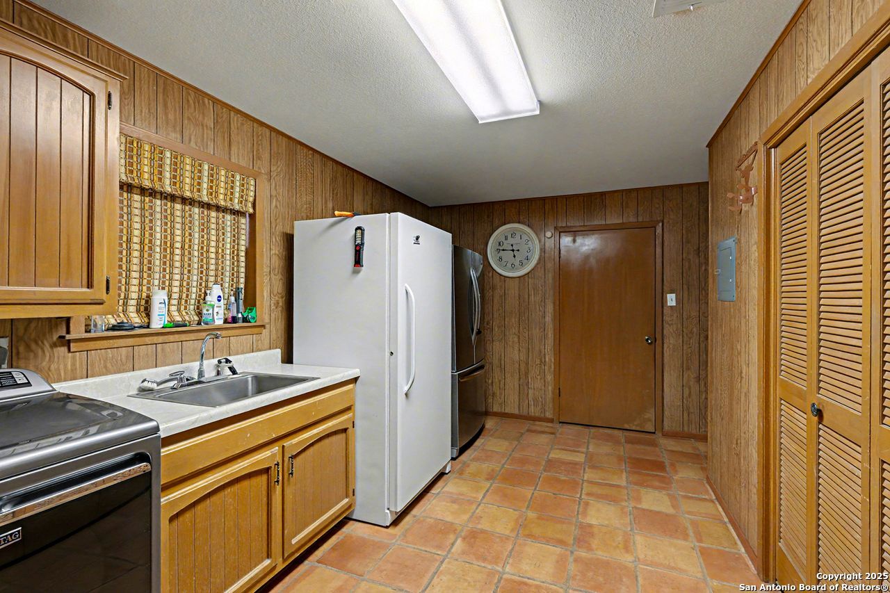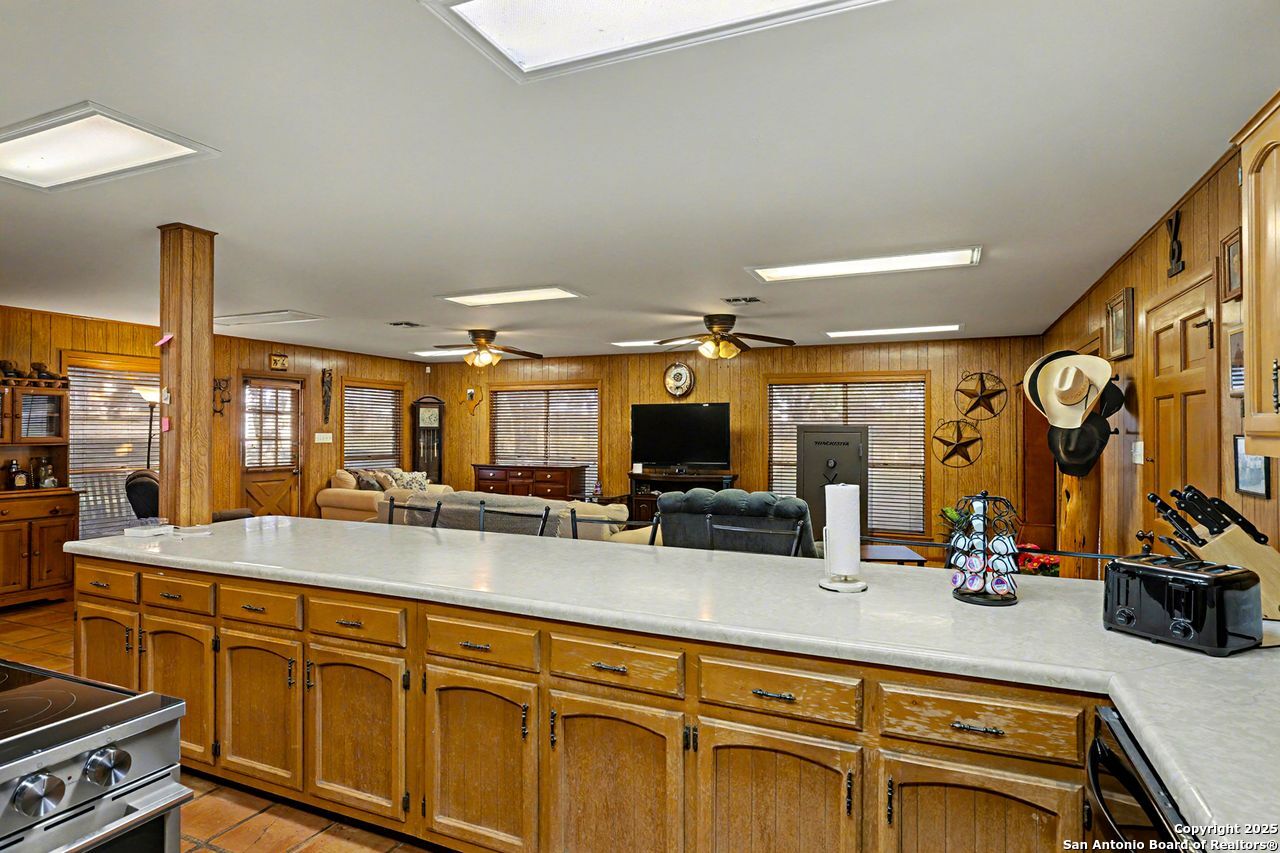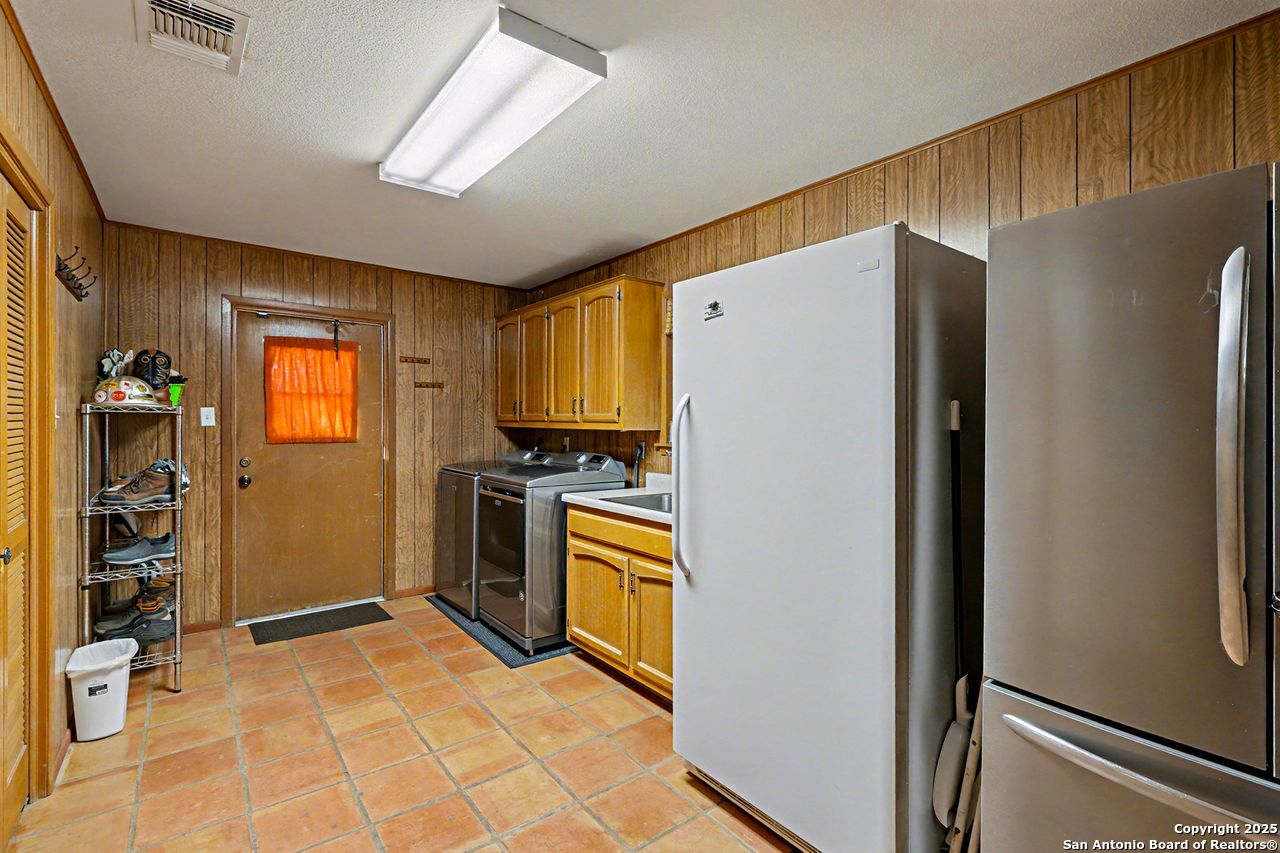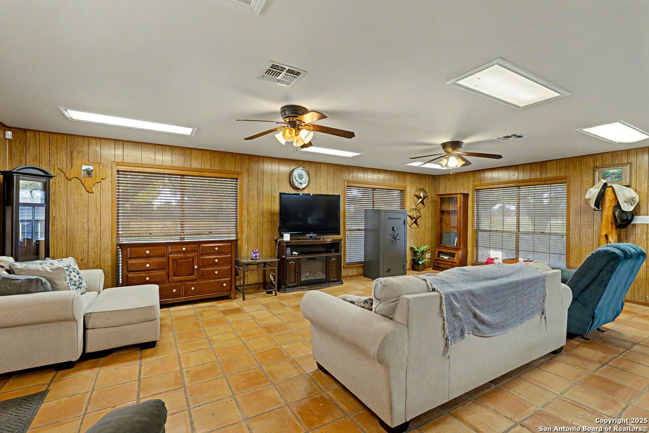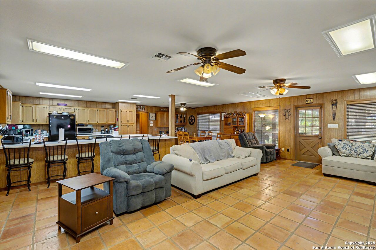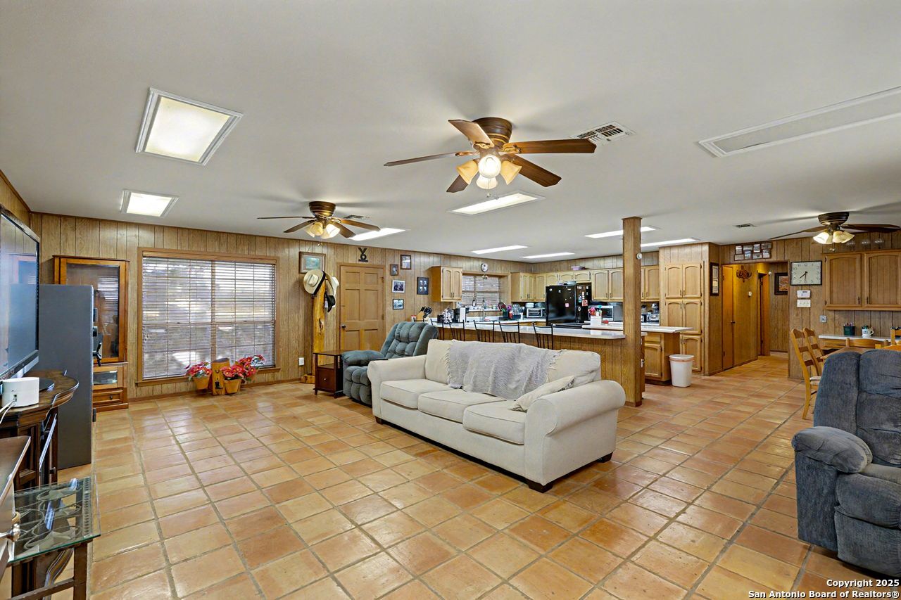 This 3 bedroom, 2 bath residence is perfectly situated on a combined corner lot, offering both highway frontage and a serene residential street. As you enter the 2291 square foot home, you're greeted with Saltillo tile floors that flow seamlessly throughout the open-concept design. The generous living room, dining room, and kitchen provide a perfect space for gatherings. The master bedroom features not one, but two walk-in closets which runs parallel with the rest of the ample storage space throughout the home.The additional bedrooms are perfect for family, guests, or even a home office. The utility room enhances your convenience providing space for extra refrigerators or freezers, along with a walk-in pantry to keep your kitchen fully stocked. Step outside and view the beauty of nature with a blend of legacy oak trees and pecan trees , providing shade and charm. In addition, there's a 2 car carport and small storage shed. Don't miss this opportunity to own property that combines charm, functionality, and location.