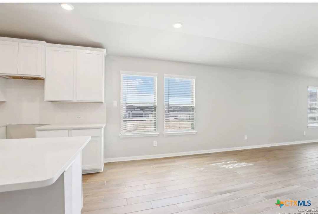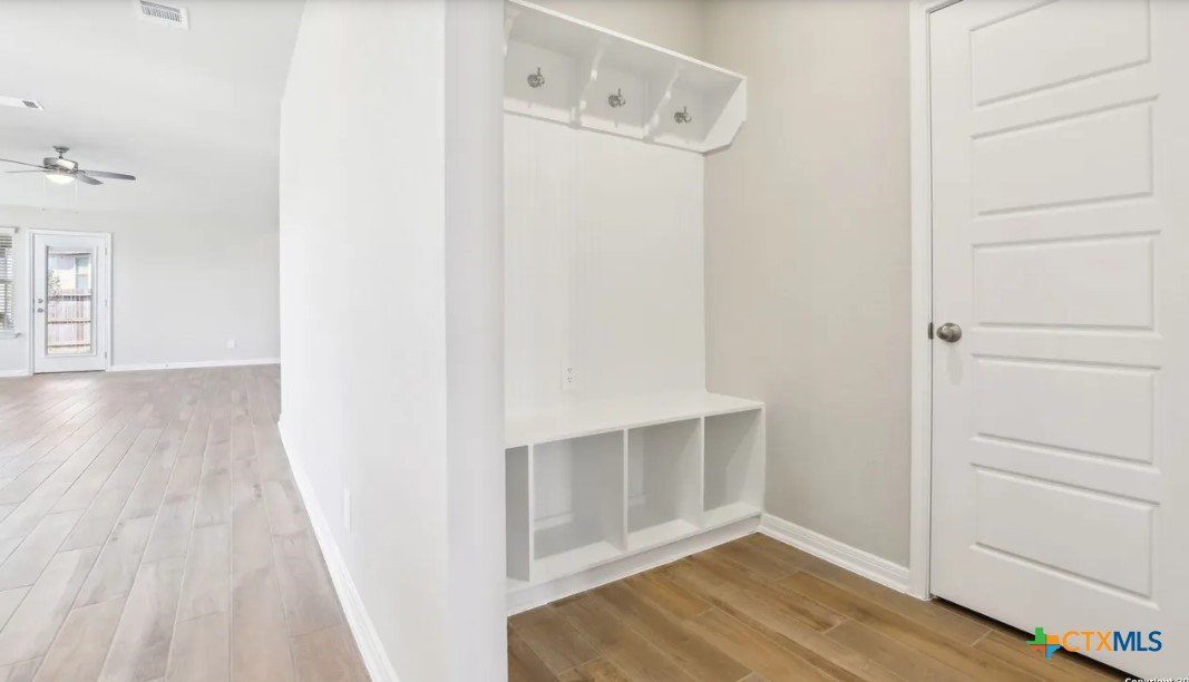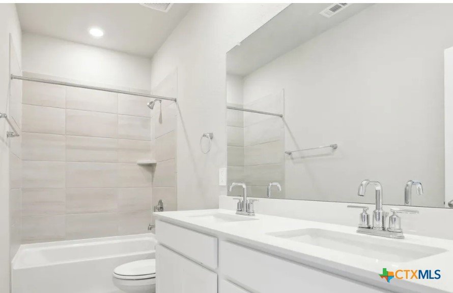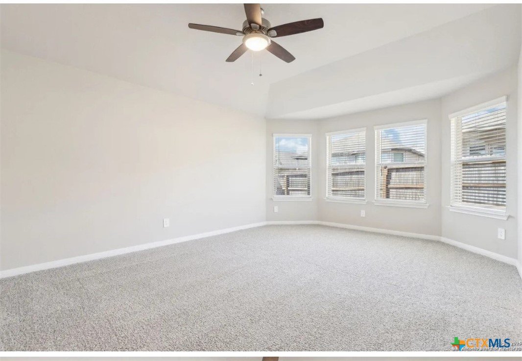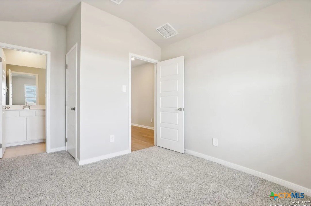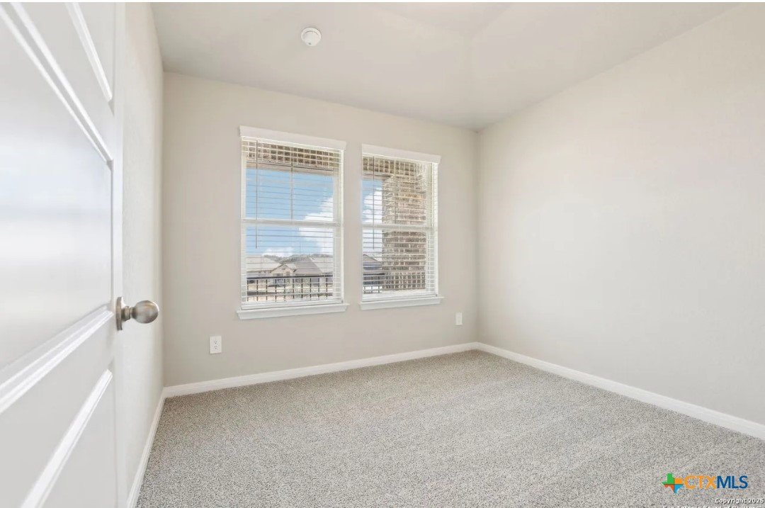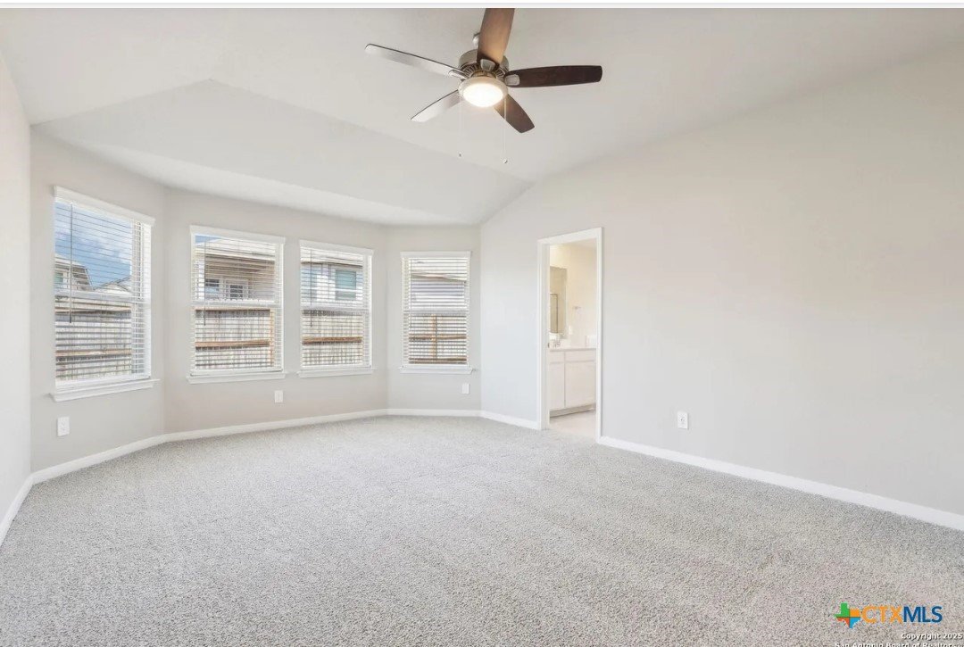 Location, Location, Location! Lowest tax rate in the area at approximately 1.39% —a rare find! This nearly new one-year-old Hughes floor plan offers 4 bedrooms, 3 baths in a spacious single-story design and is priced under market, making it an exceptional value with every imaginable builder upgrade. Step inside to a wide-open floor plan featuring a combined living and dining area perfect for entertaining. The gourmet quartz island kitchen boasts a stylish subway tile backsplash, top-of-the-line appliances, walk-in pantry, and refrigerator with water and ice in the door. Trendy wood-look tile flooring runs throughout the main living areas. The enormous luxury primary suite includes beautiful bay windows and a spa-inspired ensuite bath with double vanities, garden tub, separate shower, and large walk-in closet. A separate bonus/TV/playroom provides flexible space for media, work, or play. Additional upgrades include an in-home pest control system, in-ground sprinkler system, security system, and energy-efficient foam insulation. Newer washer/dryer and window blinds convey. The home features a striking brick and rock exterior, covered front porch, and an impressive 8-foot wood and glass front door, plus a huge covered back patio perfect for outdoor living. Located in a charming neighborhood of approximately 250 homes with 15+ acres of preserved undeveloped land in the center. Just 5 minutes to downtown New Braunfels and within walking distance to H-E-B, Starbucks, shops, and numerous restaurants, offering the perfect combination of location, lifestyle, and value.