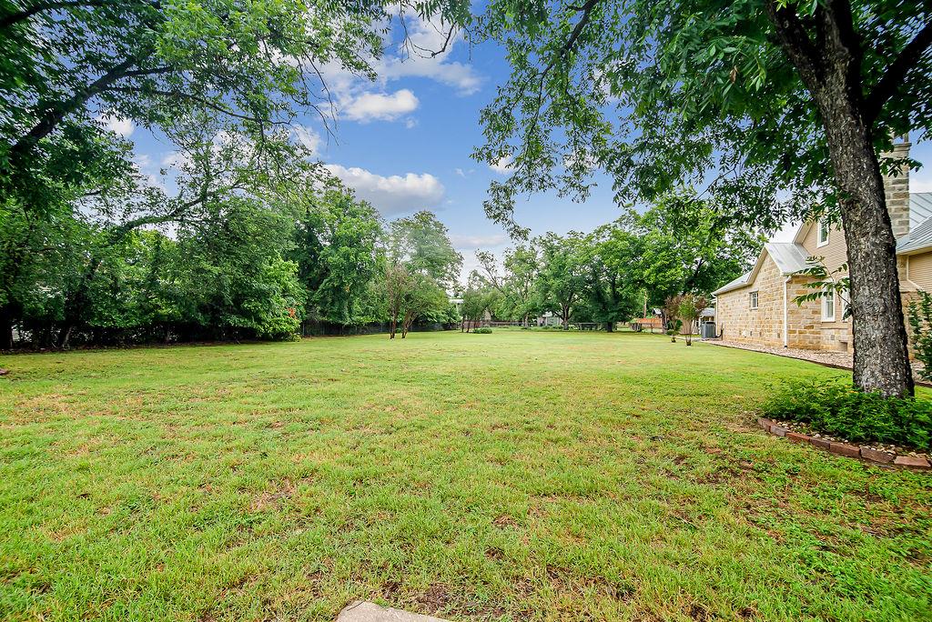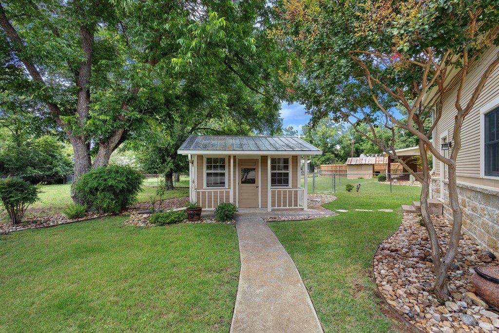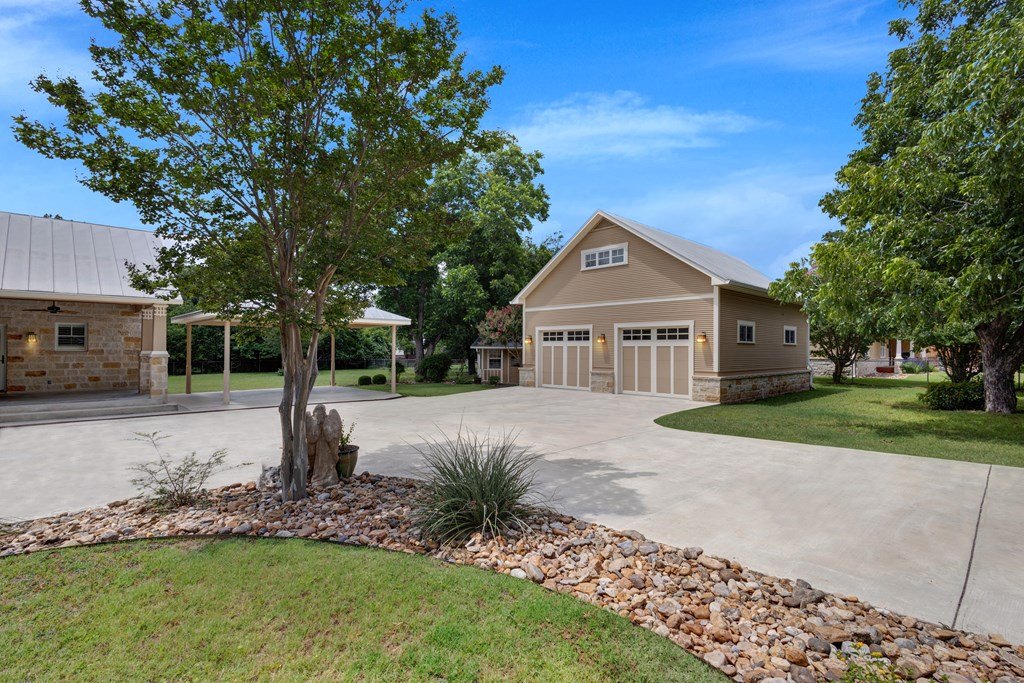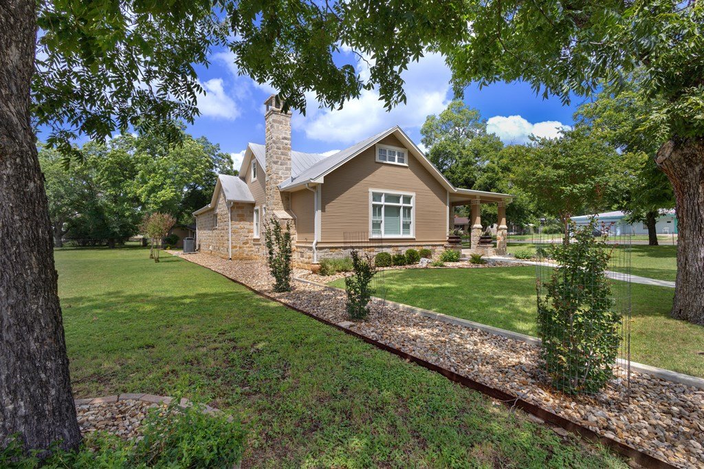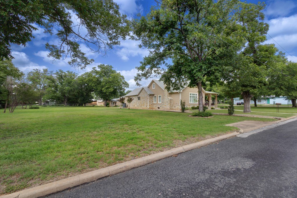 DUAL LOT OPPORTUNITY (308 & 310 East Centre Street, Fredericksburg). This distinctive property and residence, constructed in 1955 and recently transformed, occupies a prominent corner position on Centre and Washington Street on the east side of Fredericksburg's vibrant downtown. It is offered with an adjacent, sizable city lot (0.41 acres), which significantly broadens the horizon for the new owner; presenting an opportunity to expand the home's footprint (plans available), construct another dwelling, resell separately, or to preserve a buffer of privacy and open space for recreational areas. The property is situated in an established, highly sought-after neighborhood with the combined 0.82 acres providing beautifully manicured grounds, replete with lush, mature trees that add elegance to the attractiveness of the home. Upon entry, the impressive sense of scale immediately captures attention along with the meticulously considered design details and finishes; from the carved architectural wood pilasters to the engineered wood joists and plantation shutters. The downstairs floor plan is open concept with mesquite wood floors throughout and a grand wood-burning fireplace that references the entry hall, vast living room space, dining area, and gourmet kitchen. The kitchen has a substantial island for casual gathering and comfortable dining, ample counter space for food prep, generous cabinets, a dedicated pantry, and a large window to the outdoors. On the main level of the house is the primary en-suite bedroom offering a walk-in closet and a sumptuously equipped and comprehensively outfitted bathroom. The 2nd story is a flexible space that could be a home office for more than one person, a children's/grandchildren's haven, or a personal workout area. There is a separate spacious laundry room with hanging area, counter space for folding, cabinets for storing and a convenient sink. The exterior living is equally considered, with an expansive patio for al fresco dining and relaxation. Above the 2-car garage is a separate 1-bedroom, 1-bathroom apartment with a kitchenette for guests, extended family, or could be short-term rental prospects. This is an exceptional opportunity to tailor a significant holding to perfectly suit personal aspirations; an idyllic home or secondary home, a multi-generational compound or simply a chance to secure a valuable asset for the future in a sought-after locale. SEE VIDEO TOUR and FLOOR PLAN.