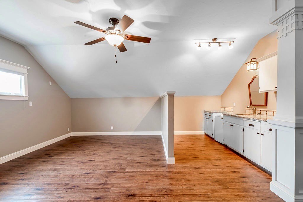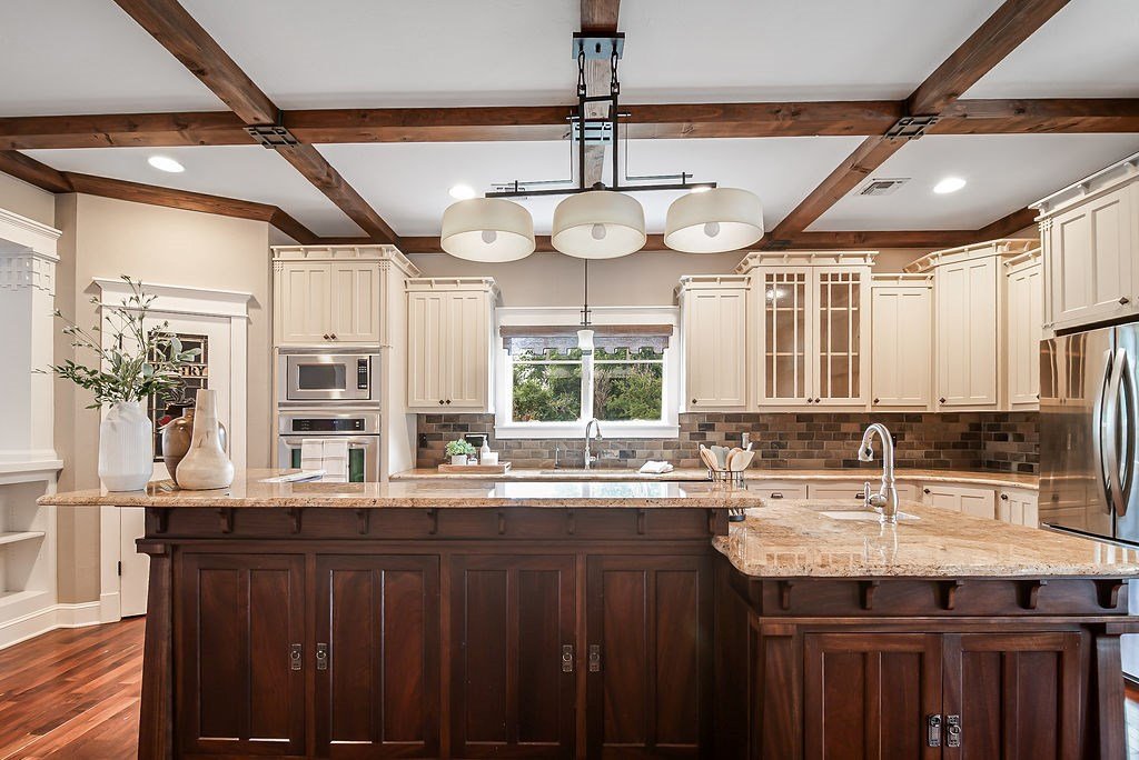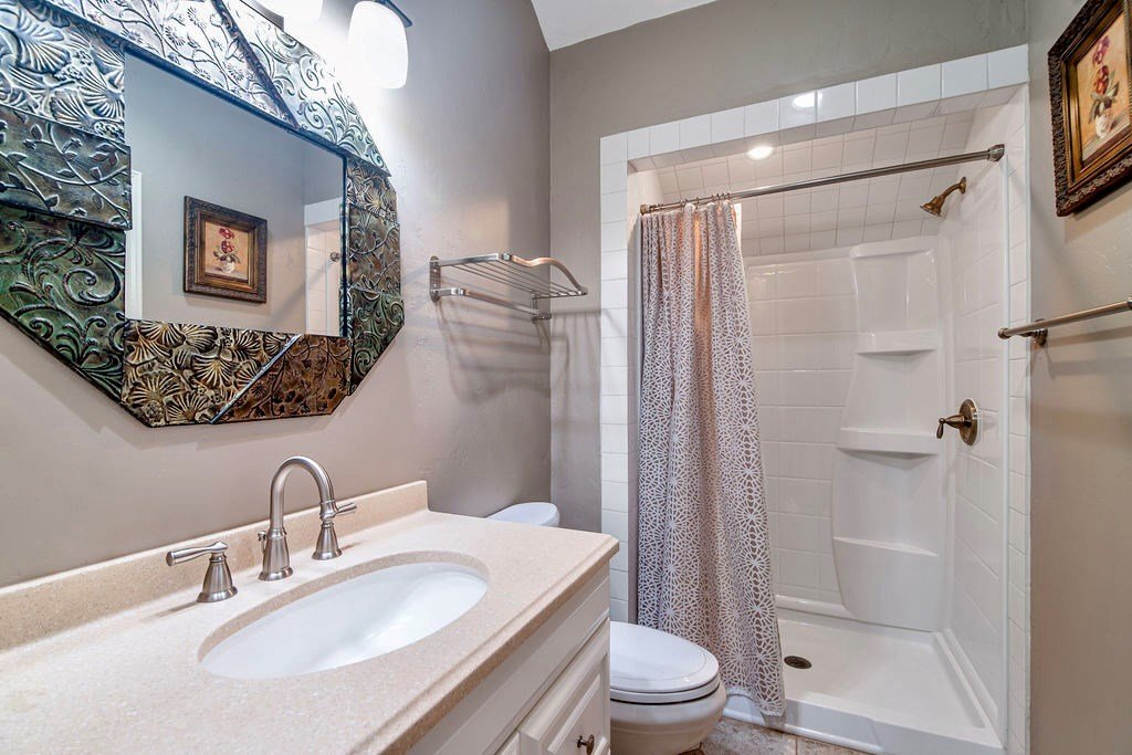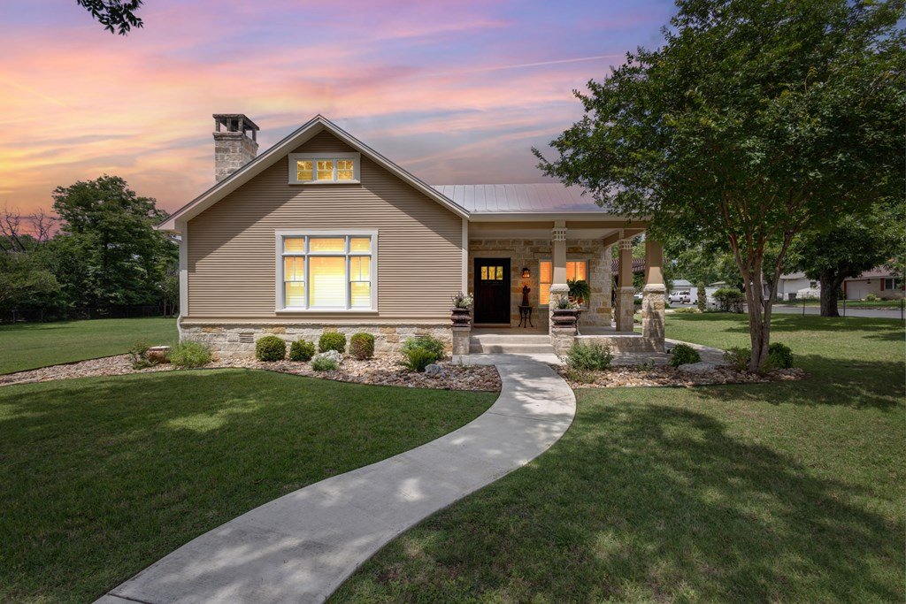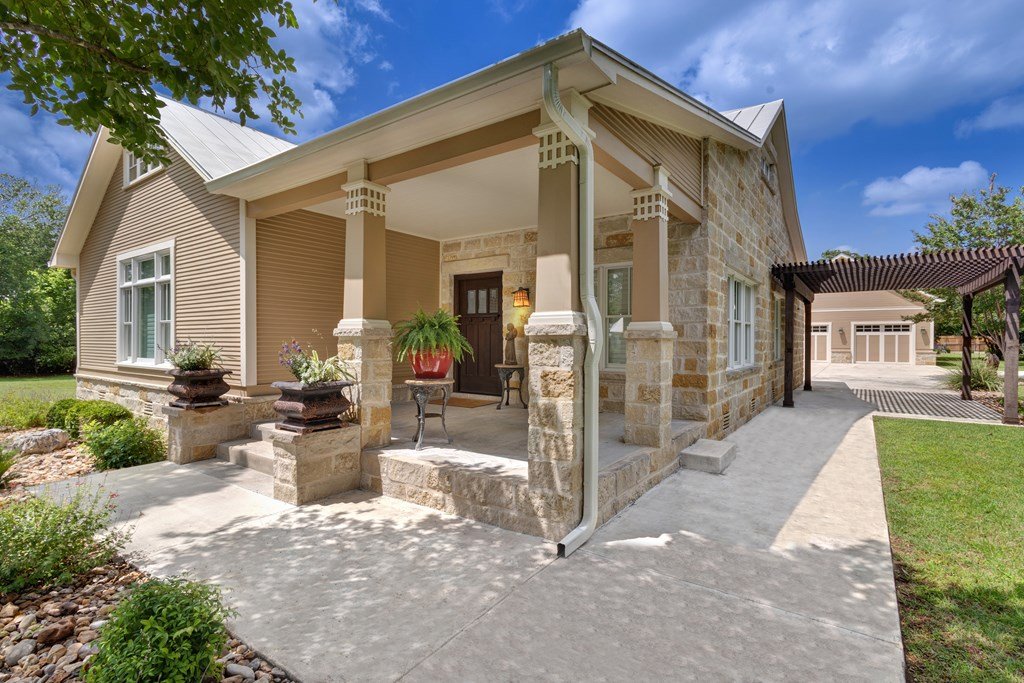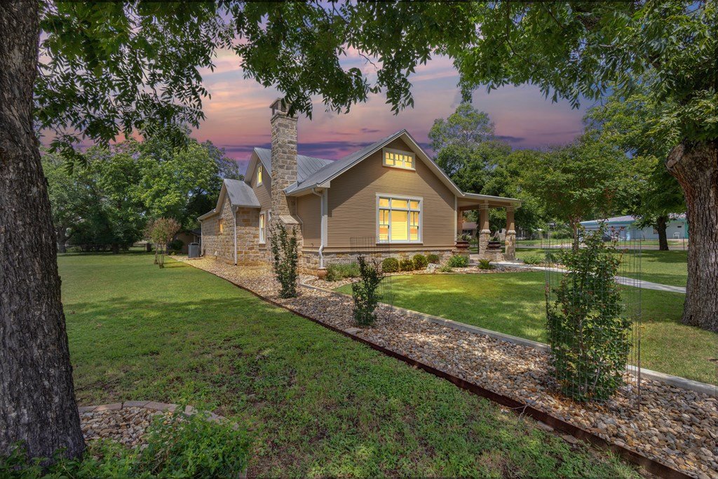 DUAL LOT OPPORTUNITY (308 & 310 East Centre Street, Fredericksburg). This distinctive property and residence, constructed in 1955 and recently transformed, occupies a prominent corner position on Centre and Washington Street on the east side of Fredericksburg's vibrant downtown. It is offered with an adjacent, sizable city lot (0.41 acres), which significantly broadens the horizon for the new owner; presenting an opportunity to expand the home's footprint (plans available), construct another dwelling, resell separately, or to preserve a buffer of privacy and open space for recreational areas. The property is situated in an established, highly sought-after neighborhood with the combined 0.82 acres providing beautifully manicured grounds, replete with lush, mature trees that add elegance to the attractiveness of the home. Upon entry, the impressive sense of scale immediately captures attention along with the meticulously considered design details and finishes; from the carved architectural wood pilasters to the engineered wood joists and plantation shutters. The downstairs floor plan is open concept with mesquite wood floors throughout and a grand wood-burning fireplace that references the entry hall, vast living room space, dining area, and gourmet kitchen. The kitchen has a substantial island for casual gathering and comfortable dining, ample counter space for food prep, generous cabinets, a dedicated pantry, and a large window to the outdoors. On the main level of the house is the primary en-suite bedroom offering a walk-in closet and a sumptuously equipped and comprehensively outfitted bathroom. The 2nd story is a flexible space that could be a home office for more than one person, a children's/grandchildren's haven, or a personal workout area. There is a separate spacious laundry room with hanging area, counter space for folding, cabinets for storing and a convenient sink. The exterior living is equally considered, with an expansive patio for al fresco dining and relaxation. Above the 2-car garage is a separate 1-bedroom, 1-bathroom apartment with a kitchenette for guests, extended family, or could be short-term rental prospects. This is an exceptional opportunity to tailor a significant holding to perfectly suit personal aspirations; an idyllic home or secondary home, a multi-generational compound or simply a chance to secure a valuable asset for the future in a sought-after locale. SEE VIDEO TOUR and FLOOR PLAN.