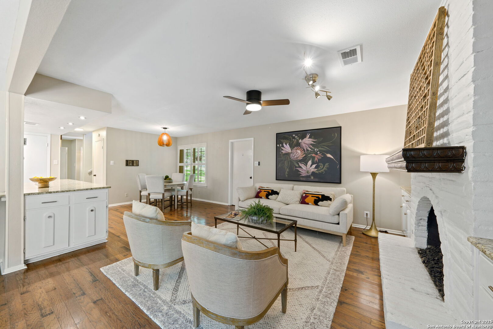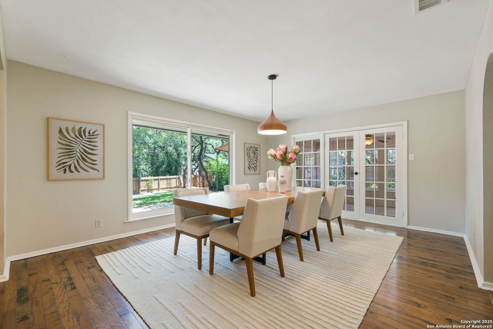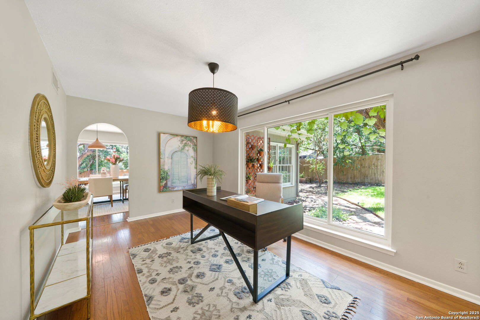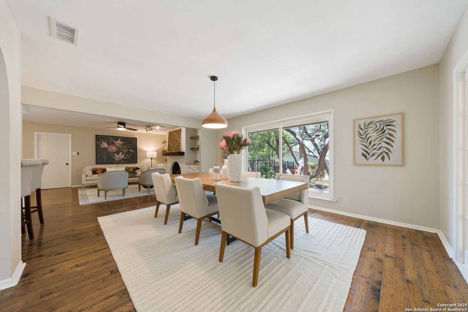 *** OPEN HOUSE SUNDAY JULY 27 FROM 1-3 PM***GREAT PRICE - JUST REDUCED $25k!!! Look no further for your Hollywood Park beauty on almost half an acre with beautiful, mature trees, top notch landscaping and multiple backyard and patio areas (East and South facing!) to enjoy! This convenient, North Central gem is located inside LOOP 1604 in a natural, tree-filled setting that defines the neighborhood's enduring appeal. As you enter, notice the abundant natural light through the fixed glass window looking over part of the amazing back yard. This exceptional floor plan is perfect for entertaining as it flows circularly through two living and dining areas around the kitchen as the heart of the home. Be pleasantly surprised to also find a third living space - a delightful Florida room with French doors. The center of the home is the kitchen and this one is perfectly situated looking out over the family room with gas fireplace and great built-ins. The primary suite is spacious with an updated primary bath. Three other generous bedrooms are upstairs with an updated bathroom. The large utility room is roomy with space for extra fridge and lots of storage. The side-entry swing garage has a workshop area and there is plenty of driveway space to park multiple vehicles and for kids to run and play. Marvel at the beautiful backyard settings with a large patio area, covered patio, over 20+ mature trees, abundant landscaping, storage shed, dog/chicken area and shaded areas for relaxing and enjoying. Roof 2020, HVAC 2024, water softener and heater (2019). Hollywood Park offers an incredible lifestyle with a $5 million resort-style facility featuring a clubhouse, covered pavilion with grills, three pools, a splash area, a playground, two tennis courts, a full-size basketball court, and a sand volleyball court. The neighborhood hosts over 20 community events throughout the year, including Santa personally delivering gifts to homes, a Fourth of July parade, Halloween festivities, Easter celebrations, Cookies with Santa, back-to-school and end-of-the-year swim parties, and so much more. Hollywood Park police force patrol provides safety and security. Hurry over to see this charmer!