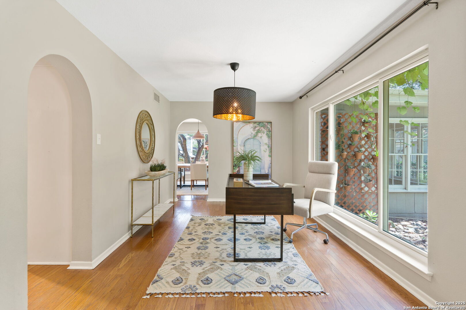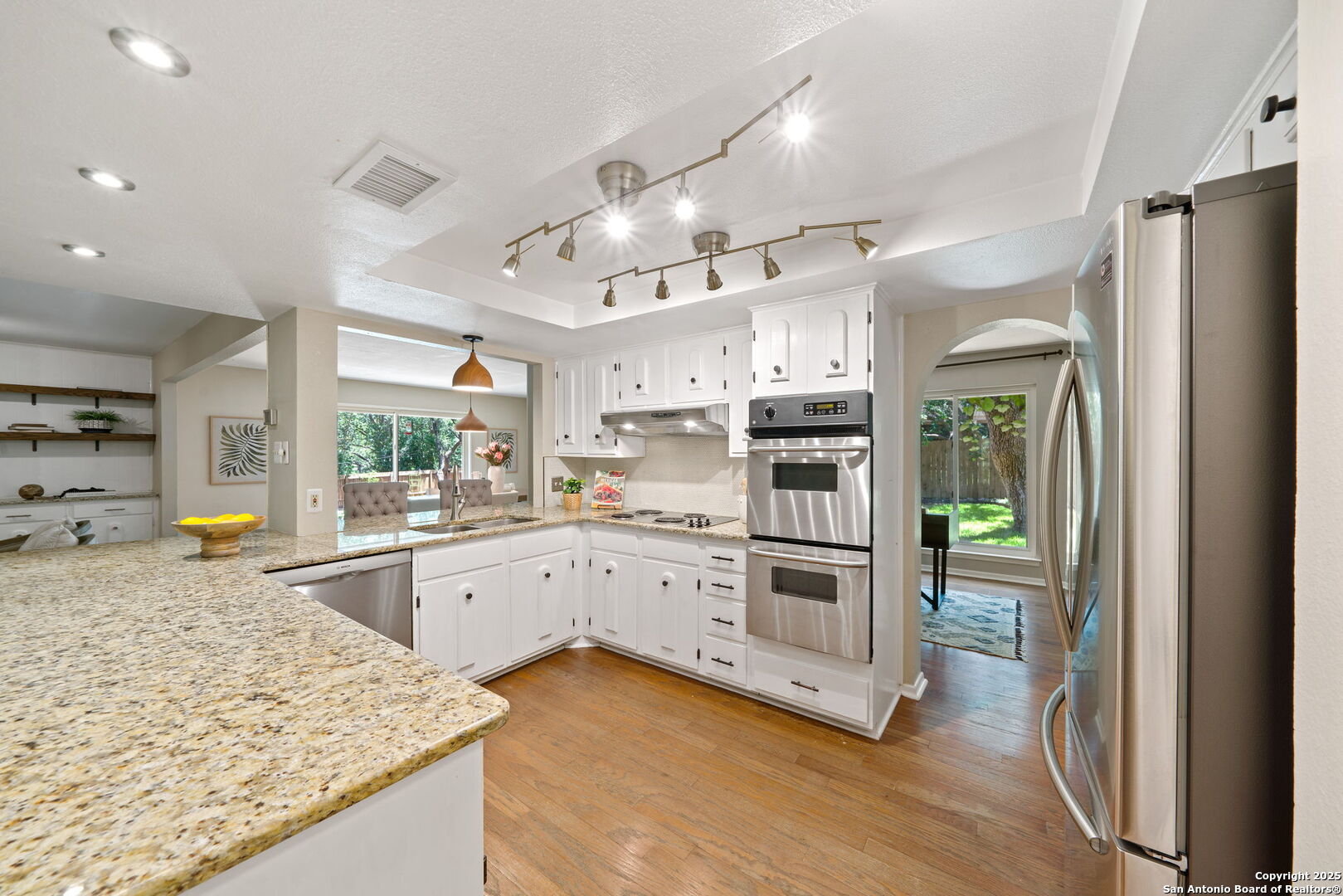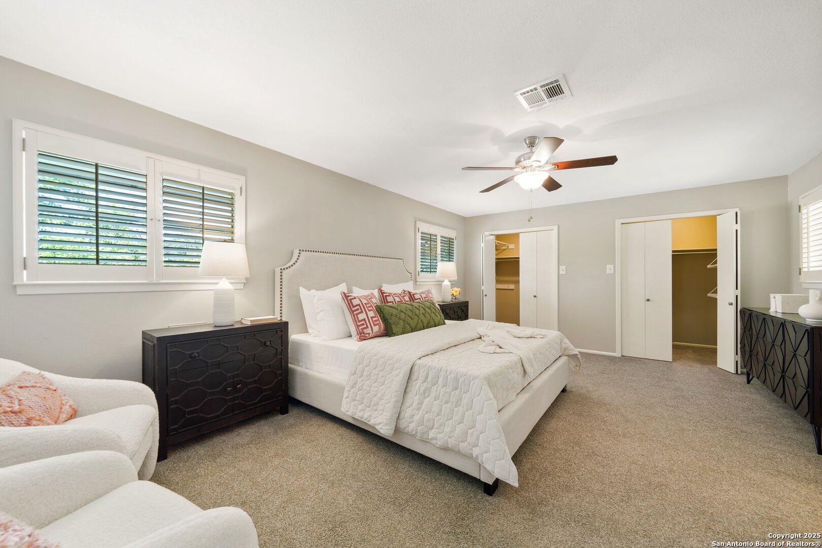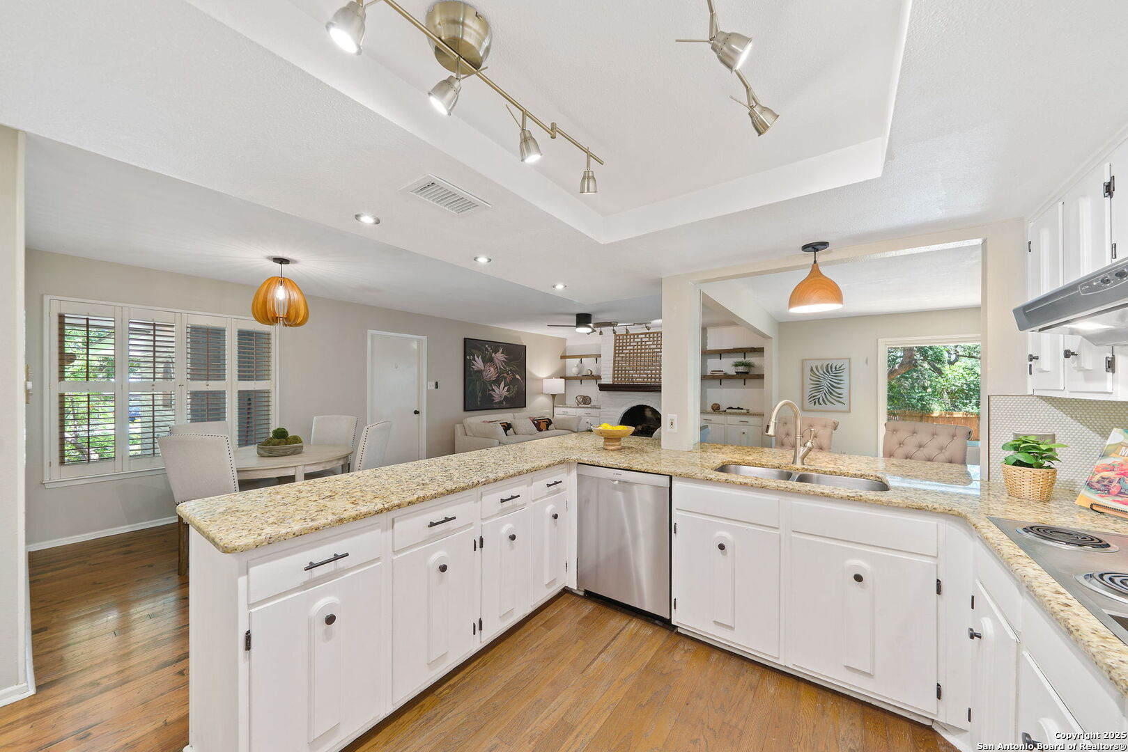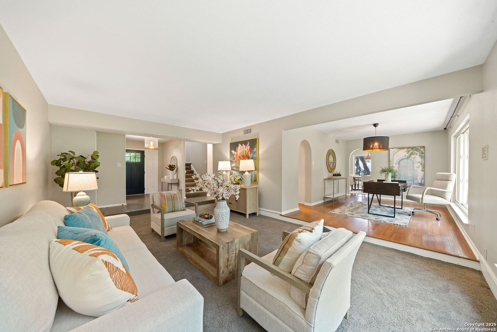 *** OPEN HOUSE SUNDAY JULY 27 FROM 1-3 PM***GREAT PRICE - JUST REDUCED $25k!!! Look no further for your Hollywood Park beauty on almost half an acre with beautiful, mature trees, top notch landscaping and multiple backyard and patio areas (East and South facing!) to enjoy! This convenient, North Central gem is located inside LOOP 1604 in a natural, tree-filled setting that defines the neighborhood's enduring appeal. As you enter, notice the abundant natural light through the fixed glass window looking over part of the amazing back yard. This exceptional floor plan is perfect for entertaining as it flows circularly through two living and dining areas around the kitchen as the heart of the home. Be pleasantly surprised to also find a third living space - a delightful Florida room with French doors. The center of the home is the kitchen and this one is perfectly situated looking out over the family room with gas fireplace and great built-ins. The primary suite is spacious with an updated primary bath. Three other generous bedrooms are upstairs with an updated bathroom. The large utility room is roomy with space for extra fridge and lots of storage. The side-entry swing garage has a workshop area and there is plenty of driveway space to park multiple vehicles and for kids to run and play. Marvel at the beautiful backyard settings with a large patio area, covered patio, over 20+ mature trees, abundant landscaping, storage shed, dog/chicken area and shaded areas for relaxing and enjoying. Roof 2020, HVAC 2024, water softener and heater (2019). Hollywood Park offers an incredible lifestyle with a $5 million resort-style facility featuring a clubhouse, covered pavilion with grills, three pools, a splash area, a playground, two tennis courts, a full-size basketball court, and a sand volleyball court. The neighborhood hosts over 20 community events throughout the year, including Santa personally delivering gifts to homes, a Fourth of July parade, Halloween festivities, Easter celebrations, Cookies with Santa, back-to-school and end-of-the-year swim parties, and so much more. Hollywood Park police force patrol provides safety and security. Hurry over to see this charmer!