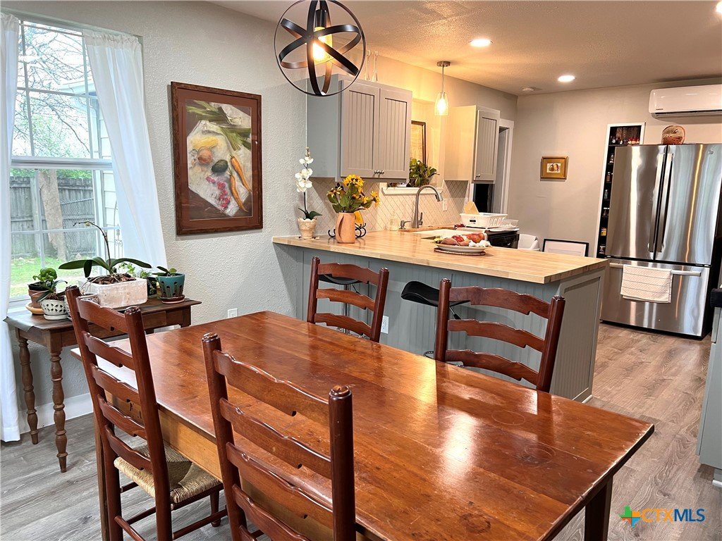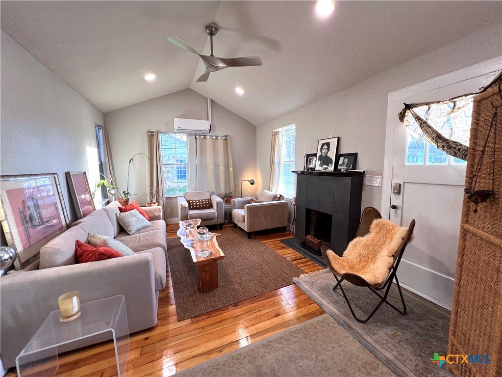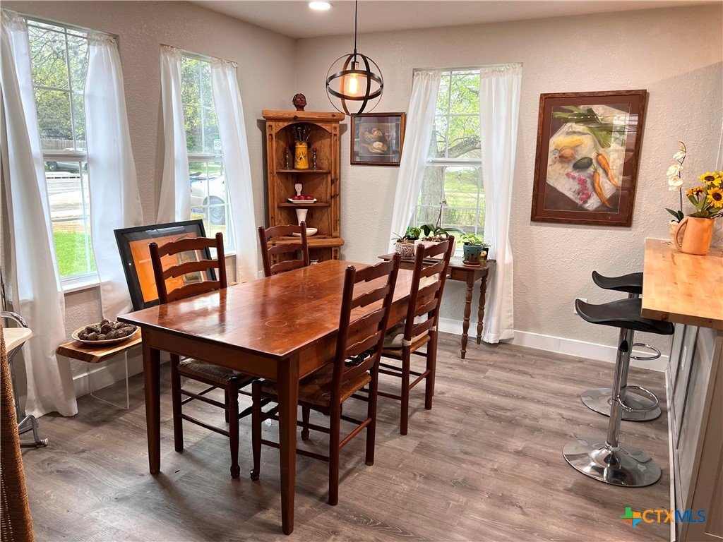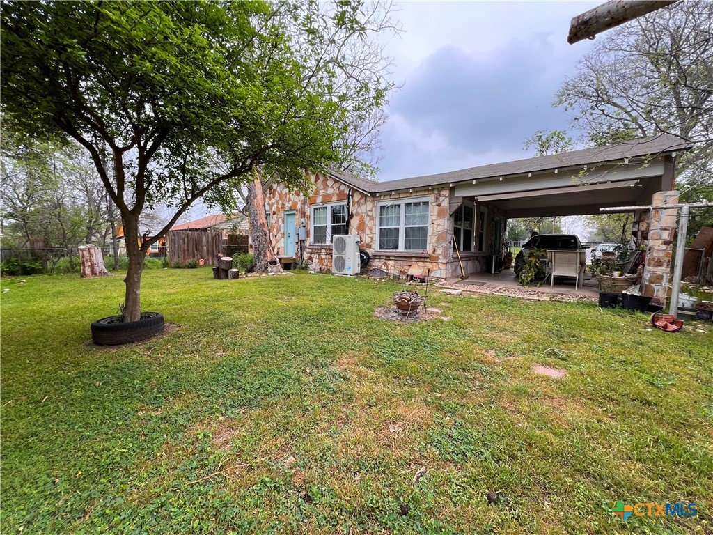 NO HOA and zoned neighborhood commercial! Charm and Location bundled into this recently renovated cozy stone cottage. Two bedrooms, one bath with the sunroom/office that can be used as third bedroom with closet/utility/storage room attached. Complete remodel from studs out; all new electric, plumbing, roof, windows, all interior walls and attic blown in insulation plus spray foam insulation on exterior walls. Vaulted living room ceiling with fireplace (candles only no fires) for cozy atmosphere. Designer bathroom, barn door, basketweave marble tile floors, gourmet kitchen with custom crafted soft close cabinets, farm house sink, Arabesque ceramic backsplash tile, stainless steel fridge included, energy efficient tankless water heater and mini split HVAC units, ceiling fans in bedrooms and living. Carport can also be used as outside patio living space. Structure in backyard can be renovated to another living space. Mature citrus tree, landscaping. This jewel sits on a quarter acre. One block to the Guadalupe River kayaking, Power Plant restaurant, Wave Pool, Golf and Starke Park for recreation and pecan gathering in the season. Centrally located minutes to blossoming downtown Seguin’s restaurants and craft beer establishments, HEB 7 minute drive. So much potential for this property, schedule a showing now before someone else snatches this up.
