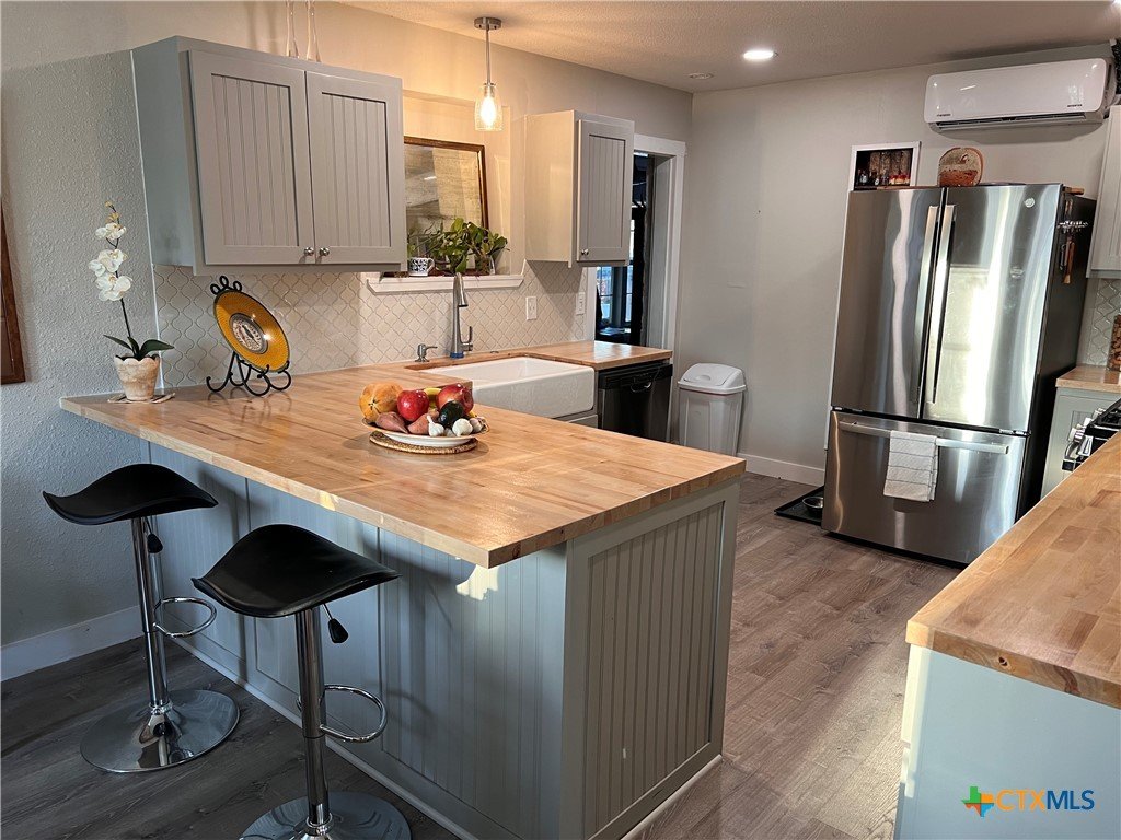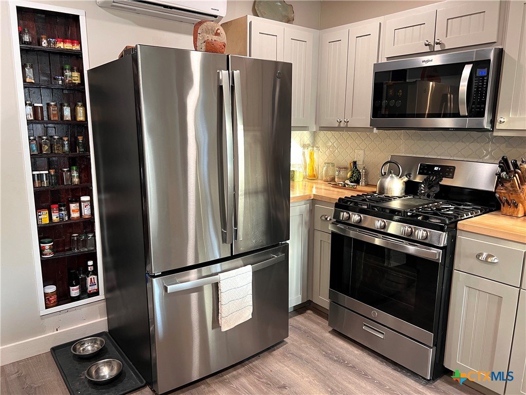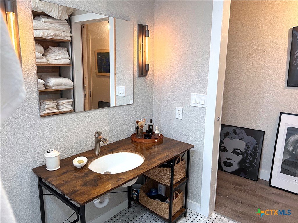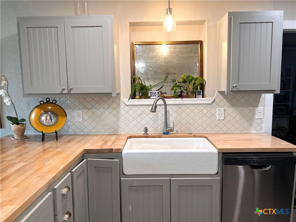NO HOA and zoned neighborhood commercial! Charm and Location bundled into this recently renovated cozy stone cottage. Two bedrooms, one bath with the sunroom/office that can be used as third bedroom with closet/utility/storage room attached. Complete remodel from studs out; all new electric, plumbing, roof, windows, all interior walls and attic blown in insulation plus spray foam insulation on exterior walls. Vaulted living room ceiling with fireplace (candles only no fires) for cozy atmosphere. Designer bathroom, barn door, basketweave marble tile floors, gourmet kitchen with custom crafted soft close cabinets, farm house sink, Arabesque ceramic backsplash tile, stainless steel fridge included, energy efficient tankless water heater and mini split HVAC units, ceiling fans in bedrooms and living. Carport can also be used as outside patio living space. Structure in backyard can be renovated to another living space. Mature citrus tree, landscaping. This jewel sits on a quarter acre. One block to the Guadalupe River kayaking, Power Plant restaurant, Wave Pool, Golf and Starke Park for recreation and pecan gathering in the season. Centrally located minutes to blossoming downtown Seguin’s restaurants and craft beer establishments, HEB 7 minute drive. So much potential for this property, schedule a showing now before someone else snatches this up.