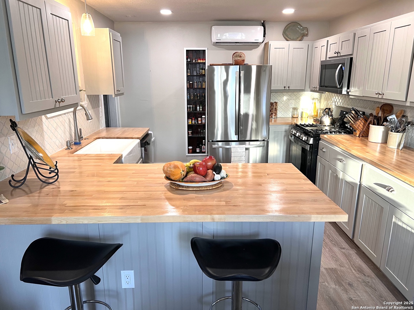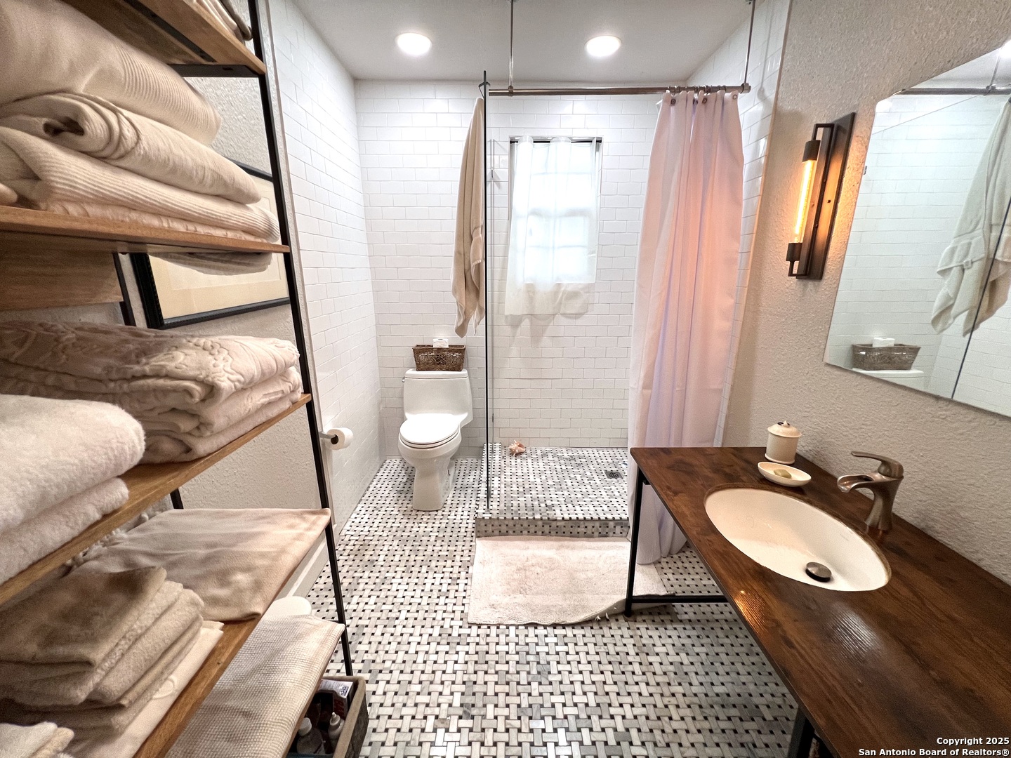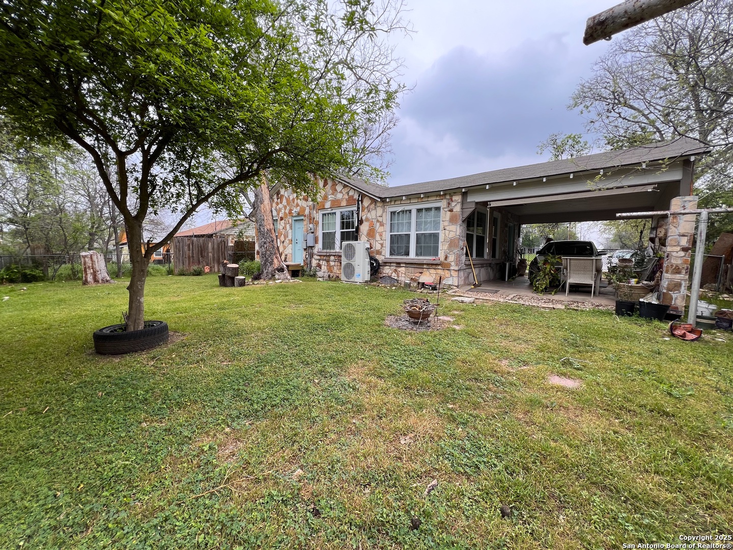 NO HOA and zoned neighborhood commercial! Charm and Location bundled into this recently renovated cozy stone cottage. Two bedrooms, one bath with the sunroom/office that can be used as third bedroom with closet/utility/storage room attached. Complete remodel from studs out; all new electric, plumbing, roof, windows, all interior walls and attic blown in insulation plus spray foam insulation on exterior walls. Vaulted living room ceiling with fireplace (candles only no fires) for cozy atmosphere. Designer bathroom, barn door, basketweave marble tile floors, gourmet kitchen with custom crafted soft close cabinets, farm house sink, Arabesque ceramic backsplash tile, stainless steel fridge included, energy efficient tankless water heater and mini split HVAC units, ceiling fans in bedrooms and living. Carport can also be used as outside patio living space. Structure in backyard can be renovated. Some landscaping. This jewel sits on a quarter acre. One block to the Guadalupe River kayaking, Power Plant restaurant, Wave Pool, Golf and Starke Park for recreation and pecan gathering in the season. Centrally located minutes to blossoming downtown Seguin's restaurants and craft beer establishments, HEB 7 minute drive. So much potential for this property, schedule a showing now before someone else snatches this up.