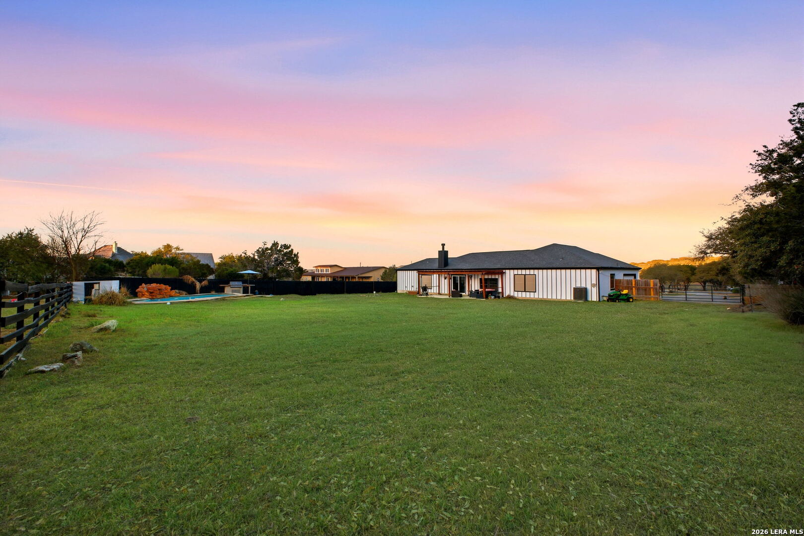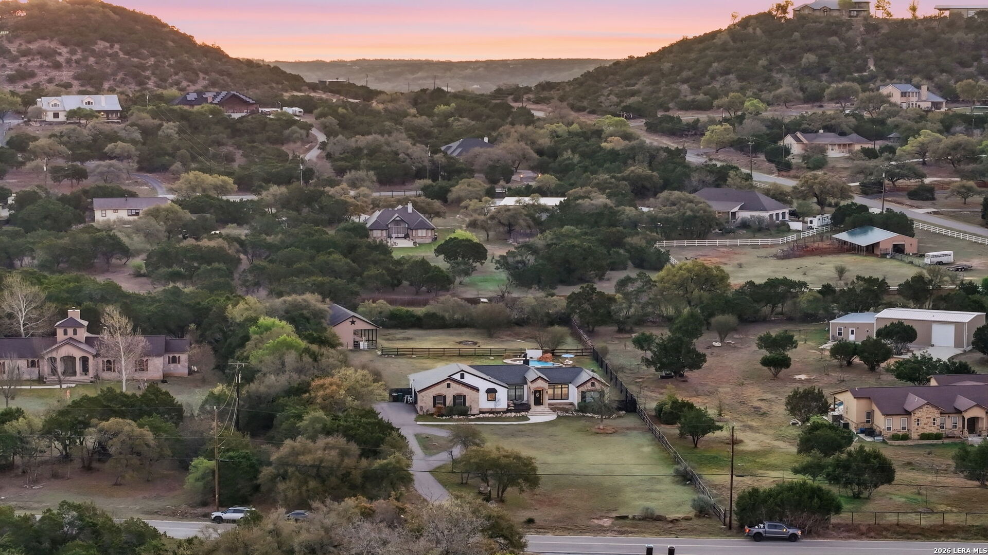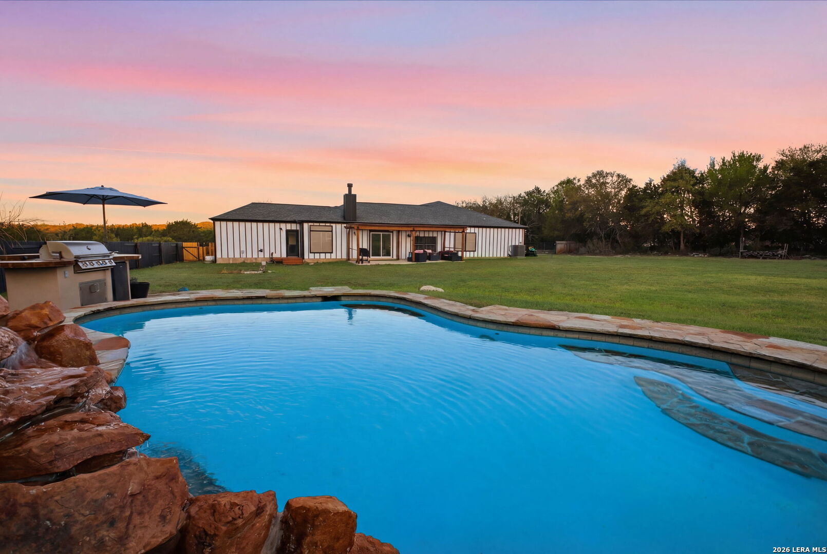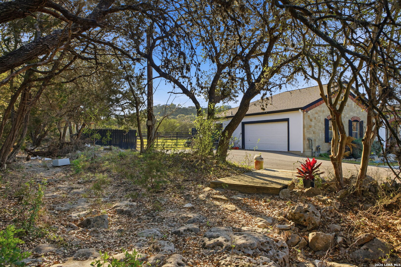 Welcome to 30870 Bridlegate Drive in the highly sought-after Rim Rock Ranch community of Bulverde, Texas-where refined Hill Country living meets true ranch-style freedom. This exceptional single-story home sits on expansive acreage and offers the rare opportunity to enjoy horse-friendly living with existing horse stalls and a dedicated tack room already in place, making it turnkey for equestrian enthusiasts or anyone seeking space, privacy, and lifestyle flexibility. From the moment you arrive, you're greeted by breathtaking Hill Country views, mature trees, and a peaceful setting that immediately sets this property apart. The home itself features a thoughtfully designed one-story layout with timeless finishes, natural light throughout, and seamless indoor-outdoor living. Recent updates provide peace of mind and modern appeal, including a roof that is less than three years old, an AC system approximately four years old, new flooring, and a brand-new dishwasher. A newly added circular driveway enhances both convenience and curb appeal, while a new fence along the back of the property adds function and privacy. Step into your backyard oasis where an in-ground pool invites you to relax, entertain, and unwind under Texas sunsets. The wide-open land provides endless possibilities-whether you're riding, expanding your ranch setup, or simply enjoying the privacy and serenity of your surroundings. One of the most unique and calming features of this property is the seasonal creek that runs along the land, creating a tranquil natural backdrop and enhancing the overall sense of escape and connection to nature. Rim Rock Ranch is known for its rare combination of space and accessibility, allowing residents to fully embrace a ranch lifestyle while remaining close to modern conveniences. Located just minutes from Highway 281, the property offers quick and easy access into San Antonio, making commuting, dining, shopping, and entertainment effortless. Nearby attractions include local wineries, golf courses, Guadalupe River recreation, and charming Hill Country destinations such as Blanco and Spring Branch, along with the conveniences of the Stone Oak area and highly regarded Comal ISD schools. 30870 Bridlegate Drive is more than a home-it's a lifestyle. It's a rare opportunity to own a piece of Texas where you can bring your horses, enjoy wide open spaces, relax by your pool, and still be just minutes from the city. Schedule your private showing today and experience the best of Bulverde living.