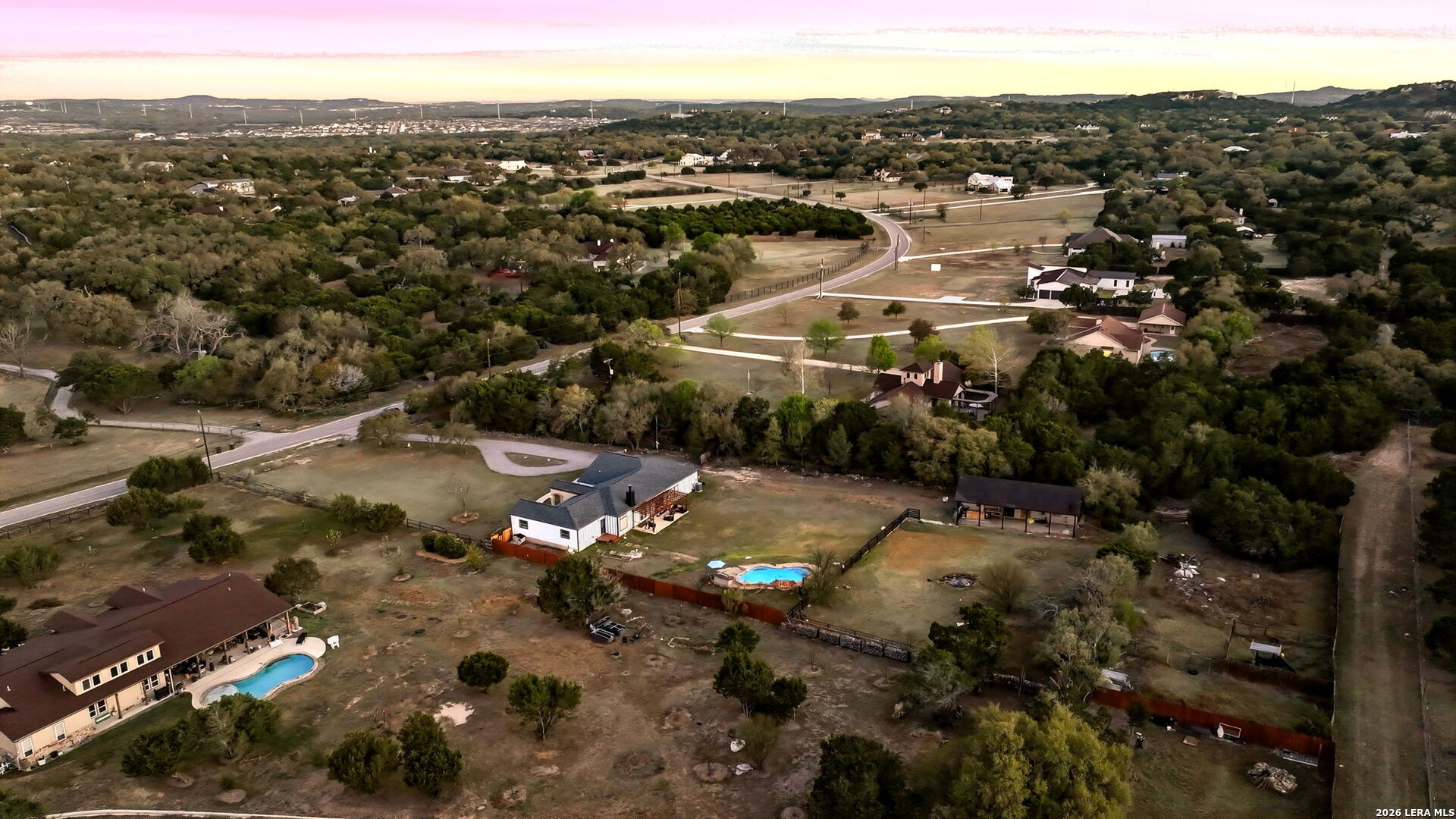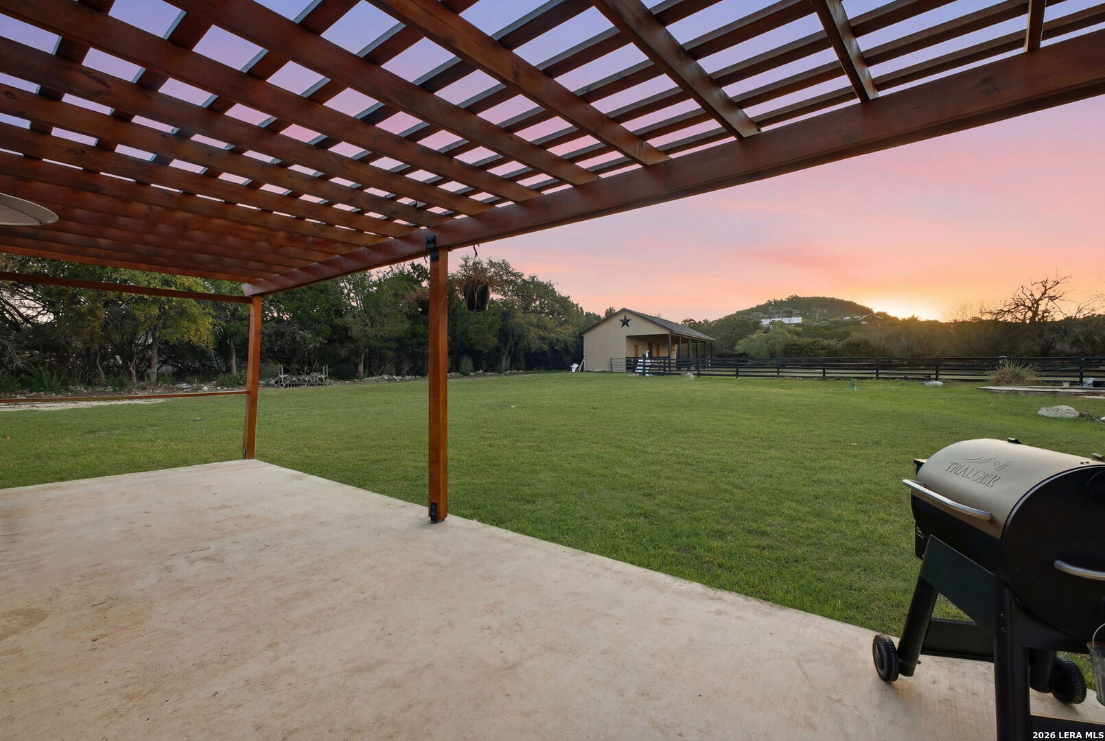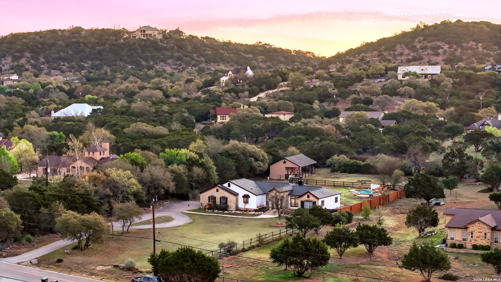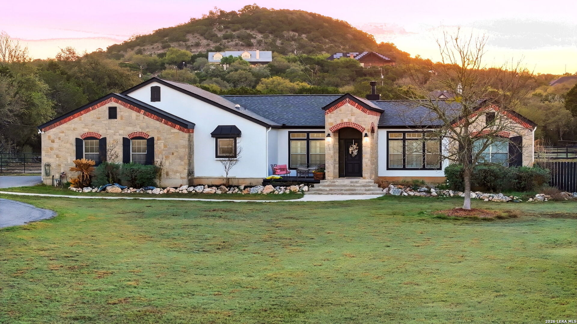 Welcome to 30870 Bridlegate Drive in the highly sought-after Rim Rock Ranch community of Bulverde, Texas-where refined Hill Country living meets true ranch-style freedom. This exceptional single-story home sits on expansive acreage and offers the rare opportunity to enjoy horse-friendly living with existing horse stalls and a dedicated tack room already in place, making it turnkey for equestrian enthusiasts or anyone seeking space, privacy, and lifestyle flexibility. From the moment you arrive, you're greeted by breathtaking Hill Country views, mature trees, and a peaceful setting that immediately sets this property apart. The home itself features a thoughtfully designed one-story layout with timeless finishes, natural light throughout, and seamless indoor-outdoor living. Recent updates provide peace of mind and modern appeal, including a roof that is less than three years old, an AC system approximately four years old, new flooring, and a brand-new dishwasher. A newly added circular driveway enhances both convenience and curb appeal, while a new fence along the back of the property adds function and privacy. Step into your backyard oasis where an in-ground pool invites you to relax, entertain, and unwind under Texas sunsets. The wide-open land provides endless possibilities-whether you're riding, expanding your ranch setup, or simply enjoying the privacy and serenity of your surroundings. One of the most unique and calming features of this property is the seasonal creek that runs along the land, creating a tranquil natural backdrop and enhancing the overall sense of escape and connection to nature. Rim Rock Ranch is known for its rare combination of space and accessibility, allowing residents to fully embrace a ranch lifestyle while remaining close to modern conveniences. Located just minutes from Highway 281, the property offers quick and easy access into San Antonio, making commuting, dining, shopping, and entertainment effortless. Nearby attractions include local wineries, golf courses, Guadalupe River recreation, and charming Hill Country destinations such as Blanco and Spring Branch, along with the conveniences of the Stone Oak area and highly regarded Comal ISD schools. 30870 Bridlegate Drive is more than a home-it's a lifestyle. It's a rare opportunity to own a piece of Texas where you can bring your horses, enjoy wide open spaces, relax by your pool, and still be just minutes from the city. Schedule your private showing today and experience the best of Bulverde living.