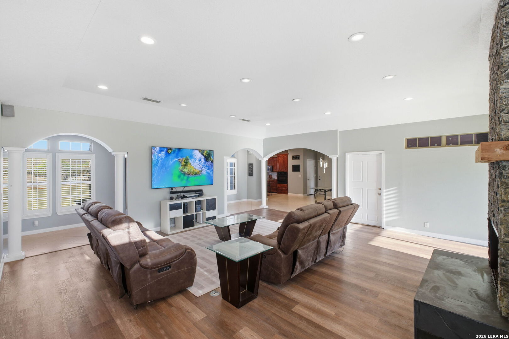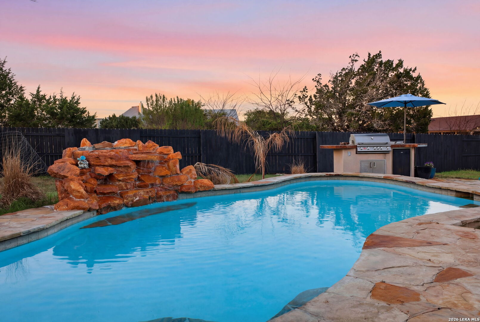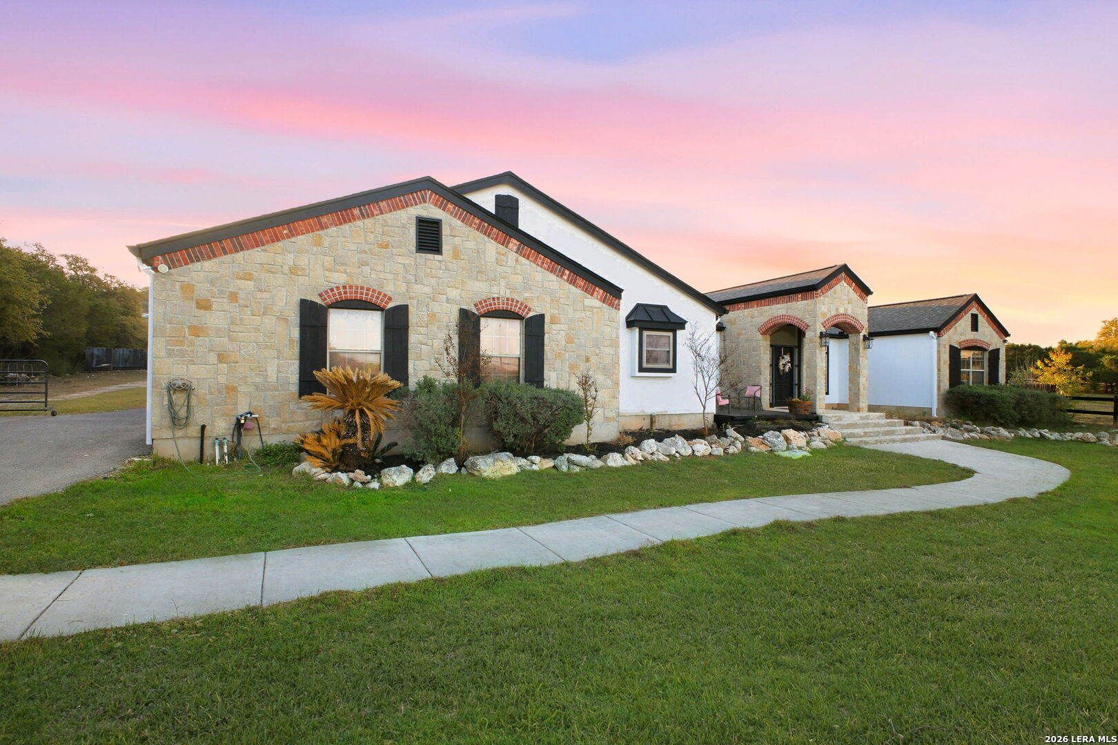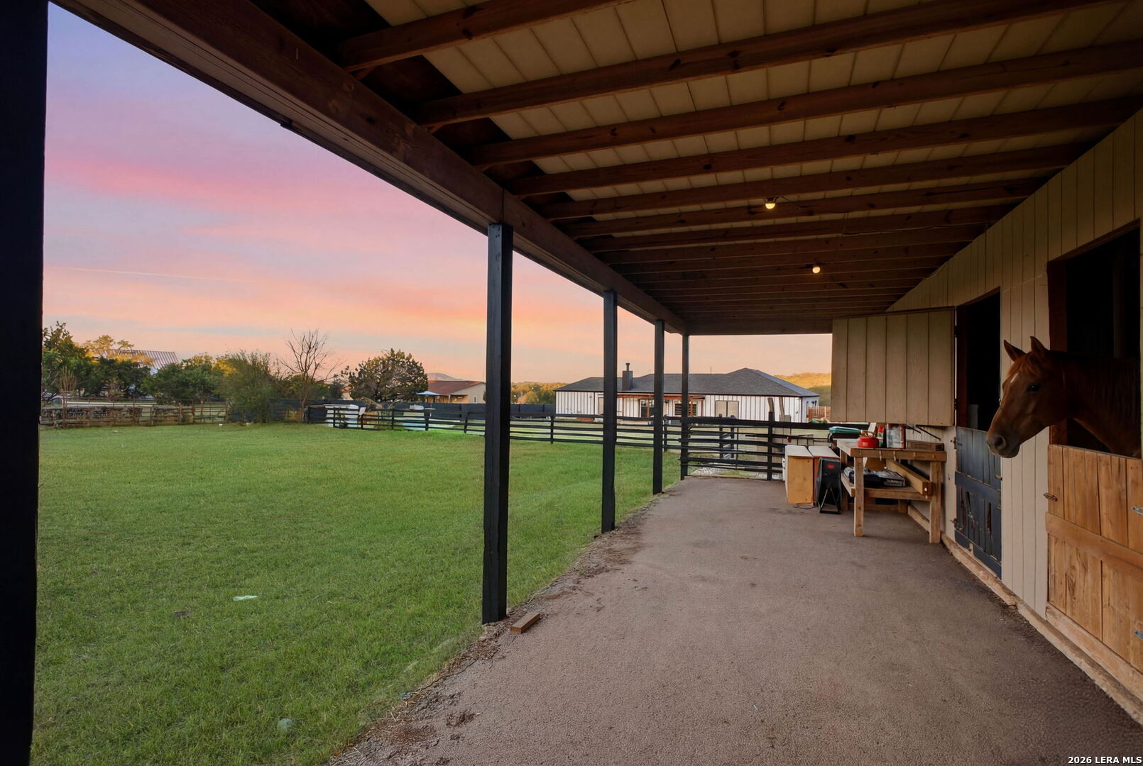 Welcome to 30870 Bridlegate Drive in the highly sought-after Rim Rock Ranch community of Bulverde, Texas-where refined Hill Country living meets true ranch-style freedom. This exceptional single-story home sits on expansive acreage and offers the rare opportunity to enjoy horse-friendly living with existing horse stalls and a dedicated tack room already in place, making it turnkey for equestrian enthusiasts or anyone seeking space, privacy, and lifestyle flexibility. From the moment you arrive, you're greeted by breathtaking Hill Country views, mature trees, and a peaceful setting that immediately sets this property apart. The home itself features a thoughtfully designed one-story layout with timeless finishes, natural light throughout, and seamless indoor-outdoor living. Recent updates provide peace of mind and modern appeal, including a roof that is less than three years old, an AC system approximately four years old, new flooring, and a brand-new dishwasher. A newly added circular driveway enhances both convenience and curb appeal, while a new fence along the back of the property adds function and privacy. Step into your backyard oasis where an in-ground pool invites you to relax, entertain, and unwind under Texas sunsets. The wide-open land provides endless possibilities-whether you're riding, expanding your ranch setup, or simply enjoying the privacy and serenity of your surroundings. One of the most unique and calming features of this property is the seasonal creek that runs along the land, creating a tranquil natural backdrop and enhancing the overall sense of escape and connection to nature. Rim Rock Ranch is known for its rare combination of space and accessibility, allowing residents to fully embrace a ranch lifestyle while remaining close to modern conveniences. Located just minutes from Highway 281, the property offers quick and easy access into San Antonio, making commuting, dining, shopping, and entertainment effortless. Nearby attractions include local wineries, golf courses, Guadalupe River recreation, and charming Hill Country destinations such as Blanco and Spring Branch, along with the conveniences of the Stone Oak area and highly regarded Comal ISD schools. 30870 Bridlegate Drive is more than a home-it's a lifestyle. It's a rare opportunity to own a piece of Texas where you can bring your horses, enjoy wide open spaces, relax by your pool, and still be just minutes from the city. Schedule your private showing today and experience the best of Bulverde living.