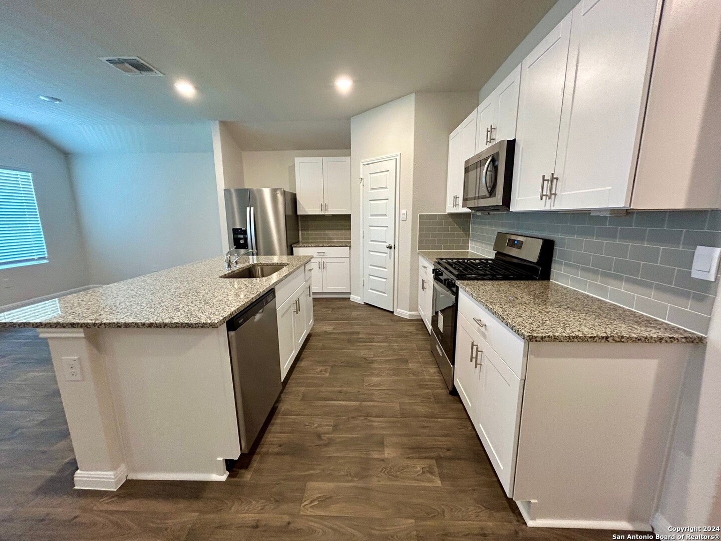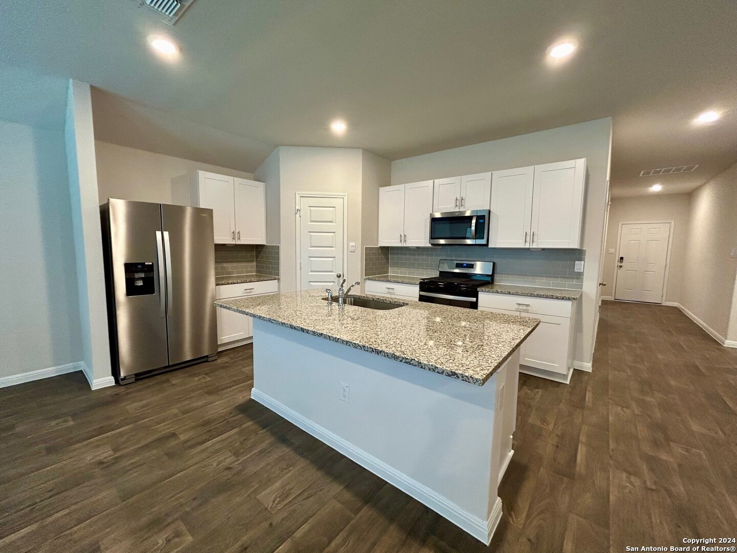 This single-story gem is a spacious 1,796 square feet and boasts 4 bedrooms and 2 baths, ensuring everyone has their own cozy space. The long foyer leads you into a stunning kitchen with granite countertops, 36" cabinets, decorative tile backsplash, stainless steel appliances, and a walk-in pantry. The kitchen overlooks the inviting living and dining area, making entertaining a breeze. Retreat to the main bedroom, bedroom 1, complete with a huge walk-in closet and a luxurious shower. You'll love where you l
