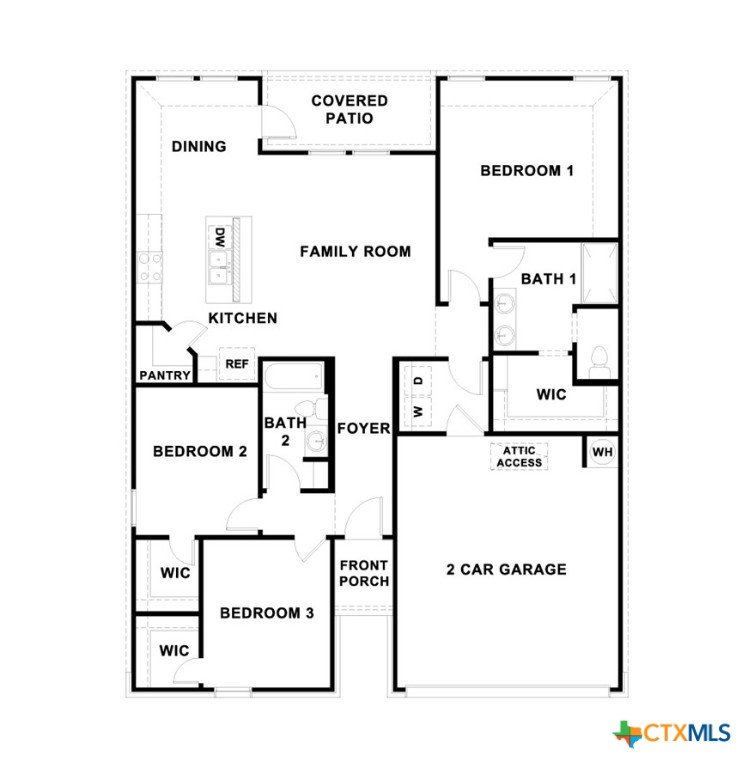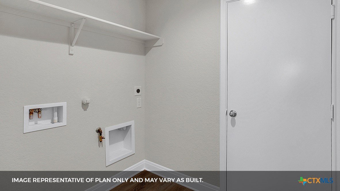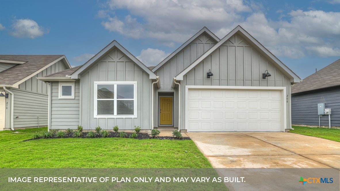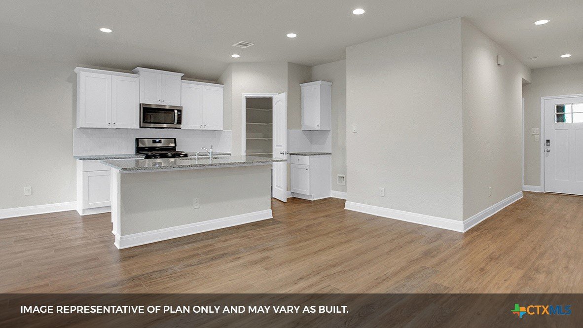 APRIL/MAY ESTIMATED COMPLETION DATE. The Bellvue is one of our one-story floorplans featured at our Trace community in San Marcos, Texas. This home is perfect for smaller families or homeowners looking to downsize. Featuring 3 bedrooms and 2 bathrooms, this home also includes a 2-car garage all within 1,407 square feet of living space. Stepping inside the home from the covered front porch, you will find a short hallway that leads to the secondary bedrooms and bathroom. Bathroom 2 includes a tub/shower combination, and both bedrooms include a walk-in closet with shelving. Whether you use these rooms for an office, child’s room or guest room, there is amble space for the entire family. The living area is an open concept design, so you are always close to the action in the family room, kitchen or dining area. The kitchen features an island with an undermount sink facing the family room, stainless steel appliances, quartz countertops, corner pantry closet and 36” upper cabinets. Enjoy the natural light with four rear windows looking out to the backyard. The primary bedroom is off the family room and includes its own attached bathroom, making the start of your day a seamless step from sleep to your morning routine. Enjoy the 5’ walk in shower, vanity and separate door to the toilet for privacy. A walk-in closet with generous shelving is connected to the bathroom. The utility room is outside the primary bedroom, allowing for the laundry chores to be completed with ease The Bellvue includes vinyl flooring throughout the common areas of the home, and carpet in the bedrooms. All our new homes feature a covered back patio, full sod, an irrigation system in the front and back yard, and a 6’ privacy fence around the back yard. This home includes our America’s Smart Home base package, which includes the Amazon Echo Pop, Front Doorbell, Front Door Deadbolt Lock, Home Hub, Thermostat, and Deako® Smart Switches.