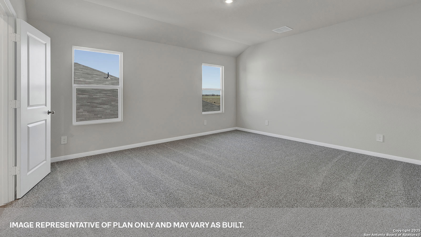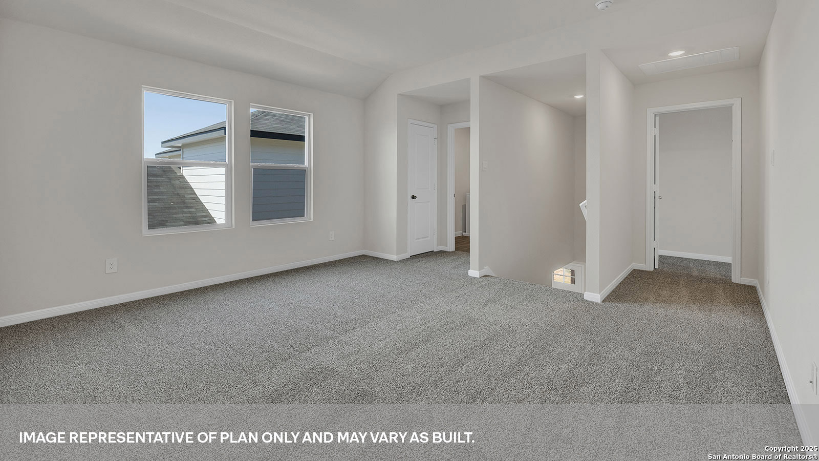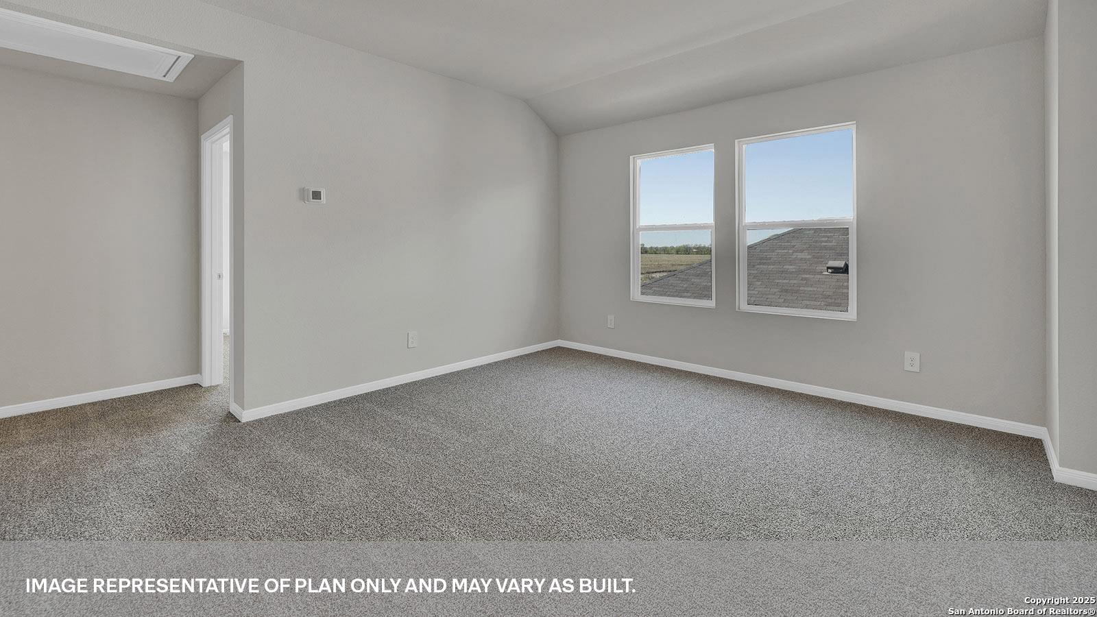 MOVE IN READY! EASY ACCESS TO I-35. The Nicole is one of our most popular floorplans available at Whisper South in San Marcos, Texas. This two-story home offers 4 bedrooms, 3 bathrooms, a gameroom, and 2 car garage all within 2,473 square feet of comfortable living space. Our homes in Whisper South feature three-sided masonry exteriors. Entering the home from the covered front porch, cross the foyer and find a short hallway to the downstairs secondary bedroom and a full bathroom. Passing the staircase, continue through the foyer to the heart of the home, the living area. The family room, dining area, and kitchen are open, making entertaining and everyday living a shareable experience for family and friends. The kitchen features an island with undermount sink, quartz countertops, a corner pantry closet, 36" upper cabinets, and stainless-steel appliances, including a gas range. Moving upstairs, you'll enter the gameroom, the center of the upstairs space. The oversized primary bedroom is tucked away from the gameroom. Stretch out and relax at the end of your day in this spacious and private ensuite. The primary bathroom features a walk-in shower, double vanity with marble counter tops, private toilet area with a door, and an enormous walk-in closet. This will be the closet of your dreams, spacious enough to add a dressing island or chaise lounge for a full luxurious experience. The additional upstairs bedrooms and bathroom are located opposite the primary bedroom. The bedrooms feature walk in closets with wood shelving. Both secondary bathrooms include a shower/tub combination. The utility room rounds out the upstairs space, making laundry chores a breeze. The Nicole includes vinyl flooring throughout the common areas of the home, and carpet in the bedrooms. All our new homes feature a covered back patio, full sod, irrigation system in the front and back yard, and a 6' privacy fence around the back yard. This home includes our America's Smart Home base package, which includes the Front Doorbell, Front Door Deadbolt Lock, Home Hub, Thermostat, and Deako Smart Switches