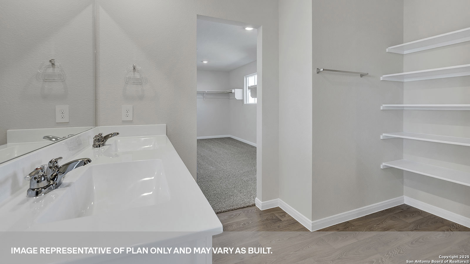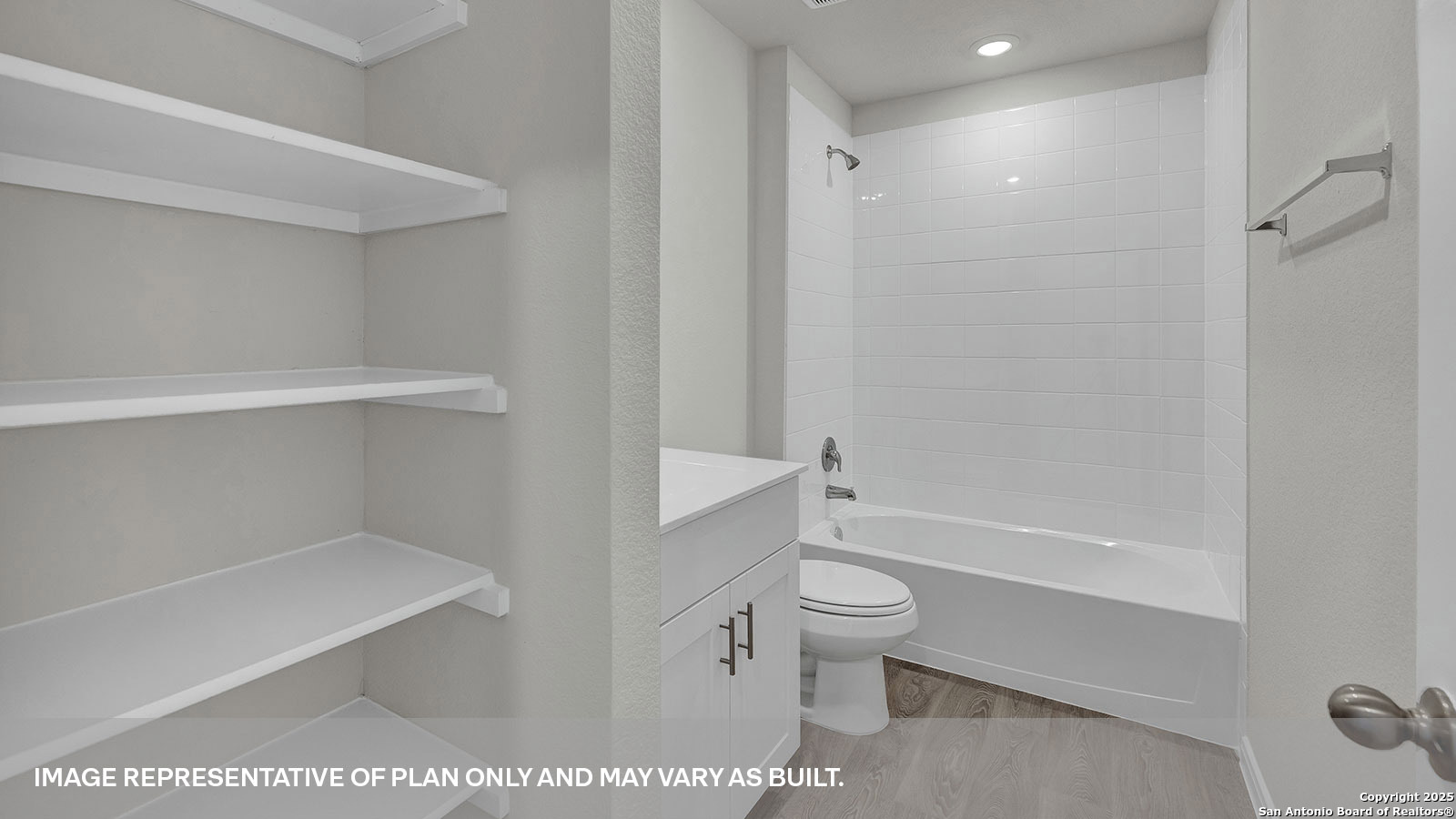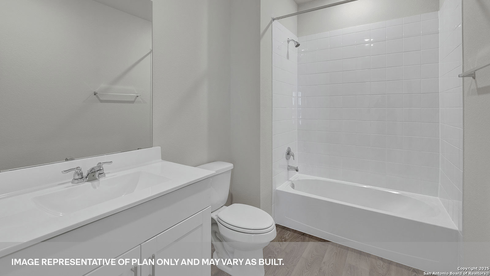 MOVE IN READY! EASY ACCESS TO I-35. The Nicole is one of our most popular floorplans available at Whisper South in San Marcos, Texas. This two-story home offers 4 bedrooms, 3 bathrooms, a gameroom, and 2 car garage all within 2,473 square feet of comfortable living space. Our homes in Whisper South feature three-sided masonry exteriors. Entering the home from the covered front porch, cross the foyer and find a short hallway to the downstairs secondary bedroom and a full bathroom. Passing the staircase, continue through the foyer to the heart of the home, the living area. The family room, dining area, and kitchen are open, making entertaining and everyday living a shareable experience for family and friends. The kitchen features an island with undermount sink, quartz countertops, a corner pantry closet, 36" upper cabinets, and stainless-steel appliances, including a gas range. Moving upstairs, you'll enter the gameroom, the center of the upstairs space. The oversized primary bedroom is tucked away from the gameroom. Stretch out and relax at the end of your day in this spacious and private ensuite. The primary bathroom features a walk-in shower, double vanity with marble counter tops, private toilet area with a door, and an enormous walk-in closet. This will be the closet of your dreams, spacious enough to add a dressing island or chaise lounge for a full luxurious experience. The additional upstairs bedrooms and bathroom are located opposite the primary bedroom. The bedrooms feature walk in closets with wood shelving. Both secondary bathrooms include a shower/tub combination. The utility room rounds out the upstairs space, making laundry chores a breeze. The Nicole includes vinyl flooring throughout the common areas of the home, and carpet in the bedrooms. All our new homes feature a covered back patio, full sod, irrigation system in the front and back yard, and a 6' privacy fence around the back yard. This home includes our America's Smart Home base package, which includes the Front Doorbell, Front Door Deadbolt Lock, Home Hub, Thermostat, and Deako Smart Switches