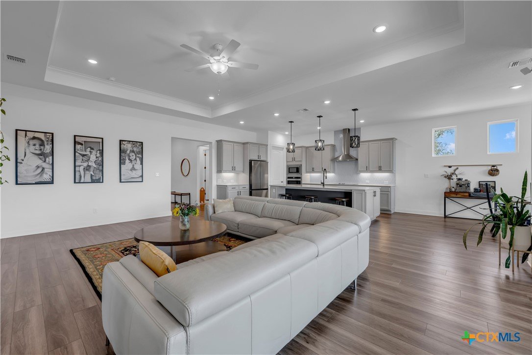 Welcome to an exceptional home in the Gregg Ranch community of Marble Falls! This thoughtfully designed residence offers 2,478 square feet of living space, featuring three bedrooms and three full bathrooms and an office - perfect for modern family living. The kitchen design is open to the living room and breakfast creates an inviting, open space. A large, cozy master suite with a dreamy modern bathroom. The bedrooms are separate from the master suite and offer another full bathroom between. Outdoor living is a breeze with a covered patio, ideal for morning coffee or evening relaxation. The private backyard, secured by a quality privacy fence - offers a peaceful retreat for outdoor gatherings and family activities. TONS of backyard space and tree shade! This home's location in Gregg Ranch provides access to tons upcoming amenities - including a community pool, resident soccer field, and park. The property is minutes from major hospitals, schools, shopping and eating destinations are easily accessible. Experience the perfect blend of modern comfort andHill Country living in this meticulously maintained home and neighborhood!