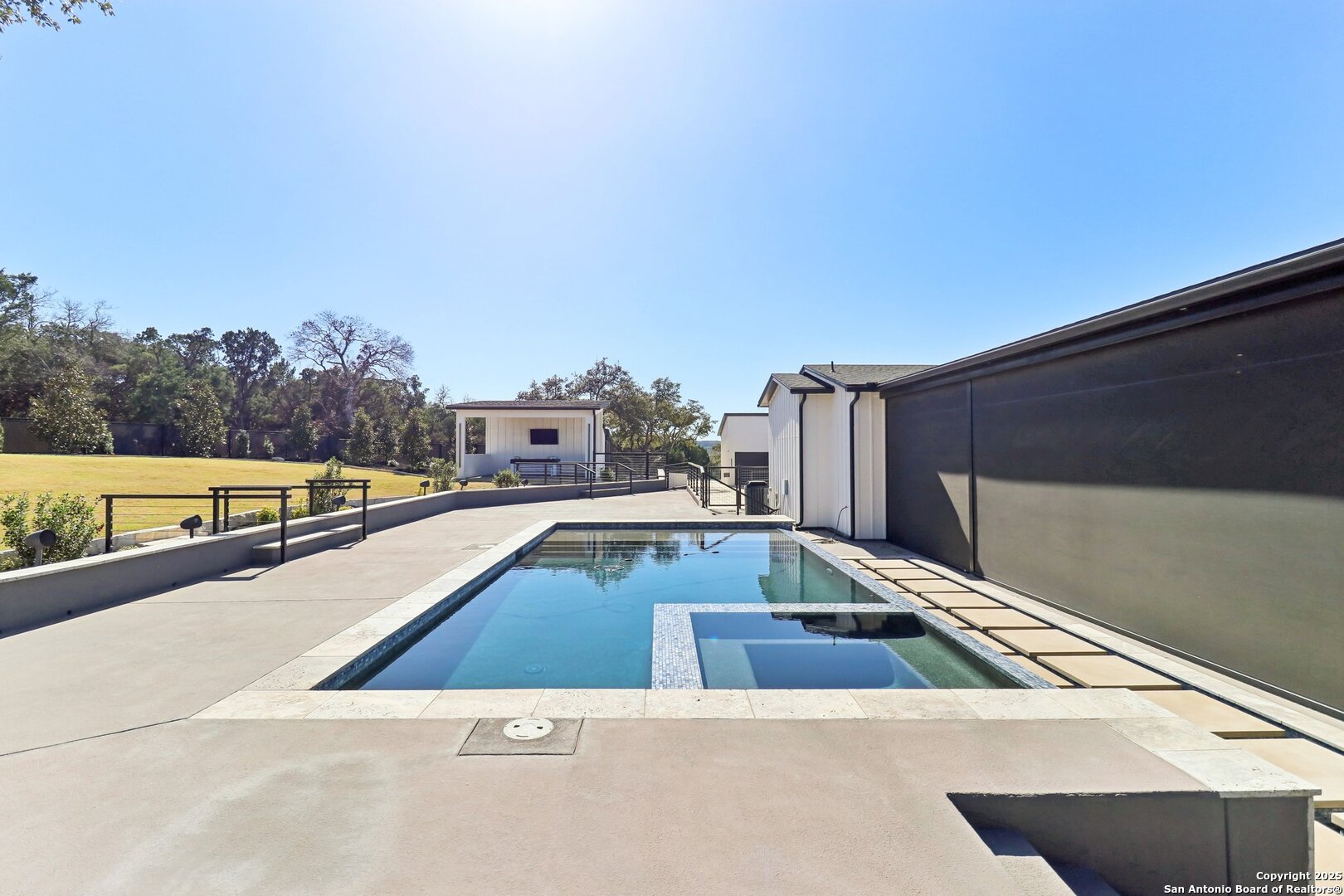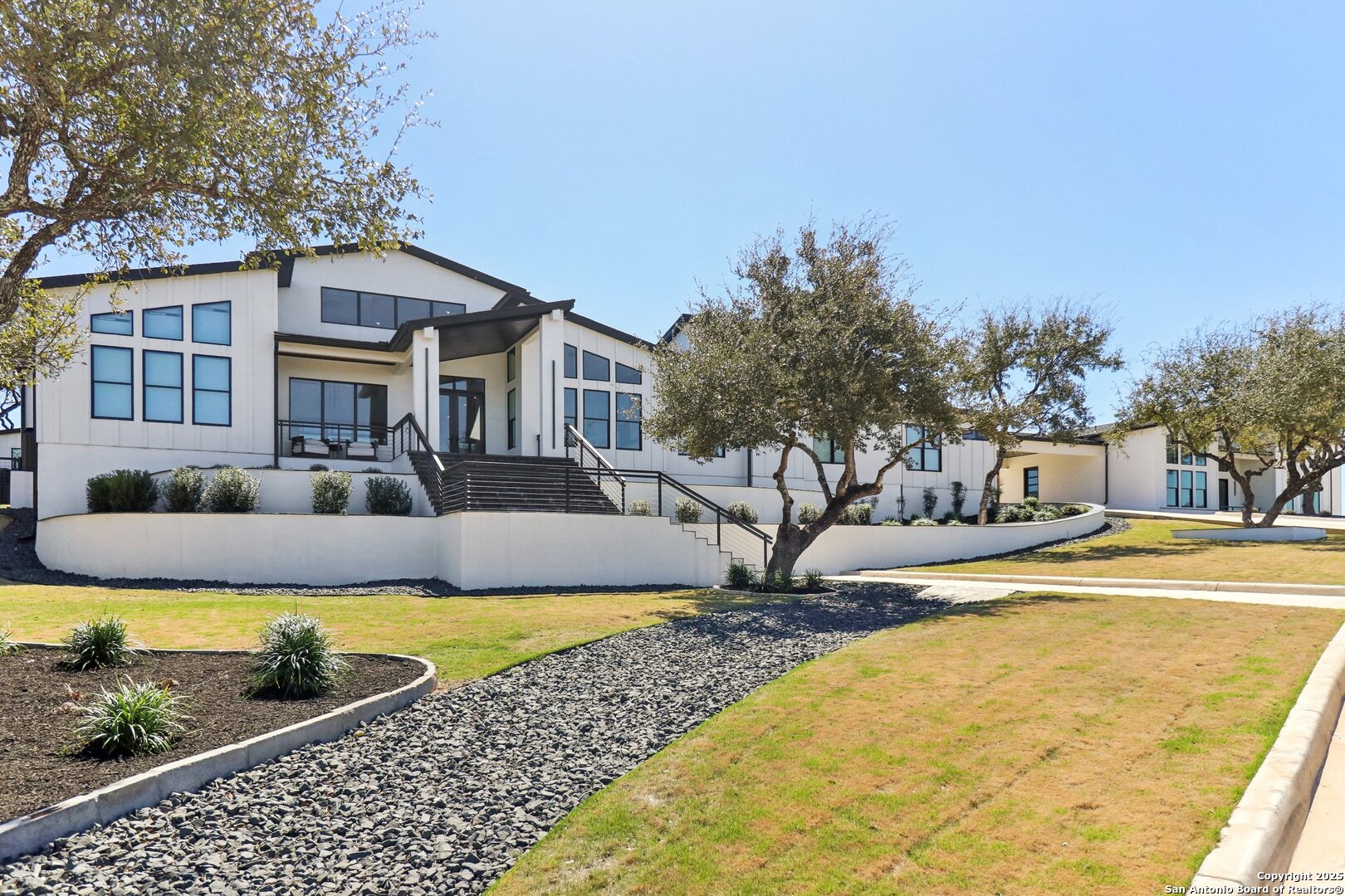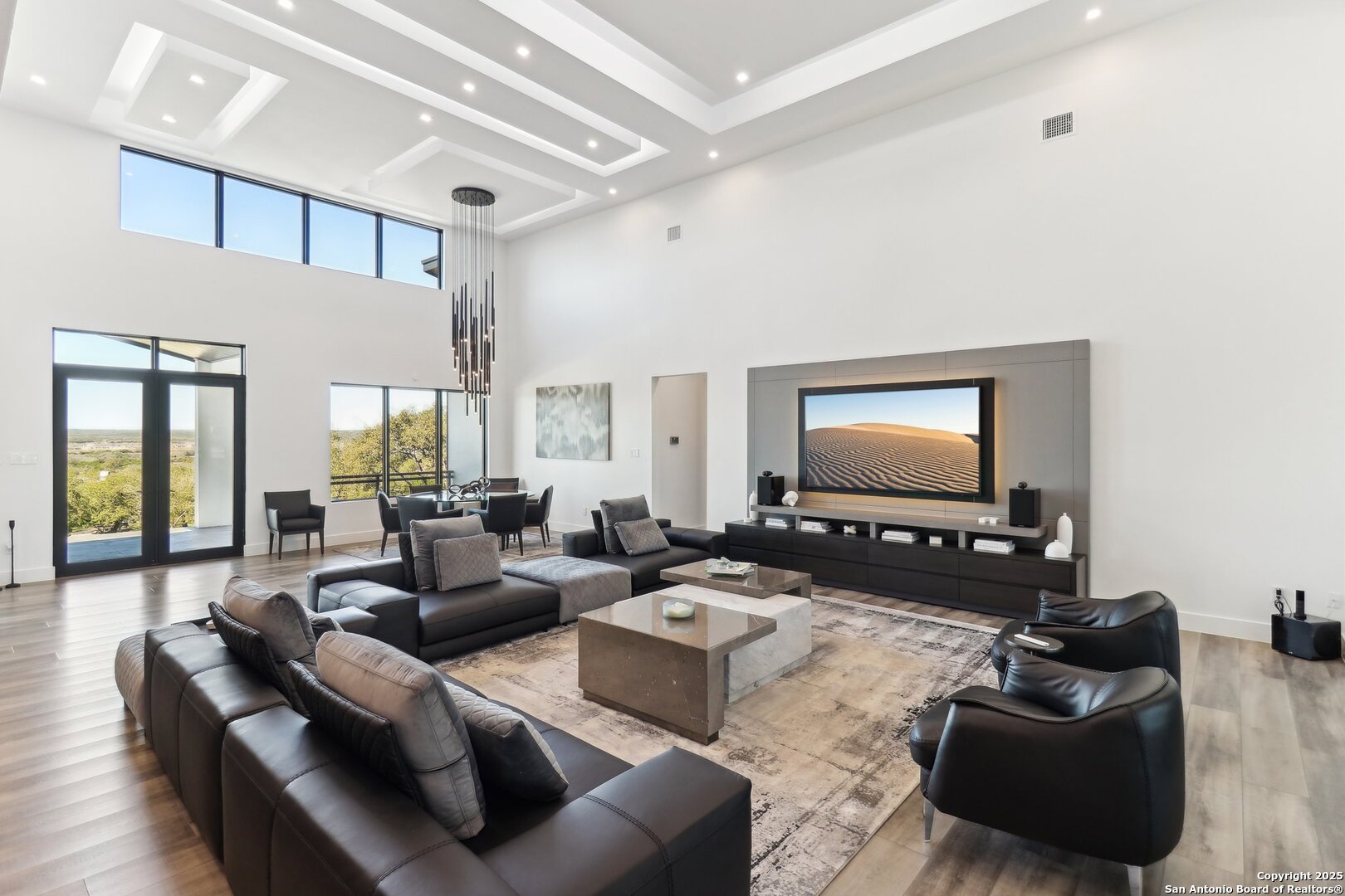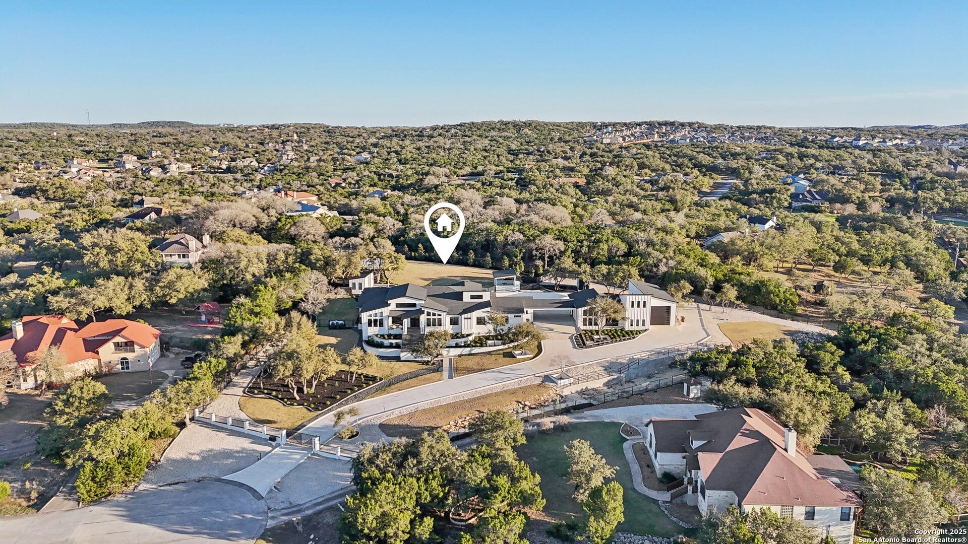Exquisite Custom Home with Hill Country Views. Discover this stunning, privately gated one-story luxury custom home, offering 5,121 sq. ft. of meticulously designed living space on 2.03 serene acres. Nestled in a tranquil gated community, this property boasts breathtaking hill country views, combining elegance and comfort in a picturesque setting. Features You'll Love: Spacious Living: The open-concept living room with soaring custom 20 foot backlit ceilings flows seamlessly into a chef's kitchen, perfect for entertaining or indulging your culinary passions. Primary Retreat: The expansive primary suite features a spa-like HIS and HER bathroom, complete with an extraordinary porcelain steam shower for ultimate relaxation. Car Enthusiast's Dream: A 6-car garage/shop, including a dedicated RV garage with hookups, provides unmatched convenience and storage. Outdoor Oasis: Entertain effortlessly with an inviting pool, waterfall, and a versatile covered outdoor space. Drop the shades for a cozy, indoor-outdoor vibe, ideal for hosting unforgettable gatherings. Recreation at Home: Enjoy a quick game on your private lighted pickleball/basketball court along with outdoor pool/ping pong table, adding to the home's unique lifestyle amenities. This property offers a rare combination of luxury, privacy, and functionality with easy access to the beauty of the Texas Hill Country. Don't miss your chance to own this one-of-a-kind retreat-schedule your private showing today!