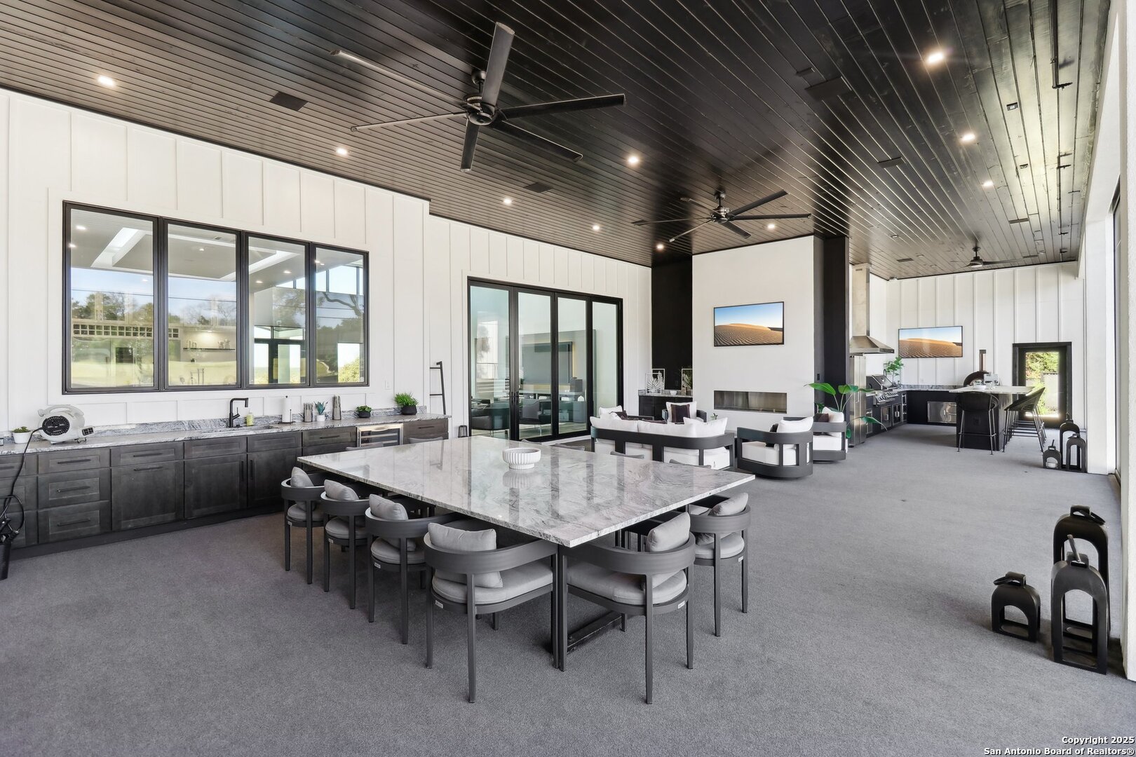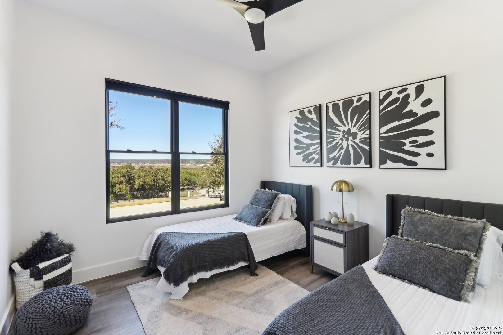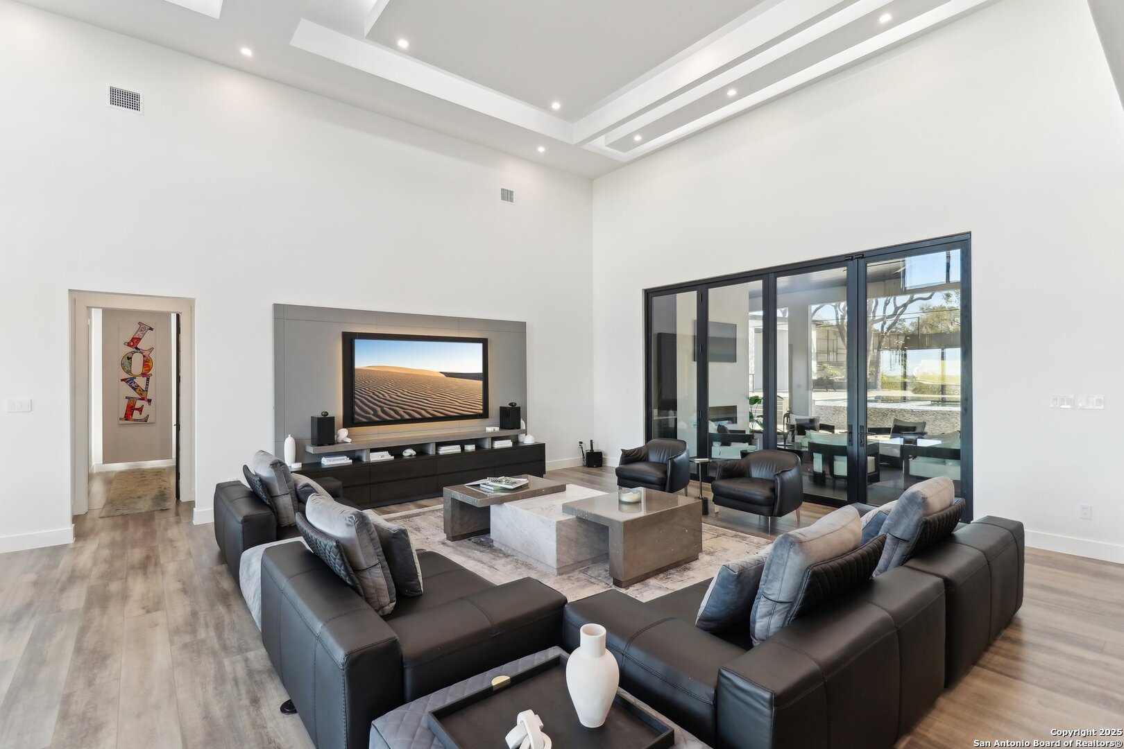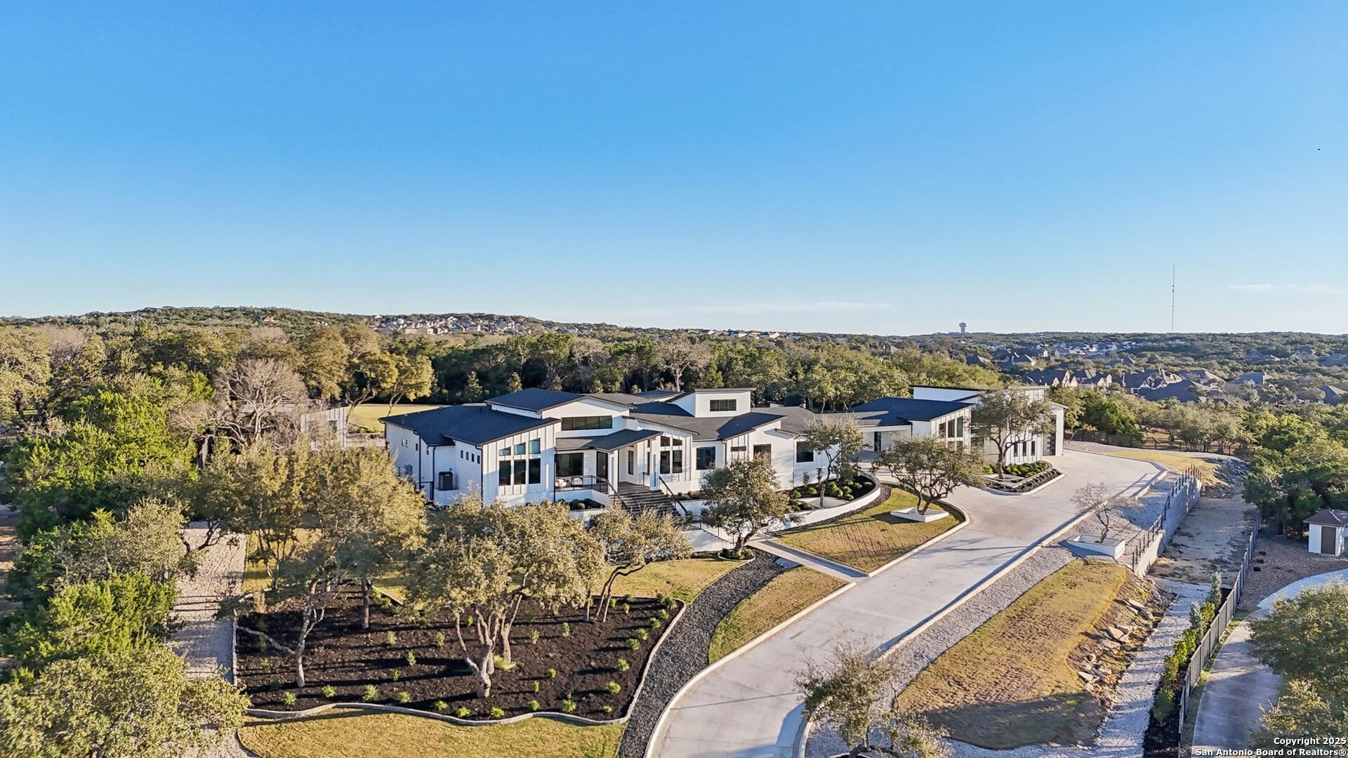 Exquisite Custom Home with Hill Country Views. Discover this stunning, privately gated one-story luxury custom home, offering 5,121 sq. ft. of meticulously designed living space on 2.03 serene acres. Nestled in a tranquil gated community, this property boasts breathtaking hill country views, combining elegance and comfort in a picturesque setting. Features You'll Love: Spacious Living: The open-concept living room with soaring custom 20 foot backlit ceilings flows seamlessly into a chef's kitchen, perfect for entertaining or indulging your culinary passions. Primary Retreat: The expansive primary suite features a spa-like HIS and HER bathroom, complete with an extraordinary porcelain steam shower for ultimate relaxation. Car Enthusiast's Dream: A 6-car garage/shop, including a dedicated RV garage with hookups, provides unmatched convenience and storage. Outdoor Oasis: Entertain effortlessly with an inviting pool, waterfall, and a versatile covered outdoor space. Drop the shades for a cozy, indoor-outdoor vibe, ideal for hosting unforgettable gatherings. Recreation at Home: Enjoy a quick game on your private lighted pickleball/basketball court along with outdoor pool/ping pong table, adding to the home's unique lifestyle amenities. This property offers a rare combination of luxury, privacy, and functionality with easy access to the beauty of the Texas Hill Country. Don't miss your chance to own this one-of-a-kind retreat-schedule your private showing today!