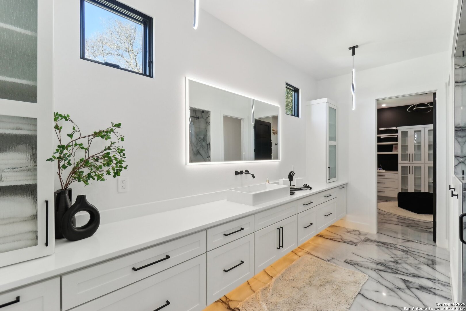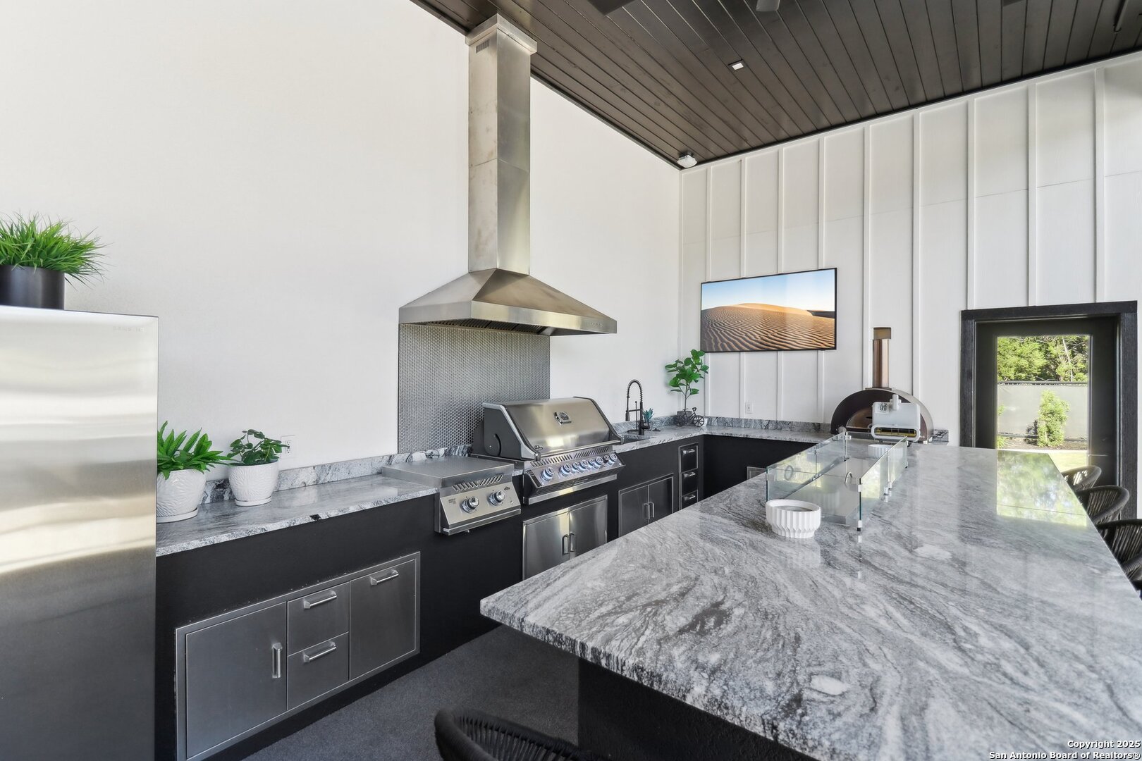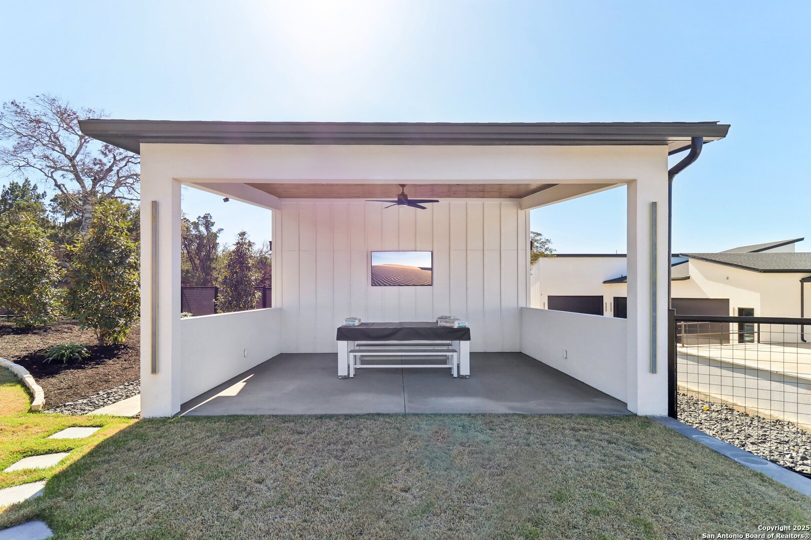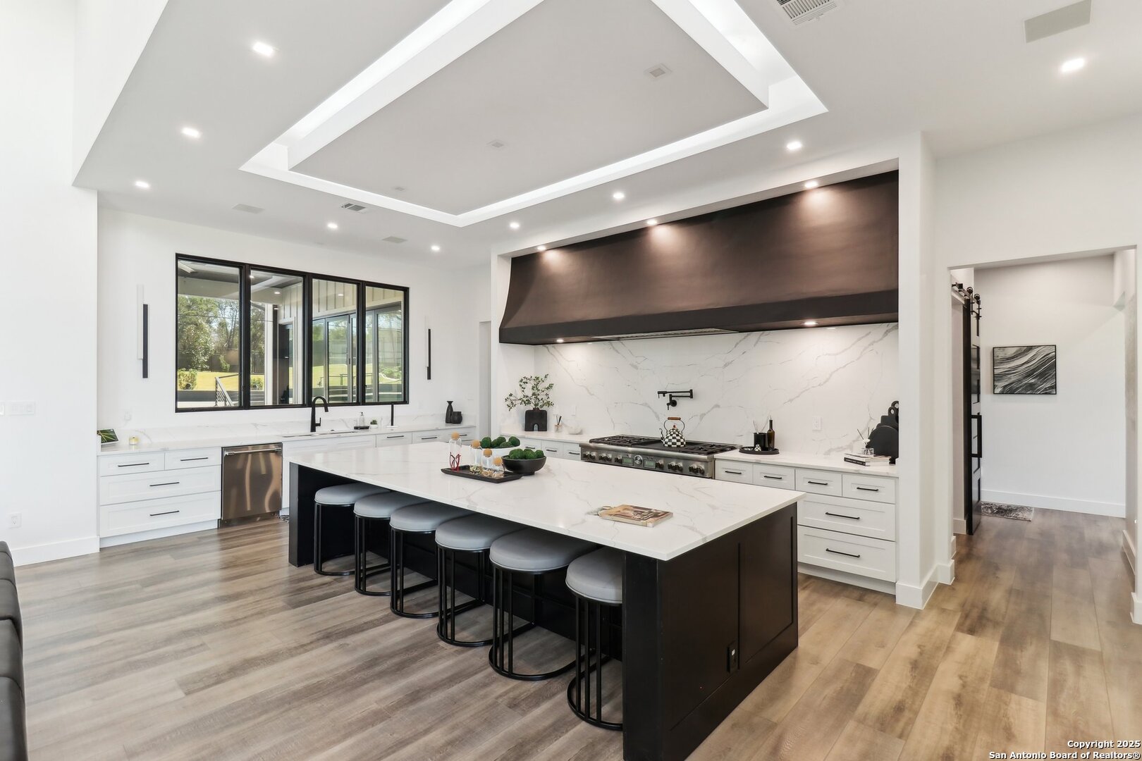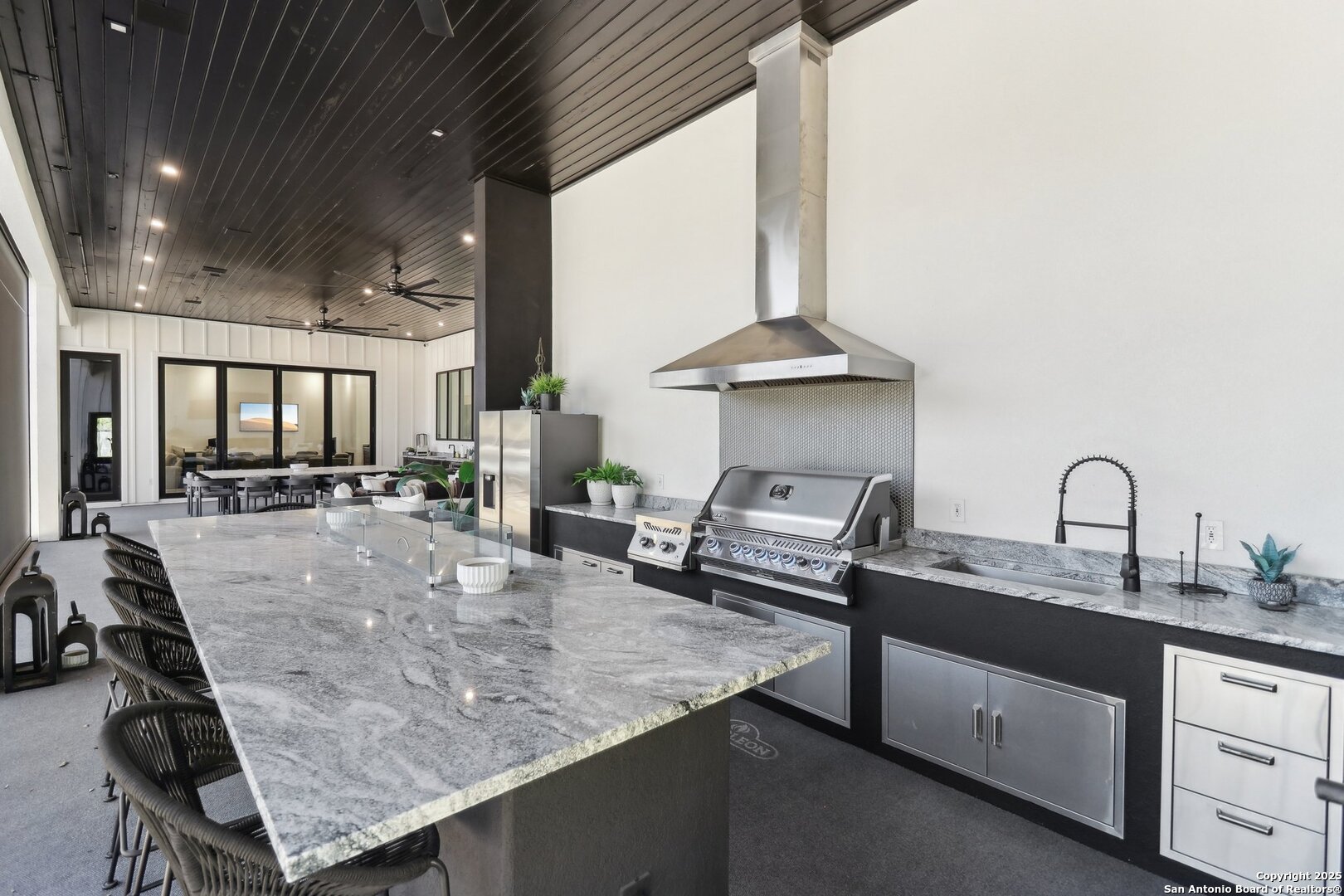 Exquisite Custom Home with Hill Country Views. Discover this stunning, privately gated one-story luxury custom home, offering 5,121 sq. ft. of meticulously designed living space on 2.03 serene acres. Nestled in a tranquil gated community, this property boasts breathtaking hill country views, combining elegance and comfort in a picturesque setting. Features You'll Love: Spacious Living: The open-concept living room with soaring custom 20 foot backlit ceilings flows seamlessly into a chef's kitchen, perfect for entertaining or indulging your culinary passions. Primary Retreat: The expansive primary suite features a spa-like HIS and HER bathroom, complete with an extraordinary porcelain steam shower for ultimate relaxation. Car Enthusiast's Dream: A 6-car garage/shop, including a dedicated RV garage with hookups, provides unmatched convenience and storage. Outdoor Oasis: Entertain effortlessly with an inviting pool, waterfall, and a versatile covered outdoor space. Drop the shades for a cozy, indoor-outdoor vibe, ideal for hosting unforgettable gatherings. Recreation at Home: Enjoy a quick game on your private lighted pickleball/basketball court along with outdoor pool/ping pong table, adding to the home's unique lifestyle amenities. This property offers a rare combination of luxury, privacy, and functionality with easy access to the beauty of the Texas Hill Country. Don't miss your chance to own this one-of-a-kind retreat-schedule your private showing today!