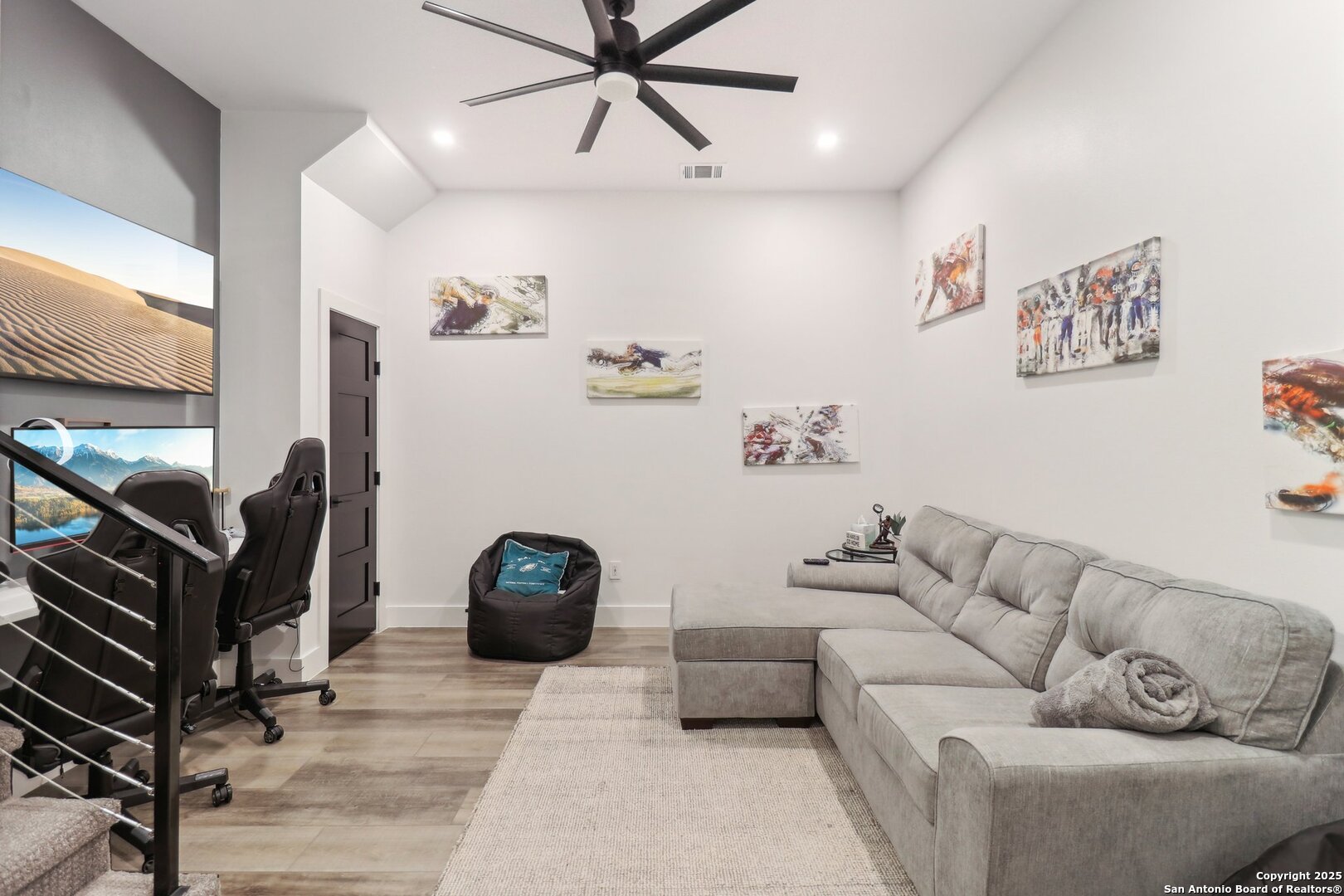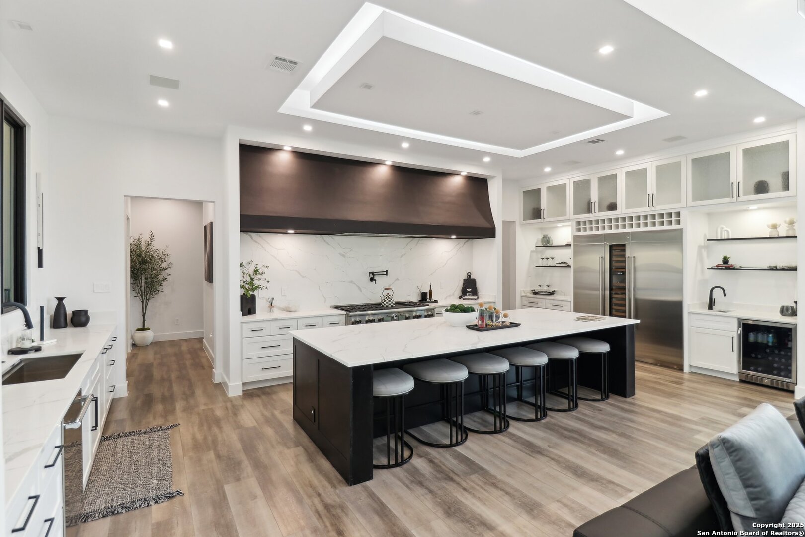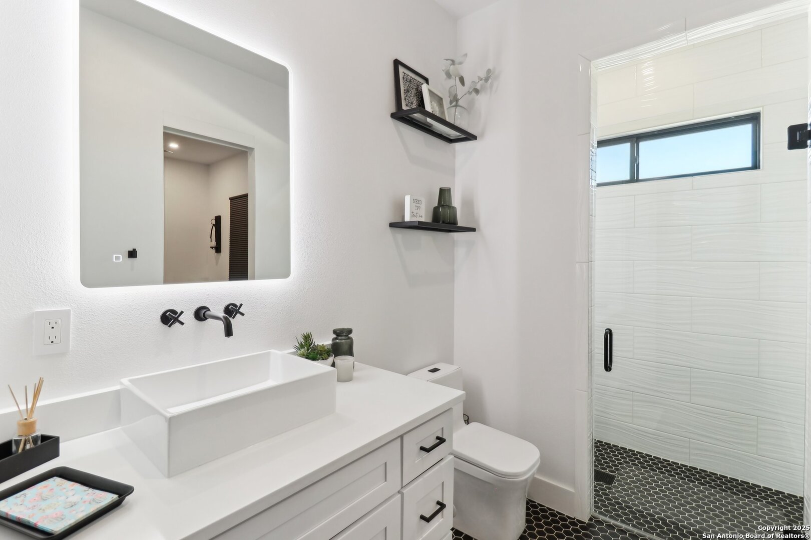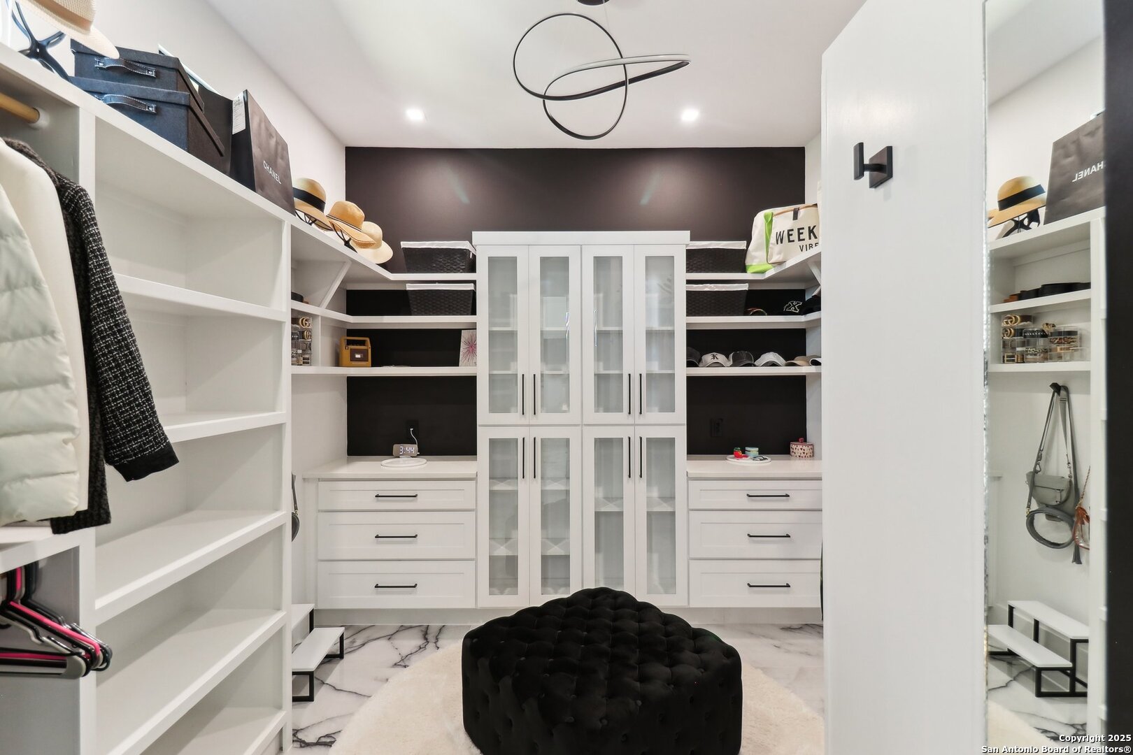 Exquisite Custom Home with Hill Country Views. Discover this stunning, privately gated one-story luxury custom home, offering 5,121 sq. ft. of meticulously designed living space on 2.03 serene acres. Nestled in a tranquil gated community, this property boasts breathtaking hill country views, combining elegance and comfort in a picturesque setting. Features You'll Love: Spacious Living: The open-concept living room with soaring custom 20 foot backlit ceilings flows seamlessly into a chef's kitchen, perfect for entertaining or indulging your culinary passions. Primary Retreat: The expansive primary suite features a spa-like HIS and HER bathroom, complete with an extraordinary porcelain steam shower for ultimate relaxation. Car Enthusiast's Dream: A 6-car garage/shop, including a dedicated RV garage with hookups, provides unmatched convenience and storage. Outdoor Oasis: Entertain effortlessly with an inviting pool, waterfall, and a versatile covered outdoor space. Drop the shades for a cozy, indoor-outdoor vibe, ideal for hosting unforgettable gatherings. Recreation at Home: Enjoy a quick game on your private lighted pickleball/basketball court along with outdoor pool/ping pong table, adding to the home's unique lifestyle amenities. This property offers a rare combination of luxury, privacy, and functionality with easy access to the beauty of the Texas Hill Country. Don't miss your chance to own this one-of-a-kind retreat-schedule your private showing today!