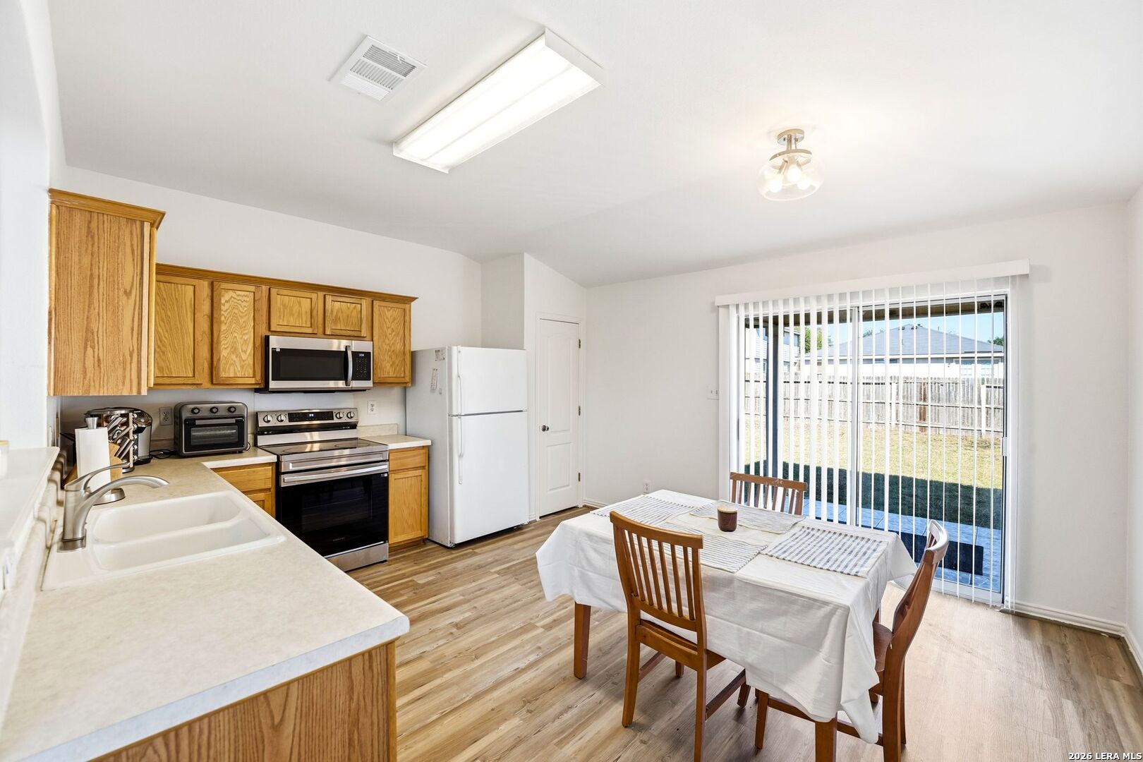 *Open House March 28th 1pm-4pm* Beautifully maintained home with no direct neighbors in front, offering added privacy and open views. This 3 bedroom, 2 bathroom, 1414 sqft home has 9 foot ceilings that create a bright & spacious feel, and offers a flex room that can be used as an office or second living area. Features: Fresh interior paint, no carpet, tile throughout, new kitchen flooring, new toilets, updated kitchen appliances, and cordless blinds. The roof was replaced about 4 years ago. Enjoy the large backyard with a covered patio and access to the neighborhood park which features a playground, basketball court, & jogging trails. Conveniently located near Lackland AFB, Highway 90, & Loop 410, and minutes from shopping and dining. Move in ready and ideally located.