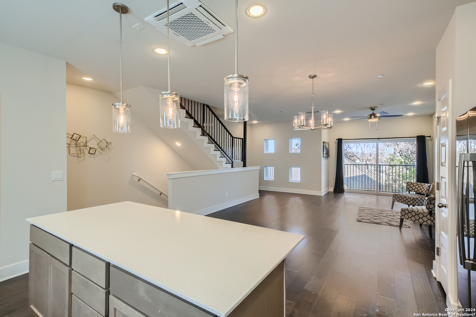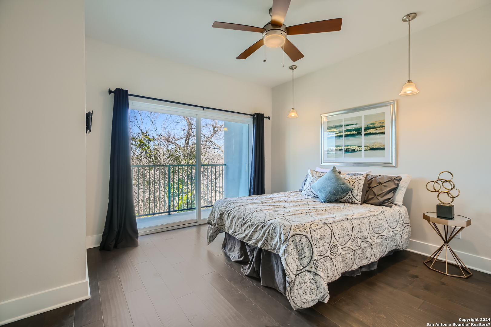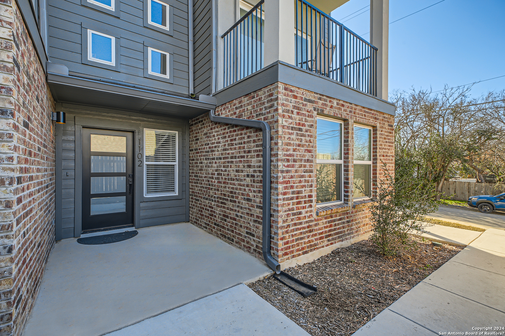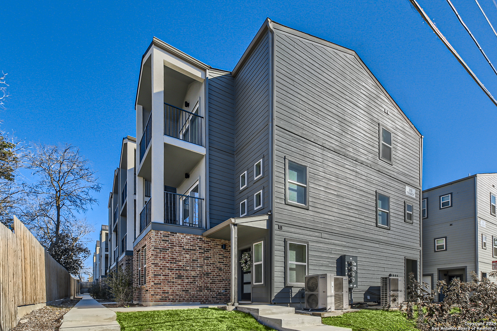 Contemporary condo in Mahncke Park is close to Broadway, The Pearl, Brackenridge Park, and Downtown. Main living area is large, open and sleek and has balcony with a view. The third floor has two bedrooms with ensuite bathrooms, and a second balcony is off the primary bedroom. The ground floor is entry to 2 car garage , an entry way, and a third bedroom with bath that would also make a terrific office. This peaceful location is tucked in vintage part of the neighborhood. Priced to sell!