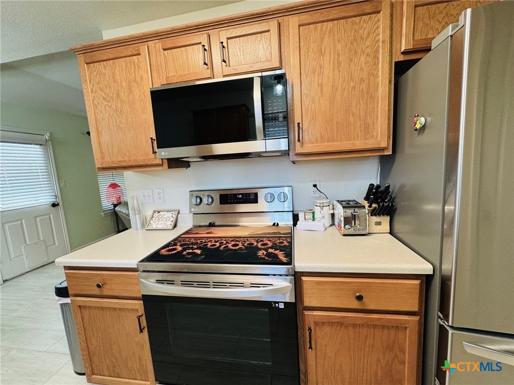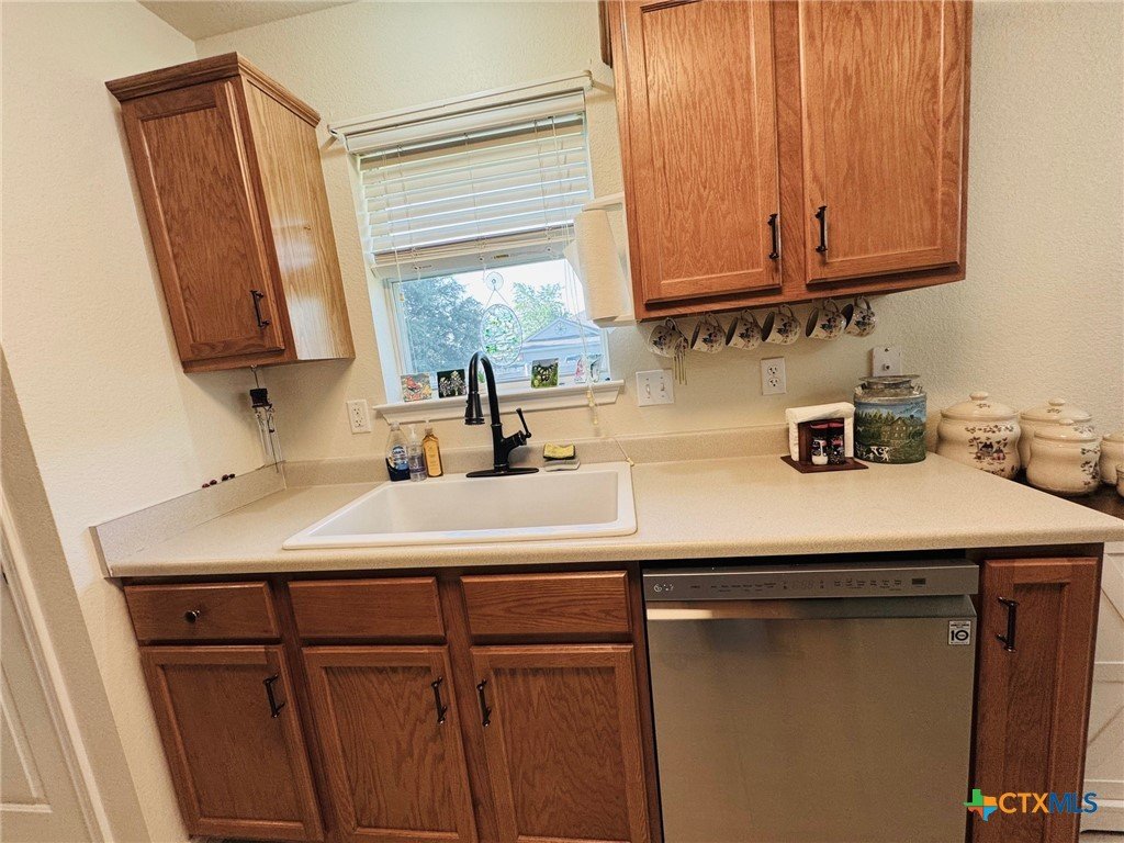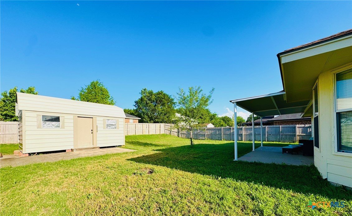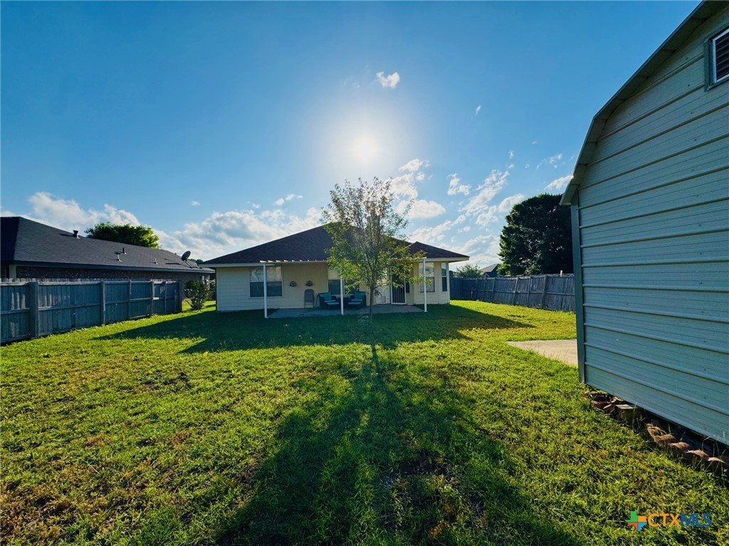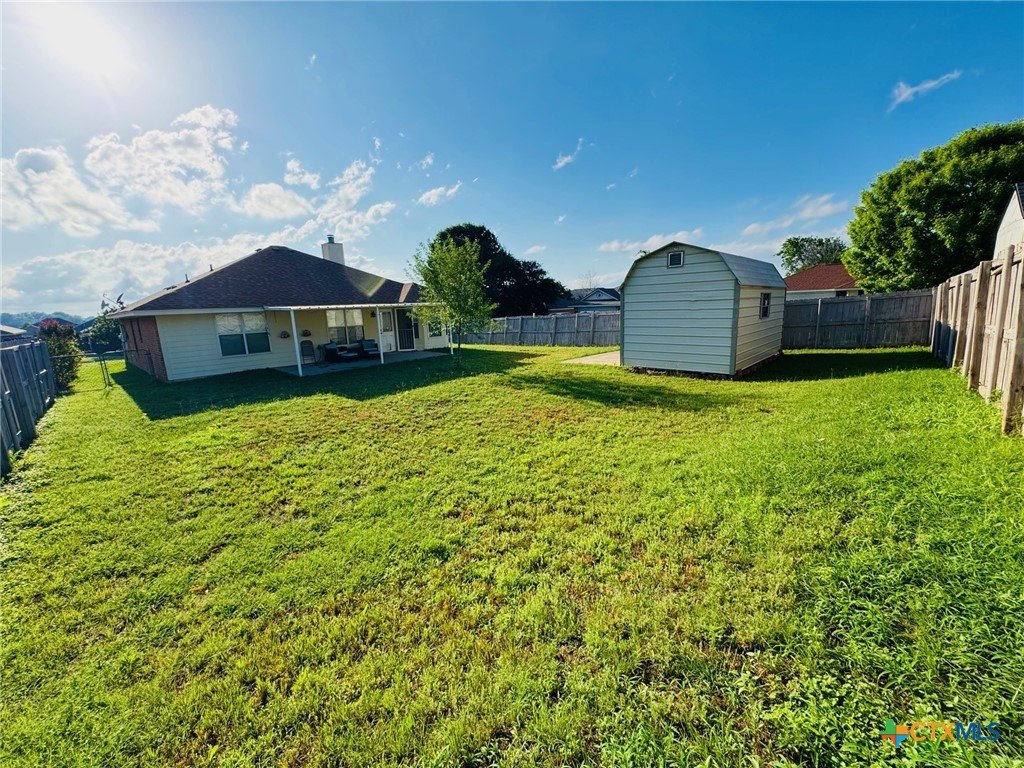 Welcome home to this charming 3-bedroom, 2-bath gem situated on a desirable corner lot in the friendly Stoneridge Addition! Ideally located just minutes from schools, shopping, and the Gatesville Fitness Center with an indoor pool, this home offers a perfect blend of comfort and convenience. The kitchen was tastefully updated in 2023 with a new stove, dishwasher, large single sink, modern faucet, garbage disposal, pantry, ample counter space, and a sunny window above the sink. The spacious living room features a cozy brick fireplace with an electric insert—perfect for relaxing evenings. The primary suite overlooks the backyard and boasts a beautifully remodeled en-suite with a large walk-in shower. With a split floor plan, the secondary bedrooms are tucked away and share a full bath with a tub/shower combo. In 2024, the home received additional updates, including all-new oil-rubbed bronze fixtures throughout—door knobs, hinges, faucets, towel bars, grab bars, ceiling fans, and lighting. Step outside to enjoy the oversized covered patio, large storage building, and fully privacey fenced backyard—ideal for outdoor entertaining. The clean two-car garage completes the package. This is a must-see​​‌​​​​‌​​‌‌​‌‌‌​‌​​​​‌​​​‌‌​‌​​ home!