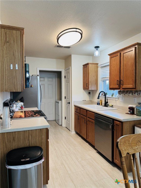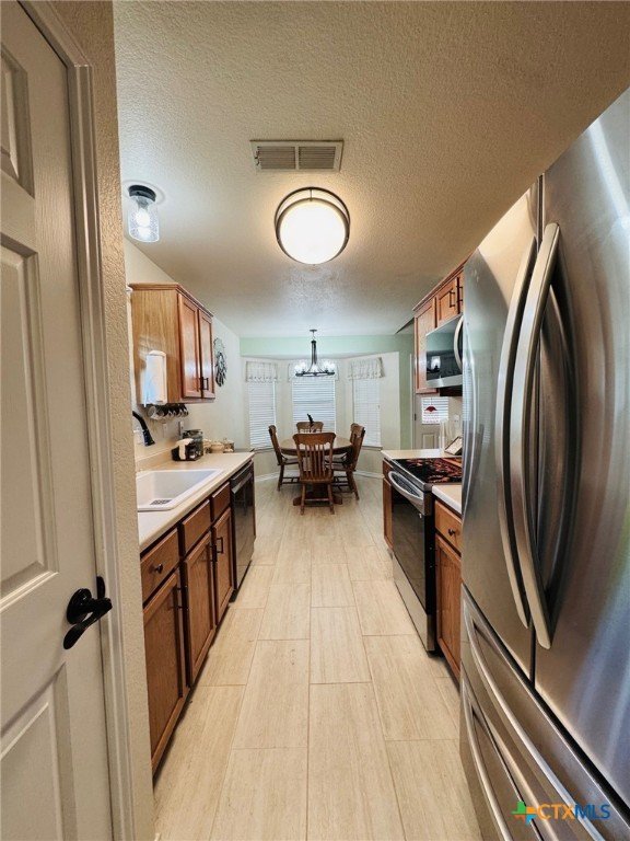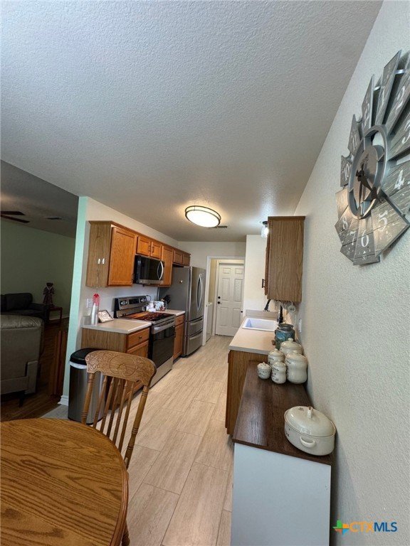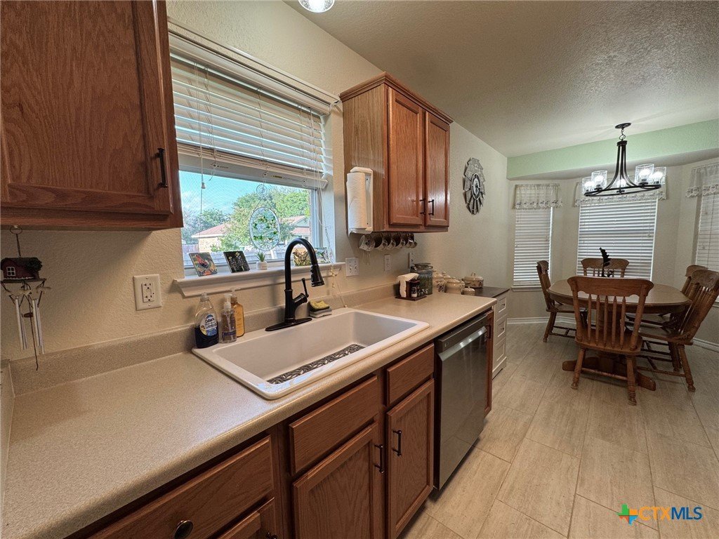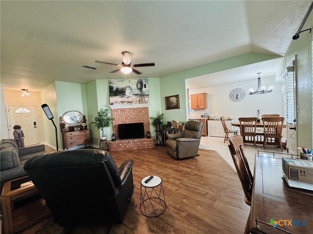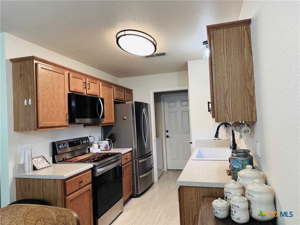 Welcome home to this charming 3-bedroom, 2-bath gem situated on a desirable corner lot in the friendly Stoneridge Addition! Ideally located just minutes from schools, shopping, and the Gatesville Fitness Center with an indoor pool, this home offers a perfect blend of comfort and convenience. The kitchen was tastefully updated in 2023 with a new stove, dishwasher, large single sink, modern faucet, garbage disposal, pantry, ample counter space, and a sunny window above the sink. The spacious living room features a cozy brick fireplace with an electric insert—perfect for relaxing evenings. The primary suite overlooks the backyard and boasts a beautifully remodeled en-suite with a large walk-in shower. With a split floor plan, the secondary bedrooms are tucked away and share a full bath with a tub/shower combo. In 2024, the home received additional updates, including all-new oil-rubbed bronze fixtures throughout—door knobs, hinges, faucets, towel bars, grab bars, ceiling fans, and lighting. Step outside to enjoy the oversized covered patio, large storage building, and fully privacey fenced backyard—ideal for outdoor entertaining. The clean two-car garage completes the package. This is a must-see​​‌​​​​‌​​‌‌​‌‌‌​‌​​​​‌​​​‌‌​‌​​ home!
