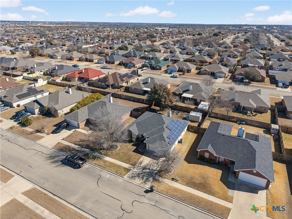 Well-maintained 4-bedroom, 2-bath home offering 1,682 sq ft of comfortable living space. Fresh interior paint and tile flooring throughout create a clean, cohesive look. The hall bathroom has been tastefully remodeled with a walk-in shower. Multiple built-in features add character and functional storage. Enjoy a cozy fireplace, oversized back patio ideal for entertaining, mature shade tree, and a storage shed for extra space. Paid-off solar panels provide energy efficiency and long-term savings. Conveniently located near Fort Hood with easy access to shopping, dining, and major routes. Washer & Dryer will convey with the home, and the large safe in primary bedroom closet is negotiable.