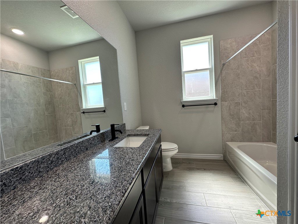 Ashford Homes presents the Brushy Creek floor plan. This beautiful home is finished with all the modern touches, granite counter tops, wood look ceramic tile flooring, black finished hardware and fixtures, stainless steel appliances, ceiling fans in all the rooms, LED lighting through out, garage door opener, full yard sprinkler system, full yard sod, wood privacy fence and 4-sided brick and stone. This home features 1874 square feet, 3 large bedrooms and 2 full bathrooms. The home features a large living area and lots of natural light.