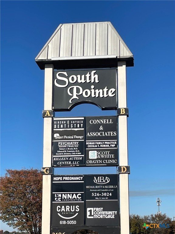 1,000 SF Professional Office in South Pointe Professional Center. Zoned B-3 with 4 private offices, lobby/reception, 1 bathroom, and flexible layout. High-traffic location on S. WS Young with quick access to I-14 and Stan Schlueter Loop. Over 100 parking spaces and professionally maintained common areas. Surrounded by major medical, dental, and professional users. Move-in ready with flexible lease terms. This is a NNN lease structure; estimated pass through expenses are $6.12/sqft/annually ($.51/sqft/monthly).