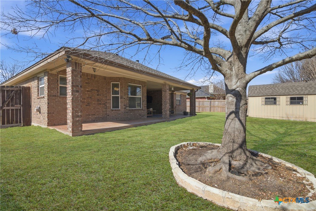 Welcome to 3108 Sarita Cove—a 4 bedroom, 2 bath home tucked away on a quiet cul-de-sac in the highly desirable Dawson Ranch neighborhood, zoned to Belton ISD. This home combines an established setting with meaningful recent improvements that make it truly move-in ready. Major updates completed in 2024 include a new roof, full interior repaint, and new vinyl plank flooring throughout—giving the home a clean, modern look while keeping it warm and inviting. The open floor plan and split-bedroom layout provide both functionality and privacy, with the primary suite separated from the secondary bedrooms. The living area is centered around a classic wood-burning fireplace, and the kitchen/dining combo offers an easy flow for everyday life and entertaining. Outside, you’ll love the oversized covered patio—perfect for grilling, relaxing, or hosting friends—plus a convenient storage shed in the backyard. Mature trees add shade and character that you simply can’t replicate in newer neighborhoods. Conveniently located near Belton Lake, local schools, shopping, restaurants, and daily amenities, this home offers a rare combination of location, updates, and cul-de-sac privacy in one of Belton’s most sought-after areas.