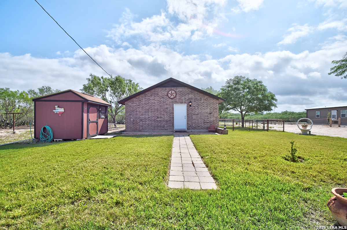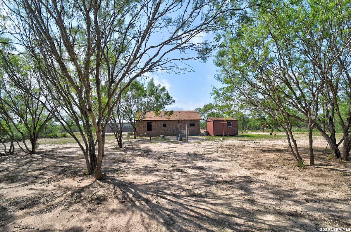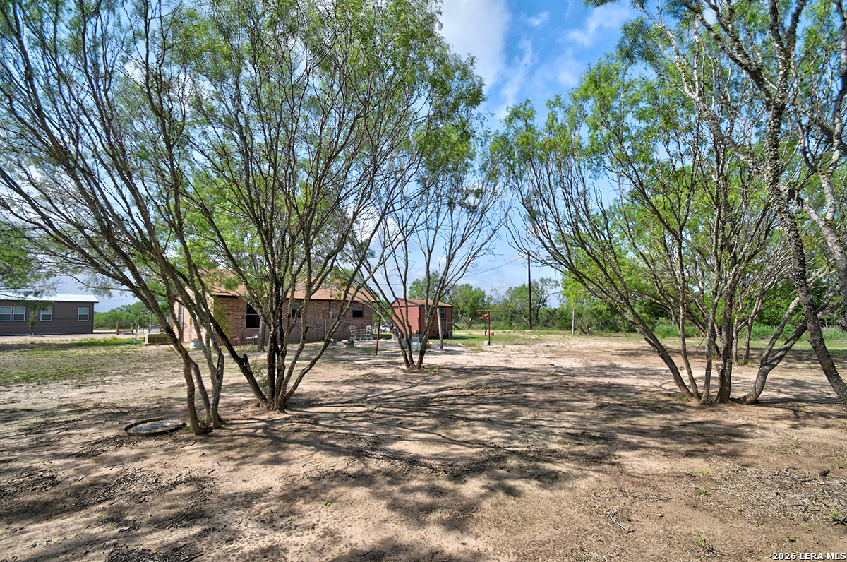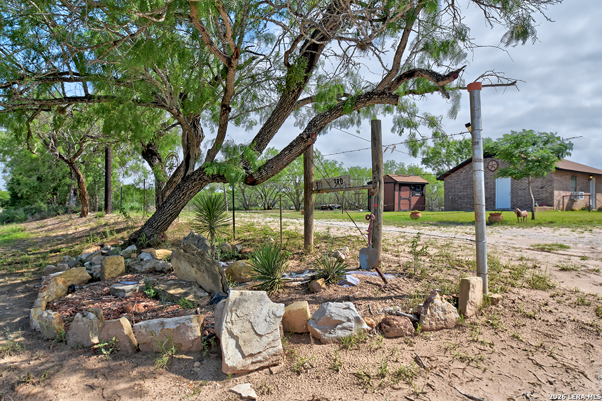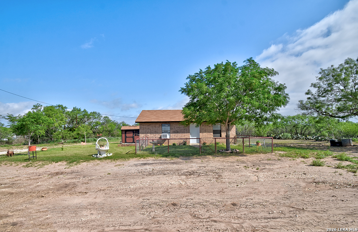 Welcome to your slice of Texas country living, where space, simplicity, and opportunity come together on approximately half an acre. This all-brick ranch-style home sits on an estimated 0.49-acre lot, offering the freedom and flexibility buyers are looking for in a rural lifestyle property. Featuring 2 bedrooms, 1 bathroom, and 792 square feet, this home is ideal for those seeking a manageable footprint with room to expand, personalize, or invest. The home features a functional layout with hardwood-stained kitchen cabinets, and all appliances convey both inside and outside the home, making this a true move-in-ready opportunity. The linoleum flooring shows some wear but remains in solid condition, offering a practical foundation for future updates. The outdoor space is where this property stands out. Enjoy green grass in the front yard, galvanized fencing ideal for dogs or pets, and natural cacti that add to the Texas country feel. A separate shed houses the laundry area, giving you added flexibility inside the home. With nearly half an acre, there is plenty of space to make the land your own, whether that's adding improvements, expanding, or creating your ideal setup. Located just 14 minutes from Jourdanton and approximately 1 hour from San Antonio, you'll have the benefit of quiet rural living while staying within reach of everyday conveniences. There is no survey on file, so one will need to be ordered. Entertaining all reasonable offers. Tour today and see the potential this property has to offer.