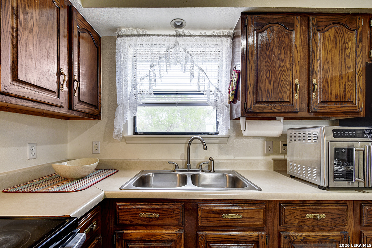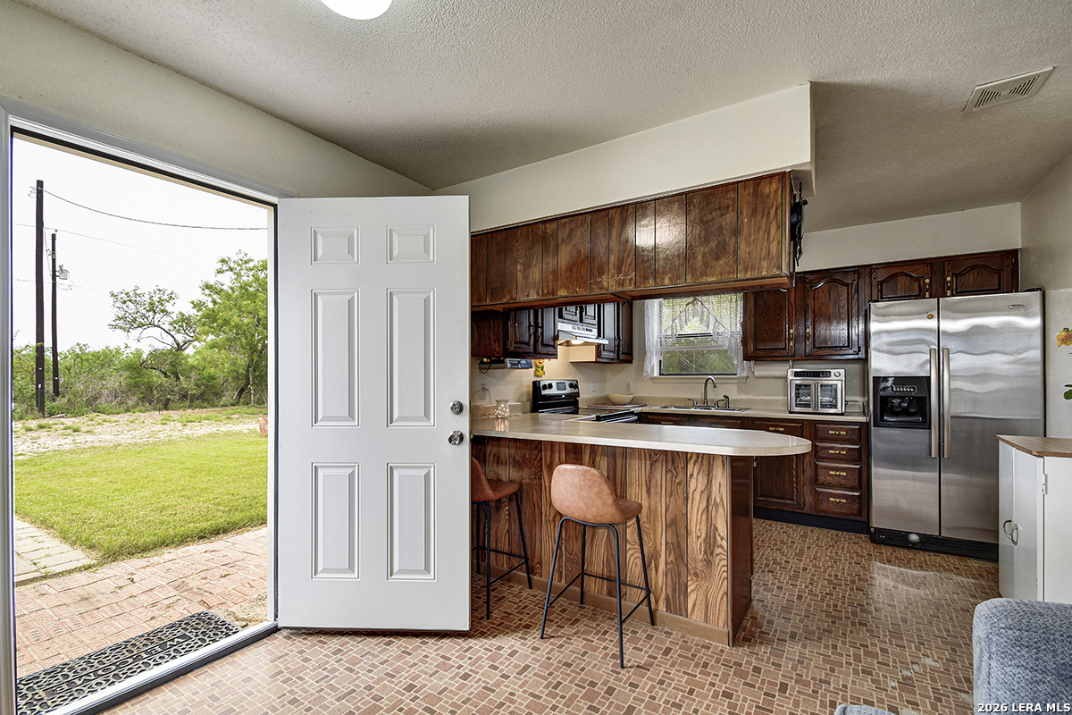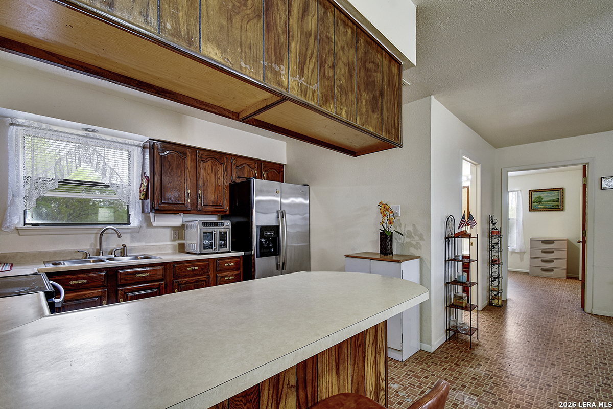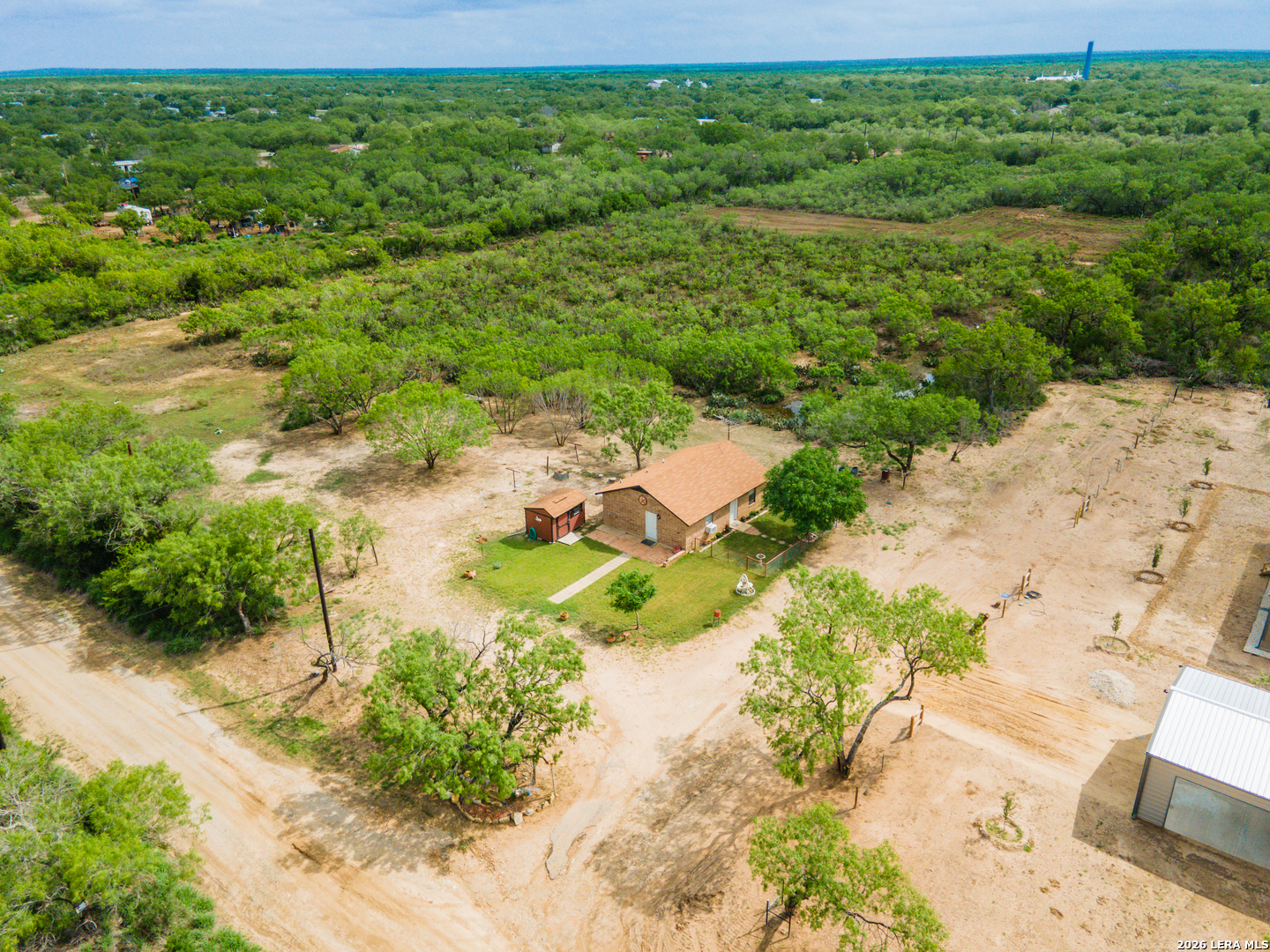 Welcome to your slice of Texas country living, where space, simplicity, and opportunity come together on approximately half an acre. This all-brick ranch-style home sits on an estimated 0.49-acre lot, offering the freedom and flexibility buyers are looking for in a rural lifestyle property. Featuring 2 bedrooms, 1 bathroom, and 792 square feet, this home is ideal for those seeking a manageable footprint with room to expand, personalize, or invest. The home features a functional layout with hardwood-stained kitchen cabinets, and all appliances convey both inside and outside the home, making this a true move-in-ready opportunity. The linoleum flooring shows some wear but remains in solid condition, offering a practical foundation for future updates. The outdoor space is where this property stands out. Enjoy green grass in the front yard, galvanized fencing ideal for dogs or pets, and natural cacti that add to the Texas country feel. A separate shed houses the laundry area, giving you added flexibility inside the home. With nearly half an acre, there is plenty of space to make the land your own, whether that's adding improvements, expanding, or creating your ideal setup. Located just 14 minutes from Jourdanton and approximately 1 hour from San Antonio, you'll have the benefit of quiet rural living while staying within reach of everyday conveniences. There is no survey on file, so one will need to be ordered. Entertaining all reasonable offers. Tour today and see the potential this property has to offer.