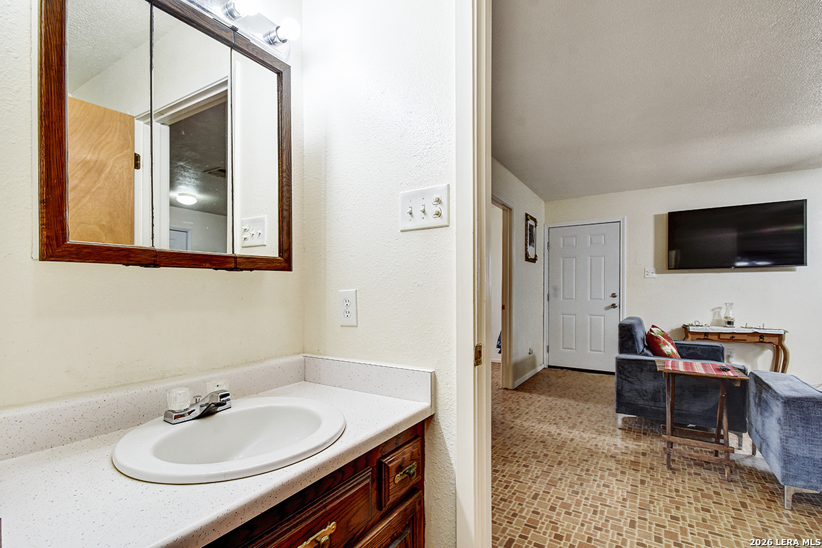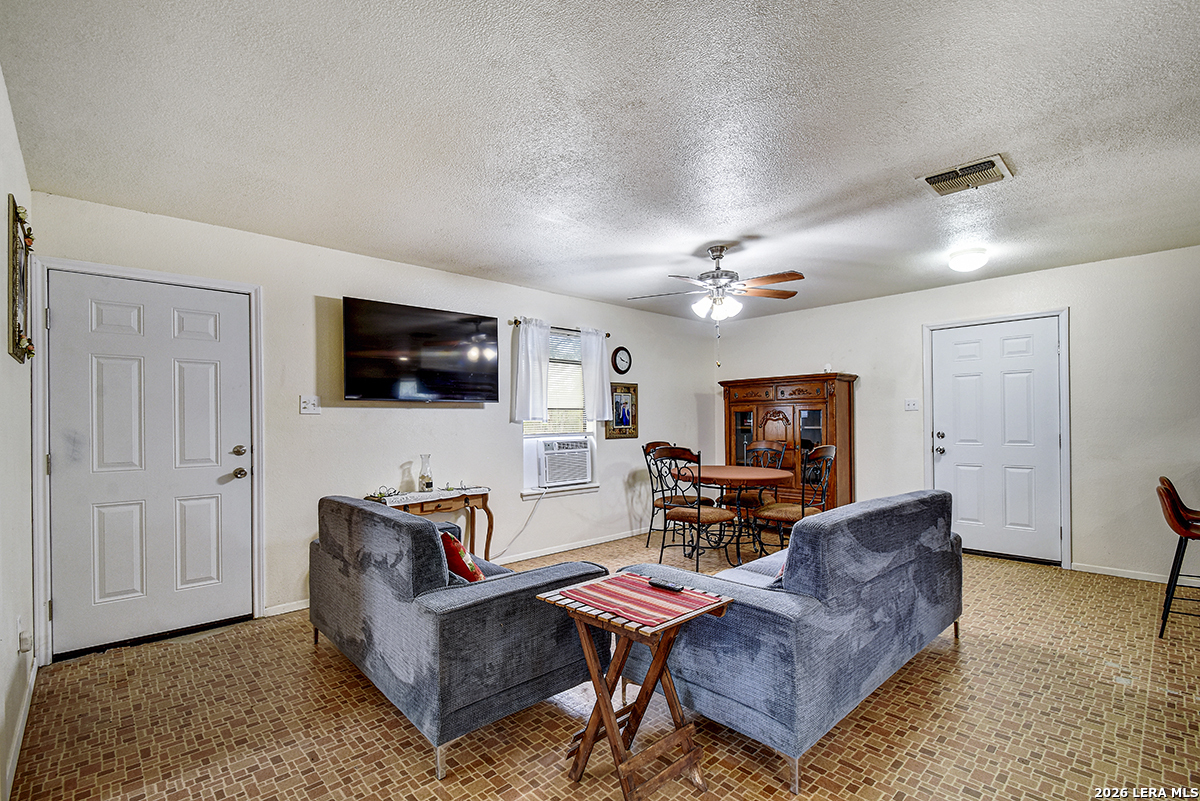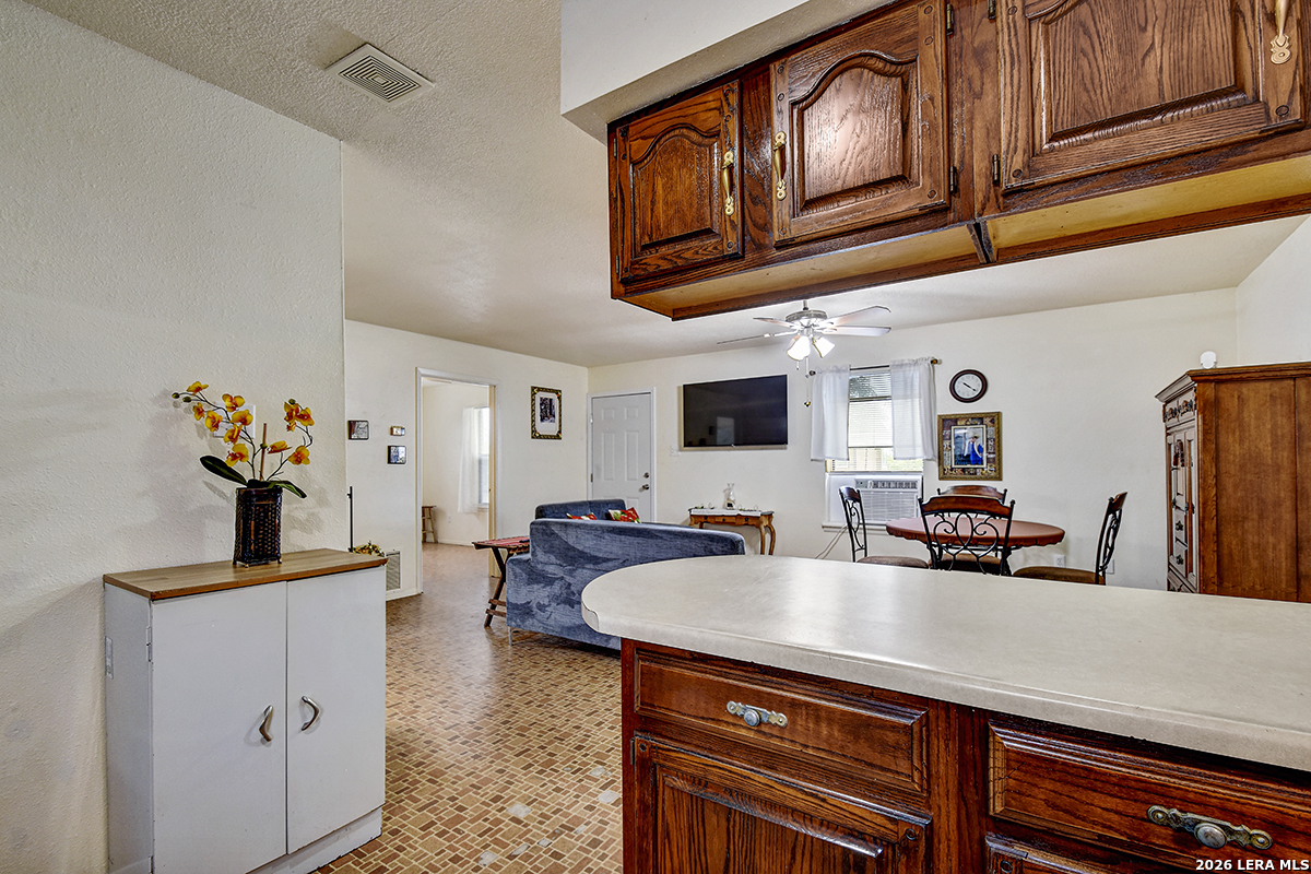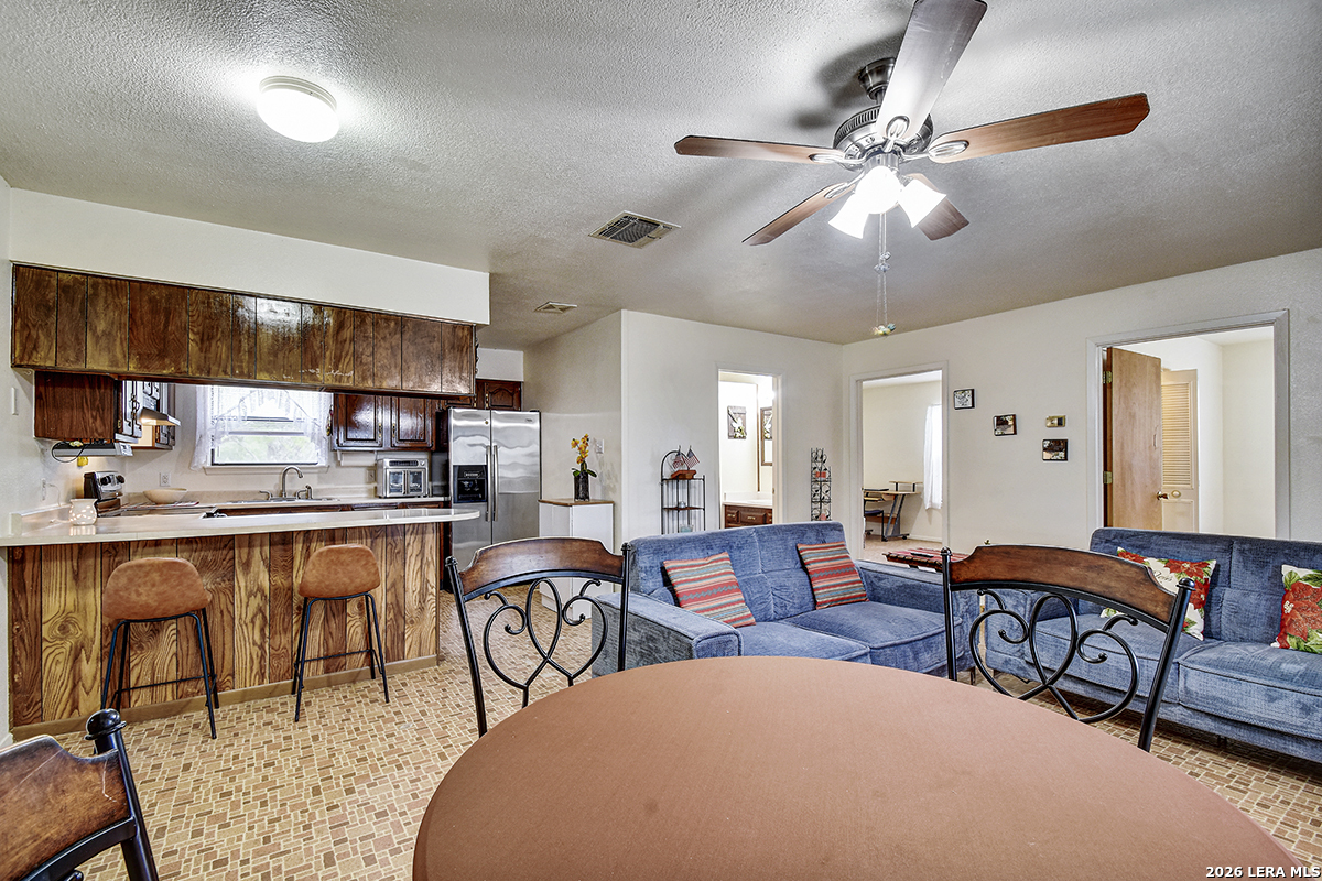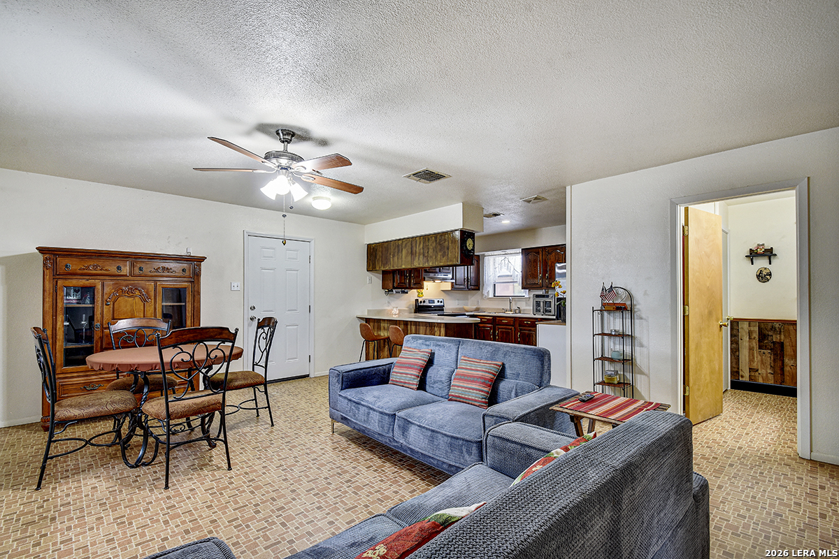 Welcome to your slice of Texas country living, where space, simplicity, and opportunity come together on approximately half an acre. This all-brick ranch-style home sits on an estimated 0.49-acre lot, offering the freedom and flexibility buyers are looking for in a rural lifestyle property. Featuring 2 bedrooms, 1 bathroom, and 792 square feet, this home is ideal for those seeking a manageable footprint with room to expand, personalize, or invest. The home features a functional layout with hardwood-stained kitchen cabinets, and all appliances convey both inside and outside the home, making this a true move-in-ready opportunity. The linoleum flooring shows some wear but remains in solid condition, offering a practical foundation for future updates. The outdoor space is where this property stands out. Enjoy green grass in the front yard, galvanized fencing ideal for dogs or pets, and natural cacti that add to the Texas country feel. A separate shed houses the laundry area, giving you added flexibility inside the home. With nearly half an acre, there is plenty of space to make the land your own, whether that's adding improvements, expanding, or creating your ideal setup. Located just 14 minutes from Jourdanton and approximately 1 hour from San Antonio, you'll have the benefit of quiet rural living while staying within reach of everyday conveniences. There is no survey on file, so one will need to be ordered. Entertaining all reasonable offers. Tour today and see the potential this property has to offer.