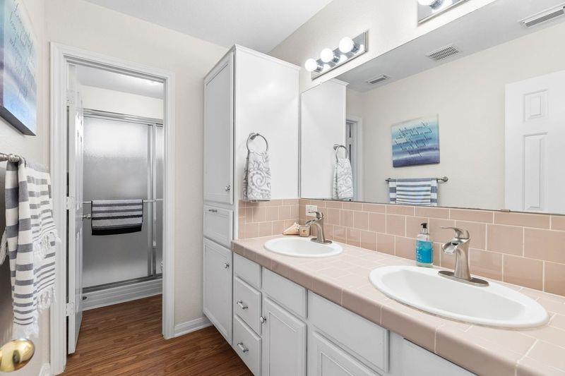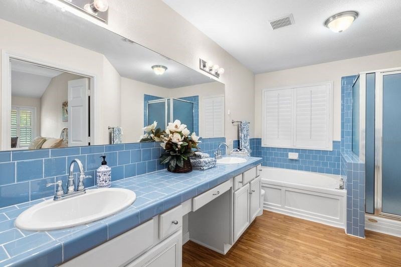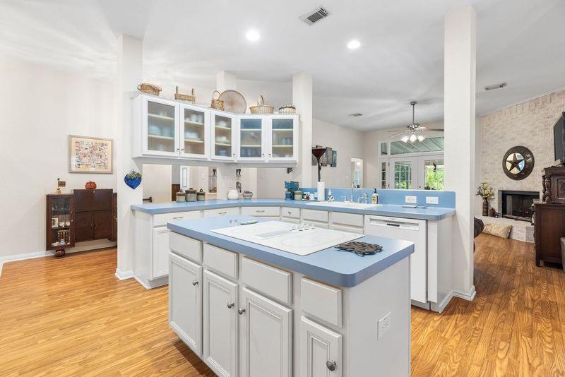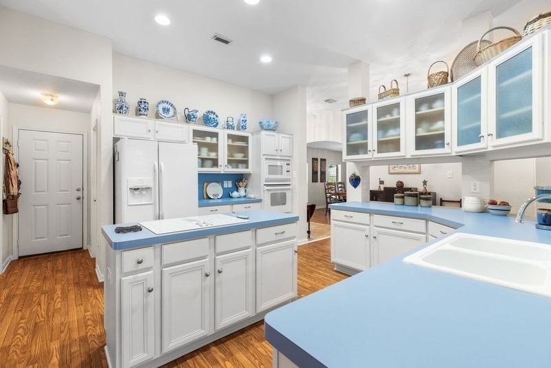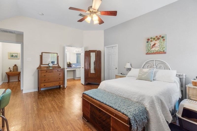 Spacious custom home in Heritage Hill Country, a gated 55+ neighborhood, featuring open floor plan, custom window treatments and expansive screened-in back porch. The large kitchen opens to the living area and features extensive cabinetry, kitchen island with electric cooktop, large pantry and breakfast nook with built-in desk. The living room features beautiful brick wall with fireplace and french doors leading to the large enclosed back porch. Formal dining room is to the right as you enter the home. Primary suite includes large cedar closet, bath with double vanity, soaking tub and walk-in shower. Enjoy all of the amenities this neighborhood has to offer including walking trails, large community center with pool, workout room, library and activity room.