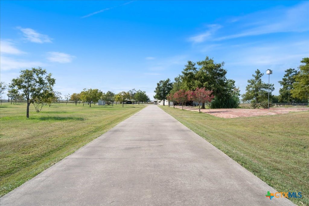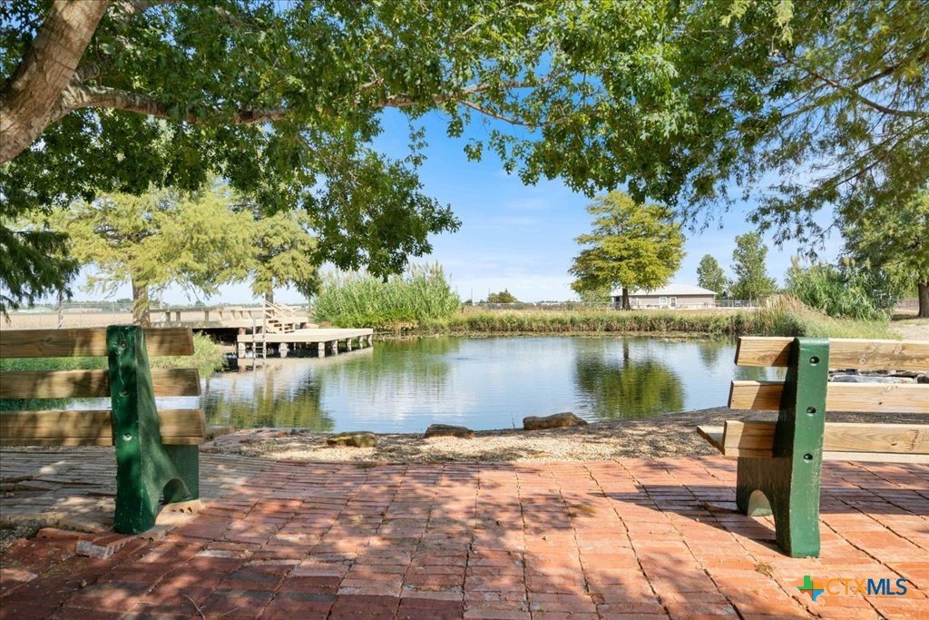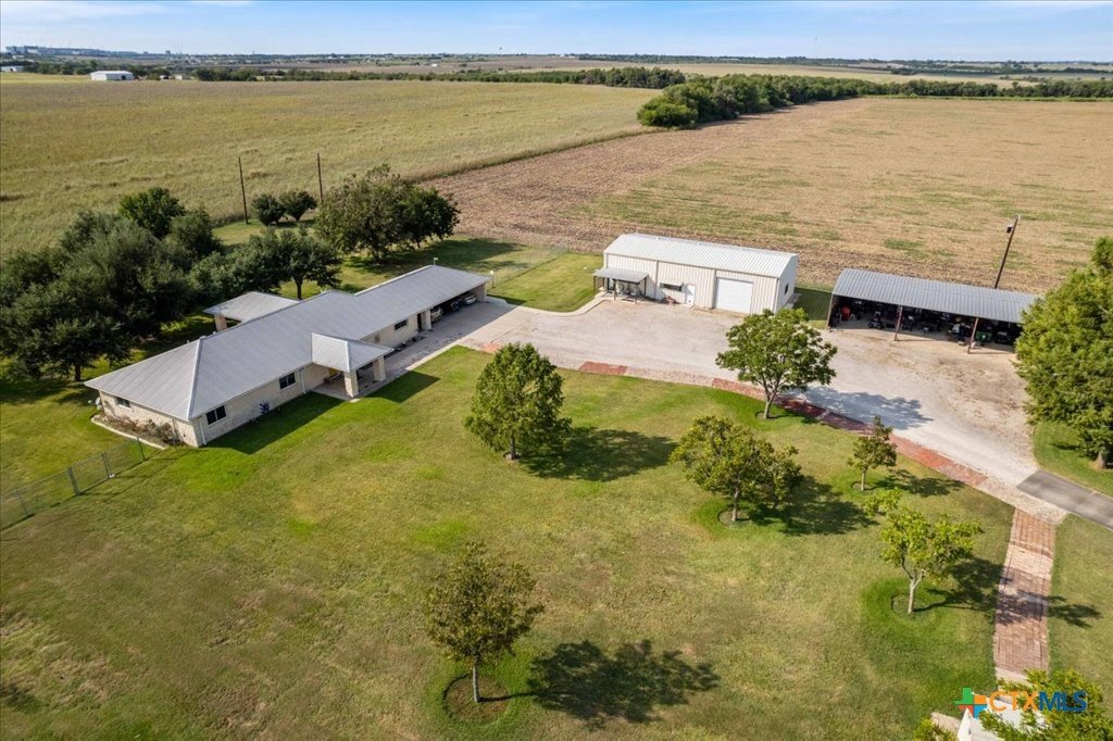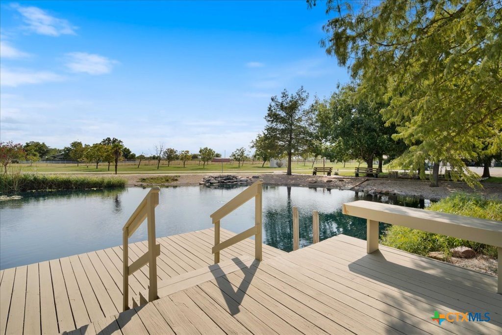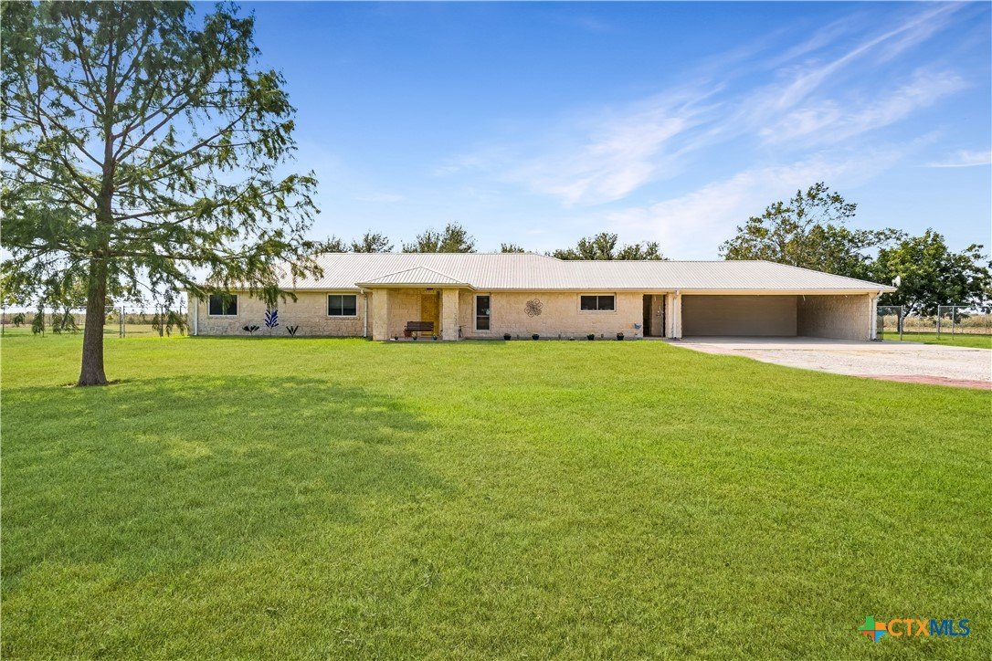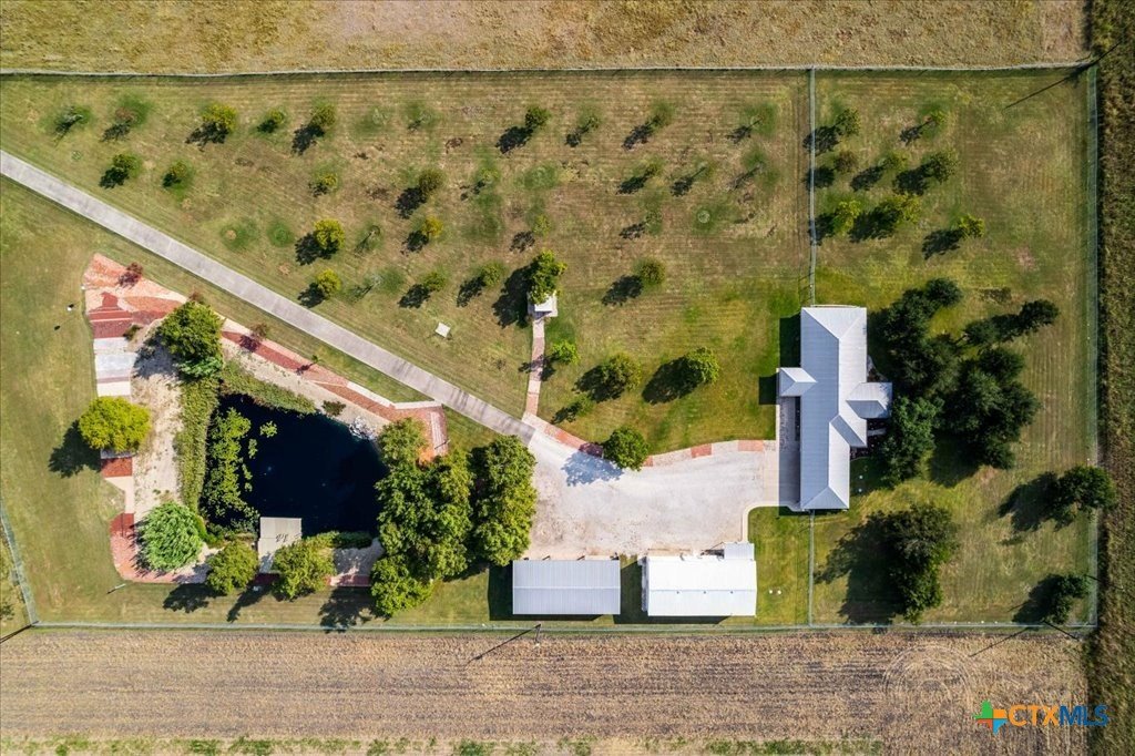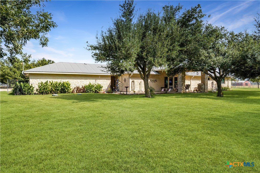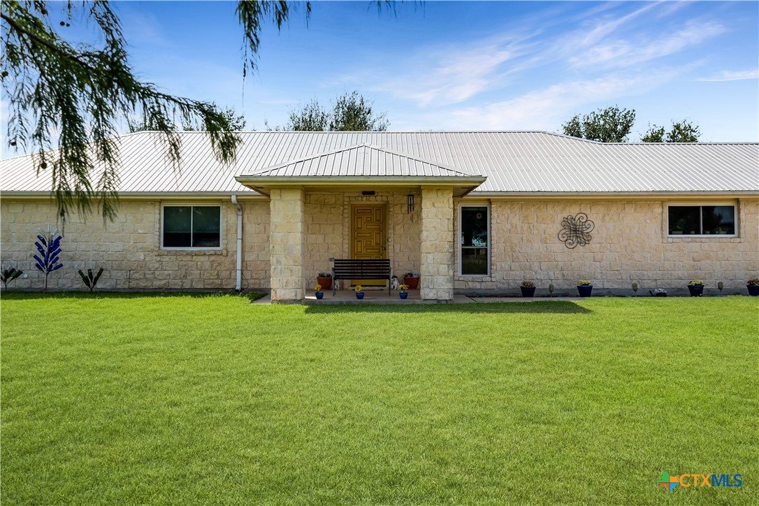 Enter through the gate and follow the long driveway to this Unique Country Estate set on 5 manicured acres. This pristine property offers a main residence ranch that has 3 bedrooms and 2.5 Baths and is 2475 square feet (per tax records) Plus; a guest house that has 2 bedrooms and a full bath adding an additional 900 square feet of living space. The main residence is all sides stone and has covered front and back porches and a metal roof. The spacious family room has wood-look tiled flooring, vaulted ceilings and 2 ceiling fans. The eat-in kitchen has stainless appliances, quartz counter tops, center island/breakfast bar, task desk, built-in bookcases, an abundance of cabinetry and opens to the dining area. The primary bedroom has an en-suite bath, double vanities, step-in shower (with 2 shower heads) and a big walk-in closet. Both secondary bedrooms are large and there is a 2nd full bath, a powder room bath plus a utility/mud room with a ceiling fan, commode closet and sink. The guest quarters has a covered front porch, 2 bedrooms and a full bath. The open floor plan combines living/dining and kitchen. The workshop shares a building with the guest quarters and has a loft. Want more storage for equipment? There is a 3 bay open pole barn. (Horses are allowed) The grounds are a private paradise featuring: a natural swimming pond with a sandy beach and a dock, rocked picnic spot with a fire pit, 40+ pecan trees, a well for irrigation, in-ground sprinklers and topping off the pond. The views are spectacular! This one of a kind property is in the fast developing City of Taylor with EZ access to major roadways, employers, shopping, dining and events.