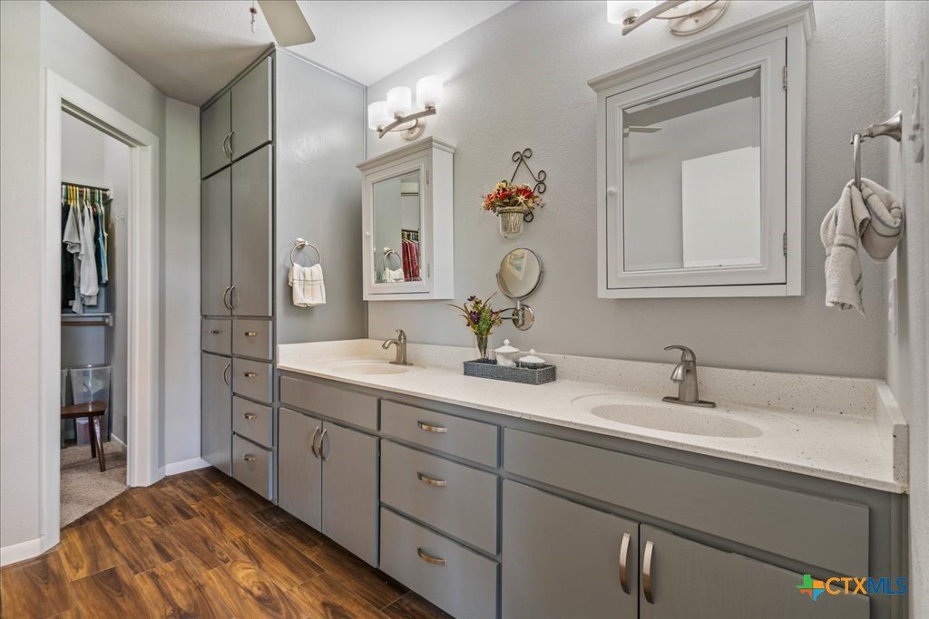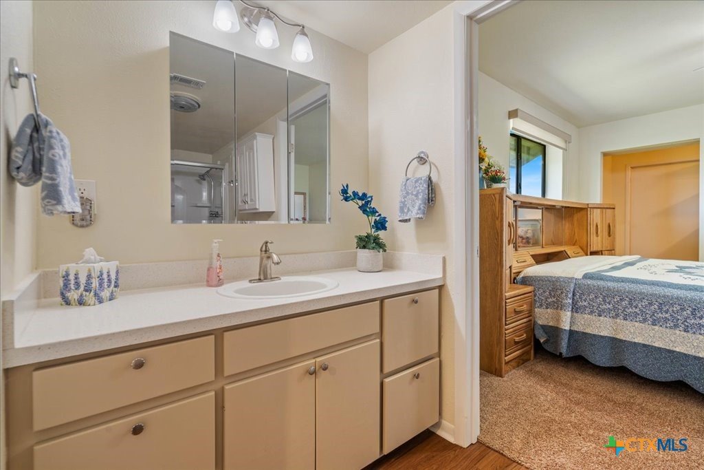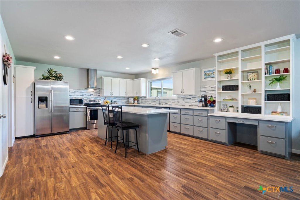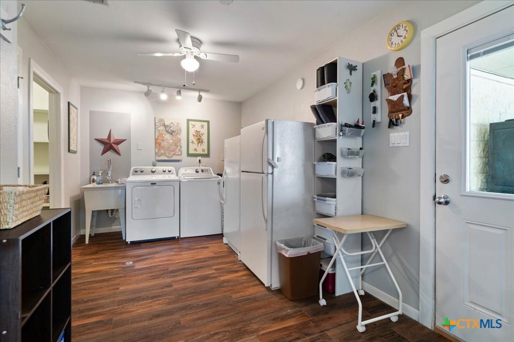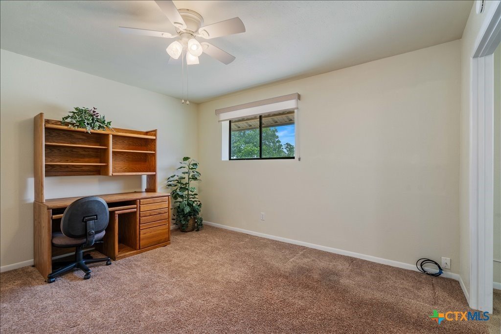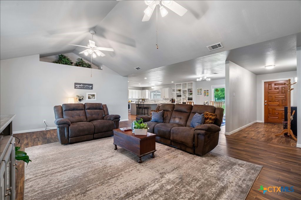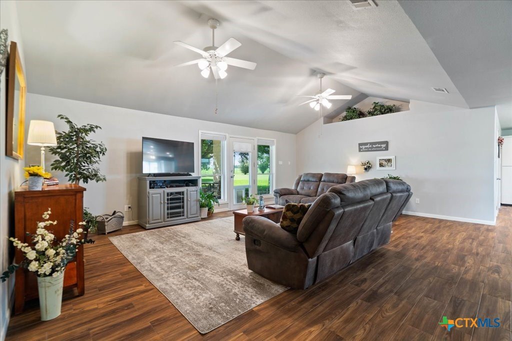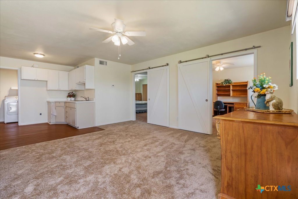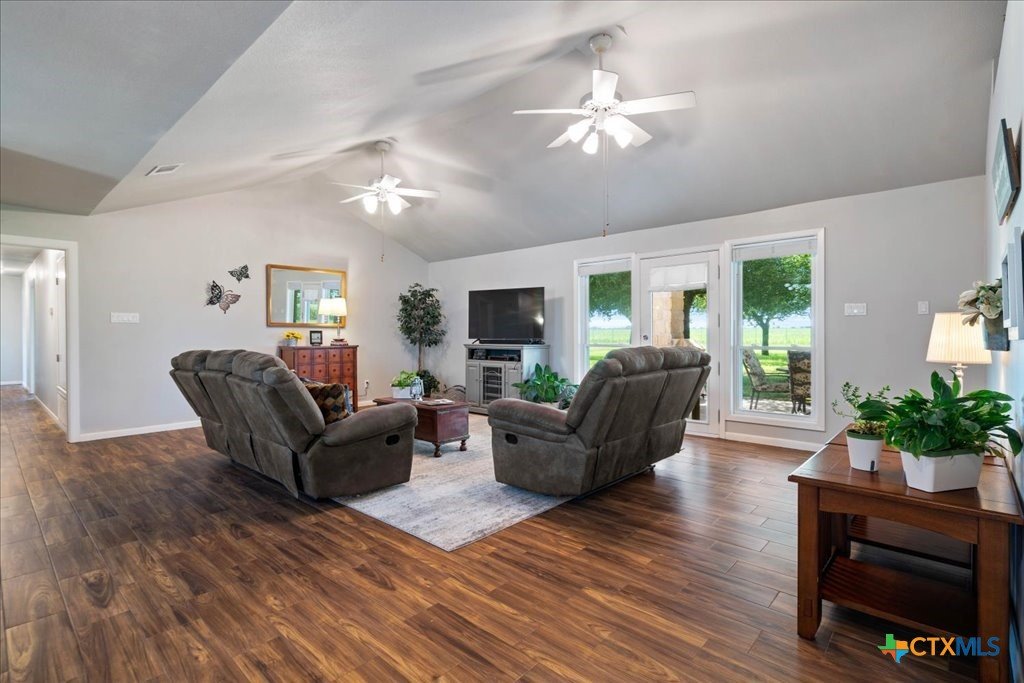 Enter through the gate and follow the long driveway to this Unique Country Estate set on 5 manicured acres. This pristine property offers a main residence ranch that has 3 bedrooms and 2.5 Baths and is 2475 square feet (per tax records) Plus; a guest house that has 2 bedrooms and a full bath adding an additional 900 square feet of living space. The main residence is all sides stone and has covered front and back porches and a metal roof. The spacious family room has wood-look tiled flooring, vaulted ceilings and 2 ceiling fans. The eat-in kitchen has stainless appliances, quartz counter tops, center island/breakfast bar, task desk, built-in bookcases, an abundance of cabinetry and opens to the dining area. The primary bedroom has an en-suite bath, double vanities, step-in shower (with 2 shower heads) and a big walk-in closet. Both secondary bedrooms are large and there is a 2nd full bath, a powder room bath plus a utility/mud room with a ceiling fan, commode closet and sink. The guest quarters has a covered front porch, 2 bedrooms and a full bath. The open floor plan combines living/dining and kitchen. The workshop shares a building with the guest quarters and has a loft. Want more storage for equipment? There is a 3 bay open pole barn. (Horses are allowed) The grounds are a private paradise featuring: a natural swimming pond with a sandy beach and a dock, rocked picnic spot with a fire pit, 40+ pecan trees, a well for irrigation, in-ground sprinklers and topping off the pond. The views are spectacular! This one of a kind property is in the fast developing City of Taylor with EZ access to major roadways, employers, shopping, dining and events.