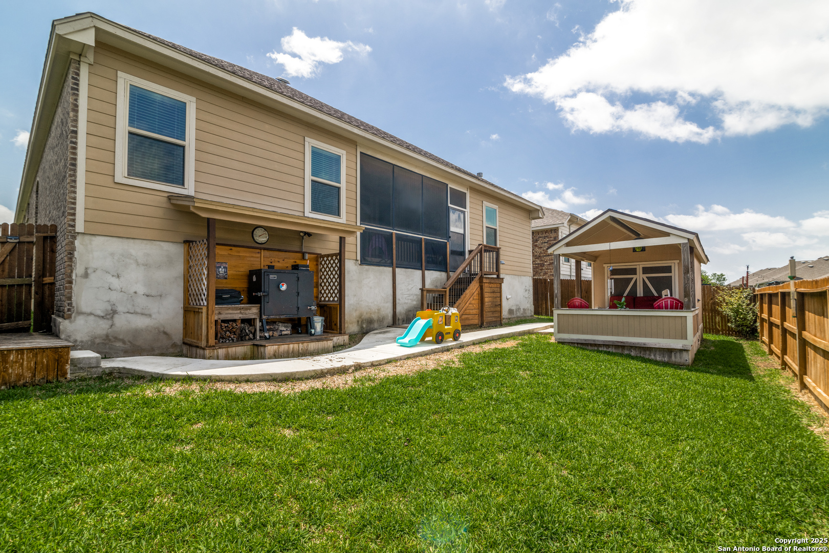 Gorgeous Home with Scenic Views located 2 miles from IH 35 in New Braunfels in the serene neighborhood of Highland Grove! This spacious home boasts 5 bedrooms, 4 full baths with a 3 car garage. On the second floor is the Game Room/Media, large private bedroom, full bath and an office nook. Includes a Chef's Kitchen with Gas Stove, Large Dining for entertaining, 9X6 island, Frameless Master Shower Walk in Attic, 10" ceilings and 8' doors. Screened in Patio, Large Storage Shed and Hardwood Floors through out and Water Softener. Please verify measurements & districts.